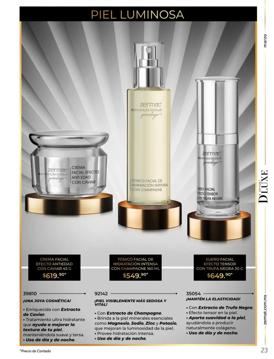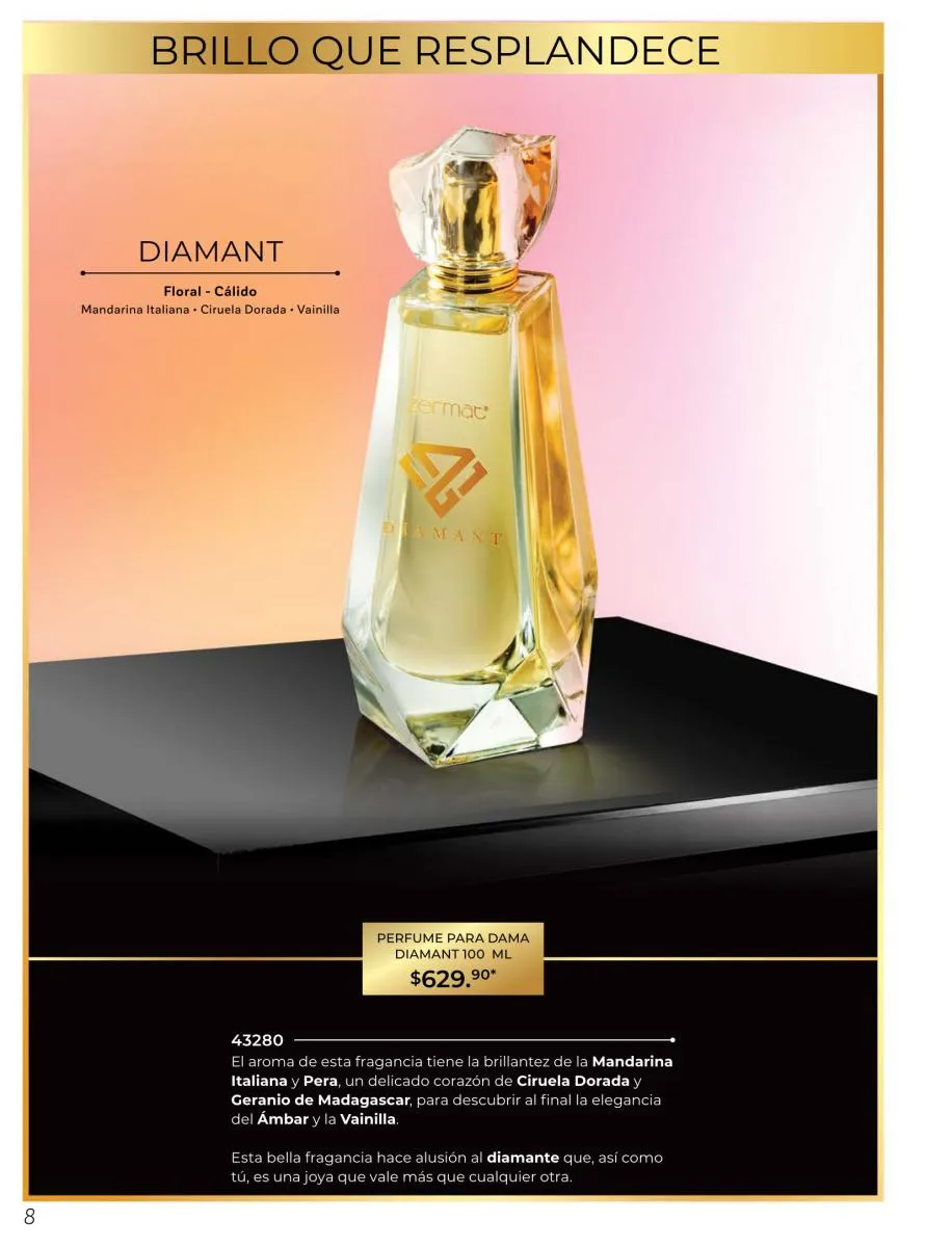 Como un detalle especial, y como emblema de esta campaña, destaca Diamant, una fragancia totalmente mexicana, creada por el destacado perfumista Adolfo Enriquez. En esta edición de marzo de 2026 queremos evolucionar con aromas que resalten tu esencia y con Diamant lo hemos logrado. Disfruta de este exclusivo perfume, irradia belleza y destaca tu esencia con lo mejor de Zermat catálogo Marzo 2026 México.