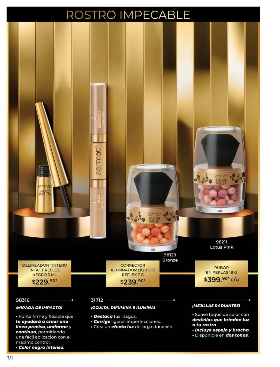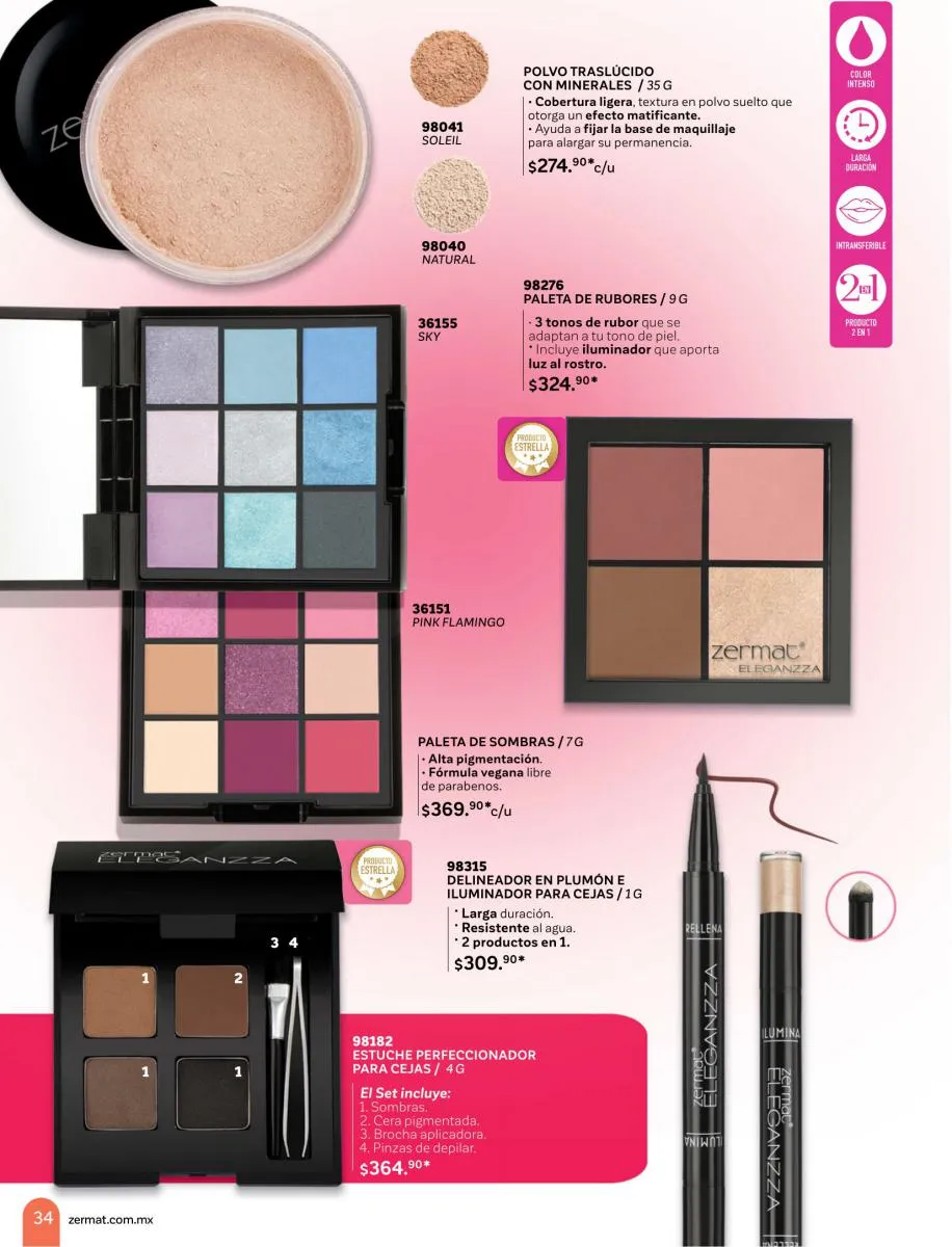 En este Zermat catálogo Marzo 2026 México encuentras todo lo necesario para brillar como un diamante y crear un maquillaje impecable, con todo tipo de sombras, bases, mascarillas, rímel, labiales, y muchas cosas más, que te darán el look que deseas. Luce un maquillaje moderno, divertido o seductor, con nuestra colección especial. Productos diseñados para las mujeres actuales, adaptados a sus necesidades y que cuidan su piel en todo momento. El maquillaje ideal, que puedes obsequiar a esa mujer especial y darle un poco de alegría con un hermoso detalle.