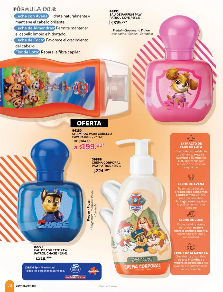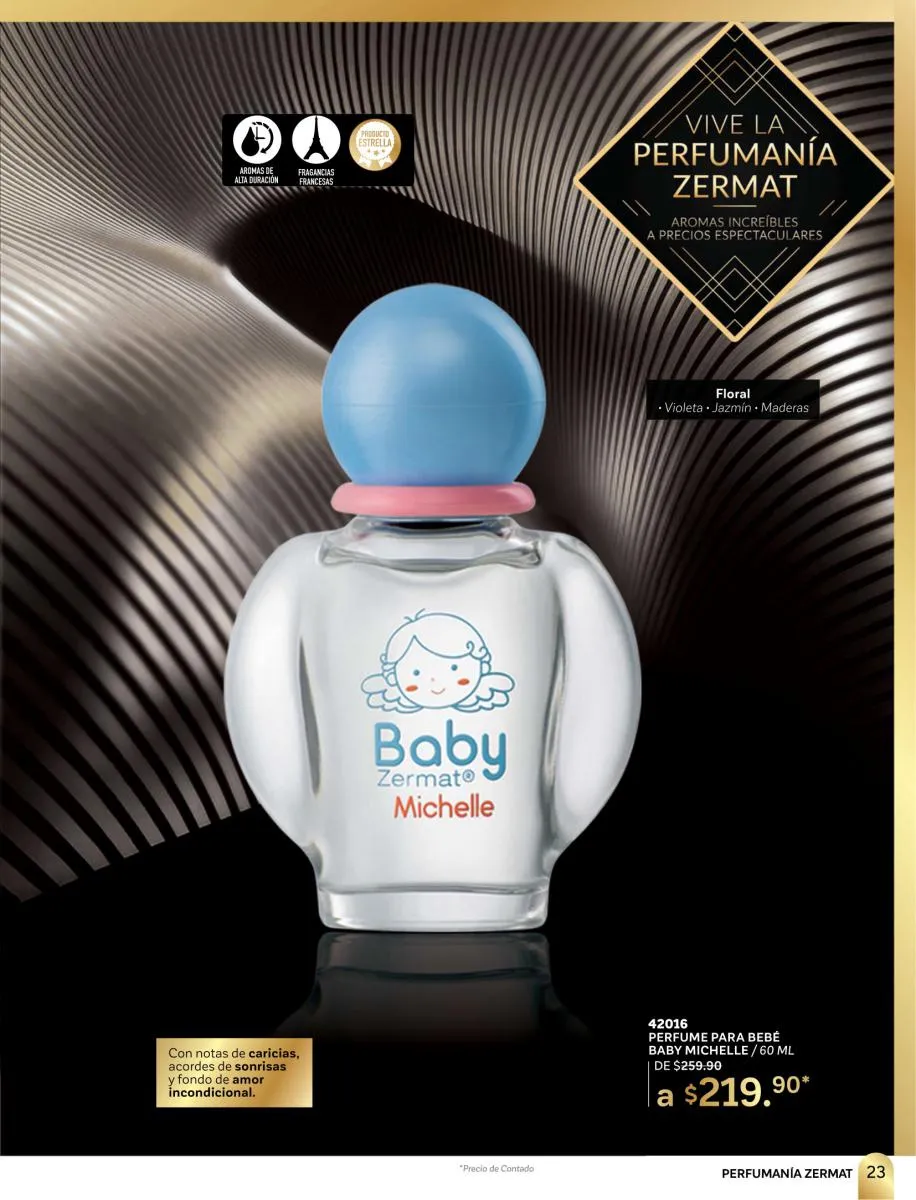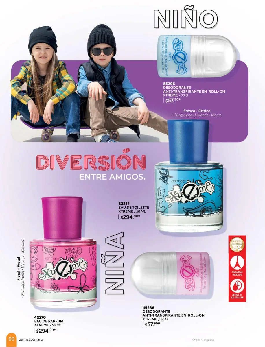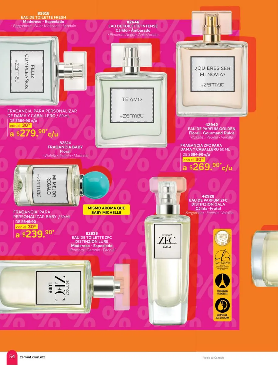 En esta ocasión Zermat le hace un tributo especial a lo más destacado de sus productos, la perfumería. Ofreciendo una extensa variedad de perfumes, fragancias, lociones, refrescantes, con aromas únicos. Productos para él y para ella, y por supuesto para los más pequeños. Combinaciones de perfumes para disfrutar en pareja, kits y combinaciones con desodorantes para crear la armonía perfecta para toda ocasión. Perfumes y fragancias con los personajes preferidos de los niños, diseños atractivos, prácticos y divertidos, para que sus aventuras nunca se terminen.