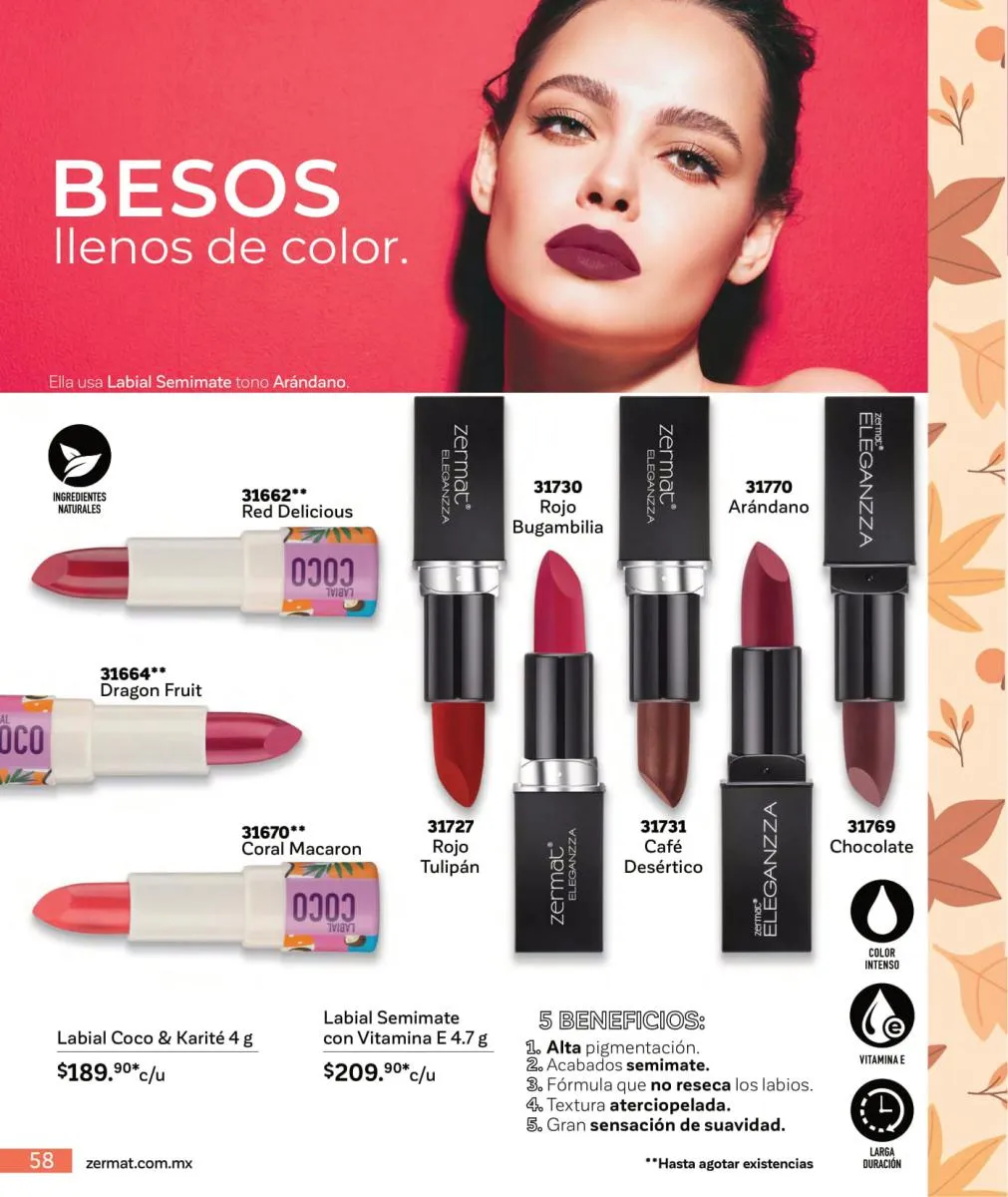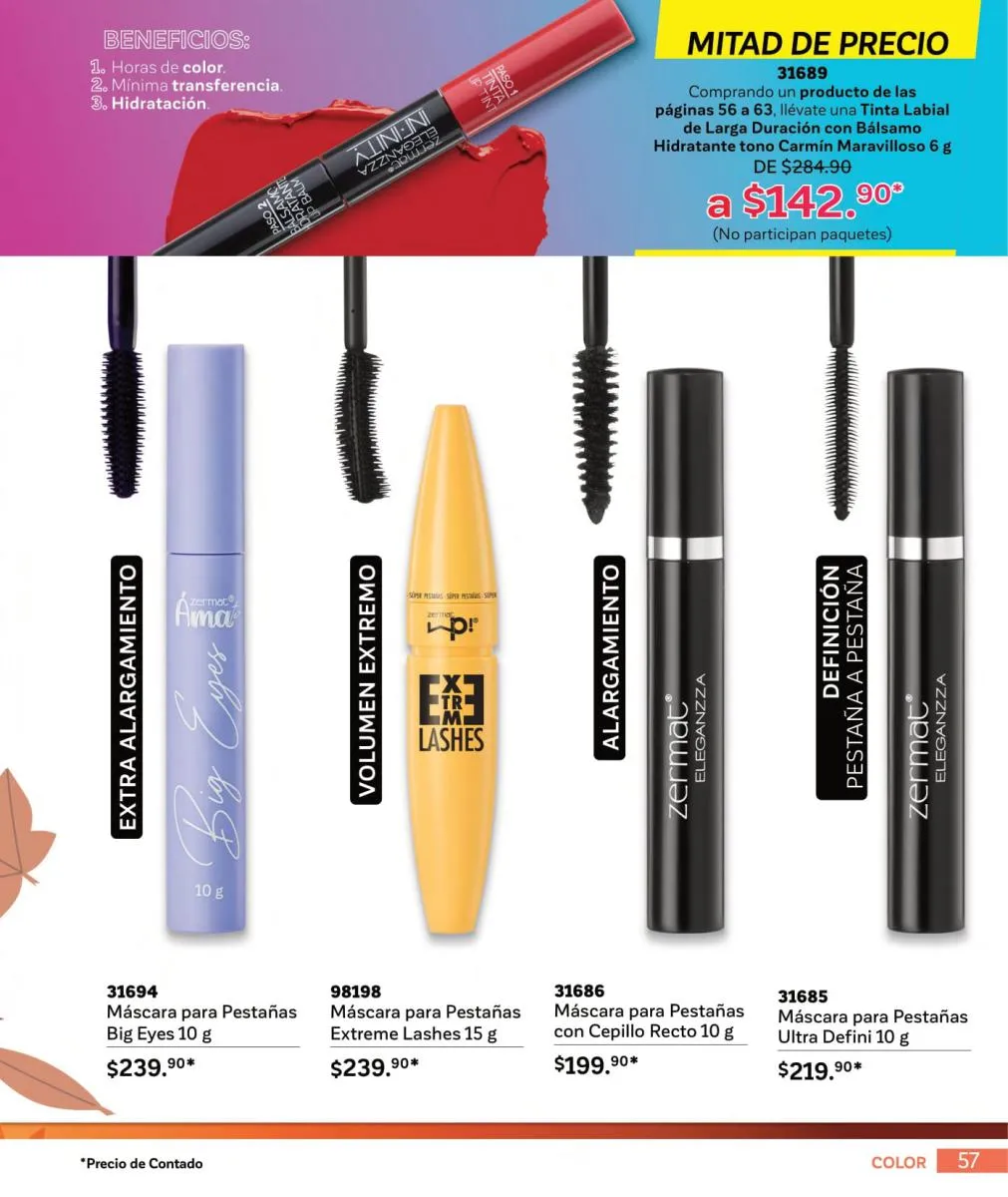 Otra de las apuestas que este mes nos trae Zermat catálogo Octubre 2025 México es el maquillaje de colores intensos. Este en la magnífica presentación de labial en barra de Coco & Karité, que este mes viene con un excelente precio y la oferta de una máscara de pestañas Extreme Lasher.