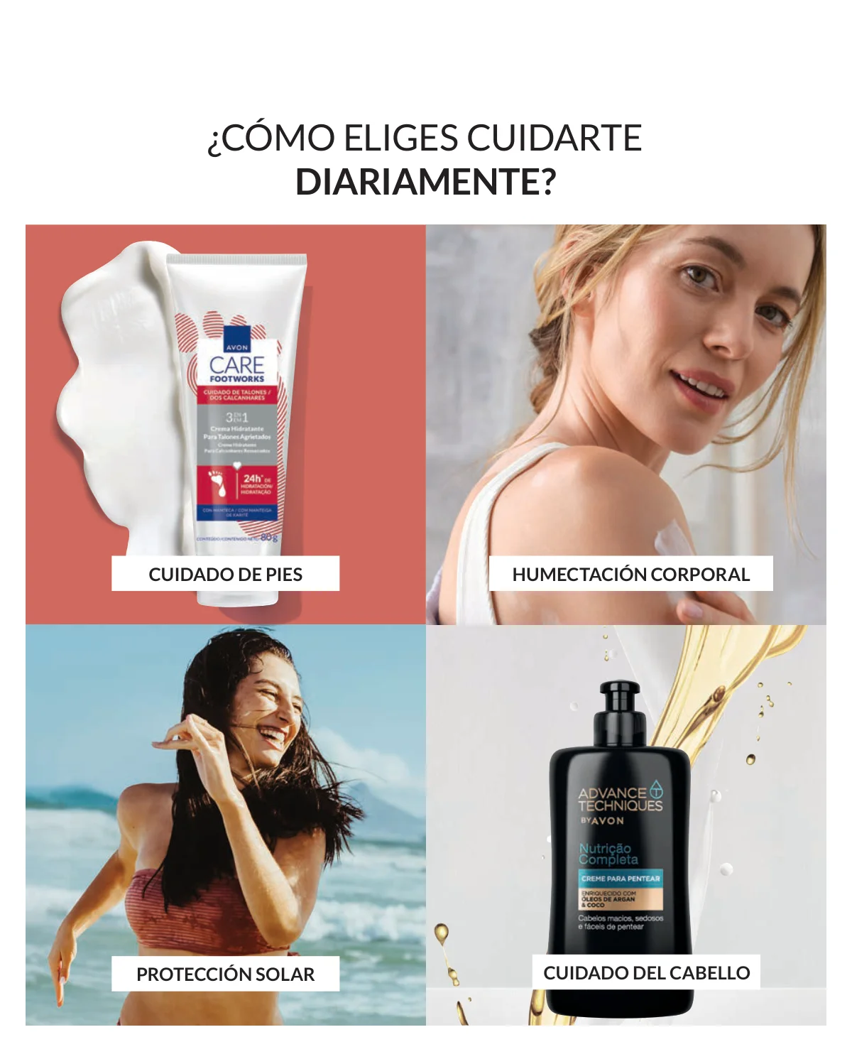 Para Avon, los daños de verano nunca han sido problema y desde el primer cabello hasta el dedo más largo de tu pie, todo está cubierto, tanto para chicas como chicos; por tanto, este cuidado ¡no la cambies por nada!