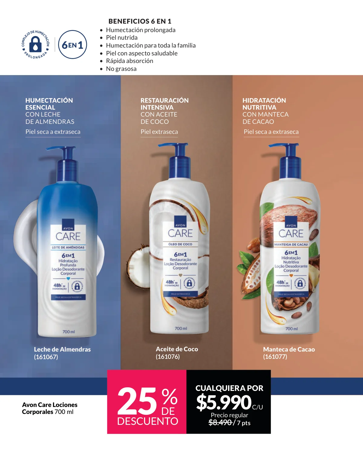 El primer catálogo Avon campaña 1 2026 Chile para este año cuenta con el gran lanzamiento de Avon Care con más nutrición e ingredientes, como el aceite de oliva, para dar a tu piel la mejor textura.