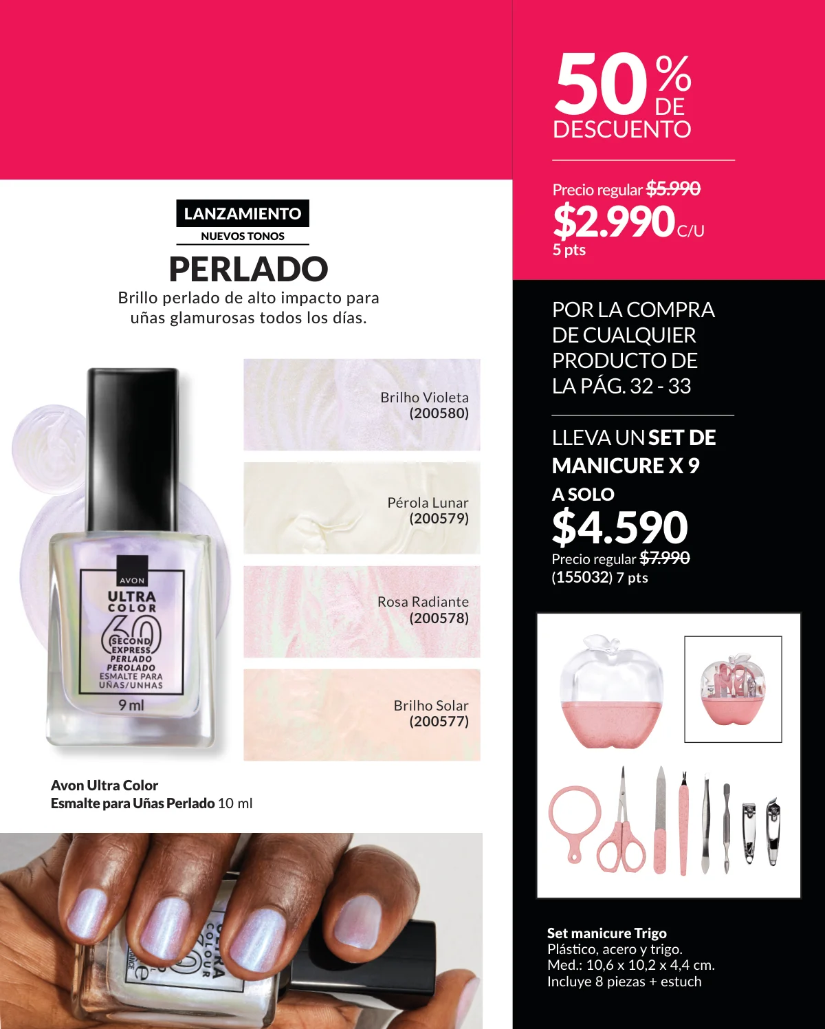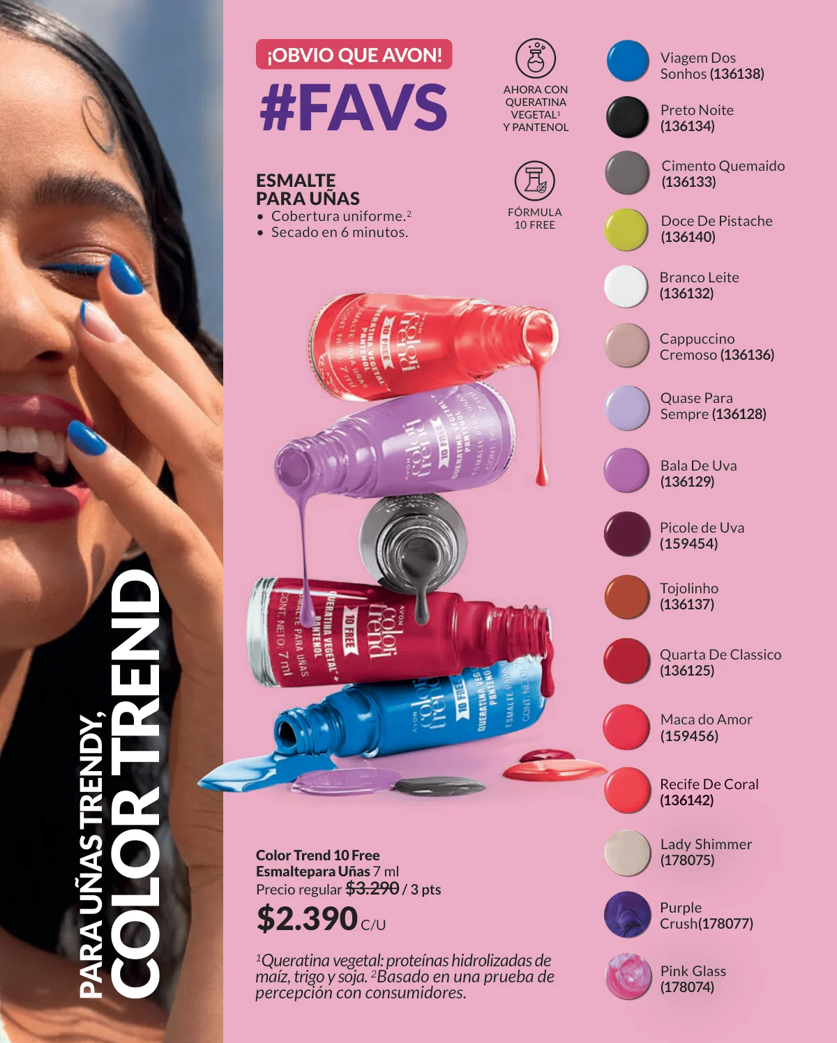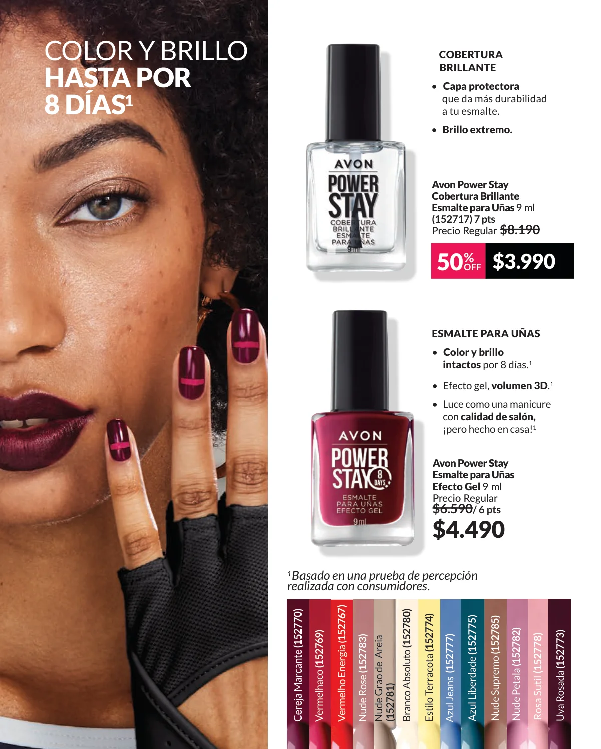 Infinidad de colores y efectos, básicos, mate, metalizados o brillantes, de asombrosa calidad y que duran todos los días de verano tendrás a mano con Avon, con descuentos dignos de una marca de confianza.
