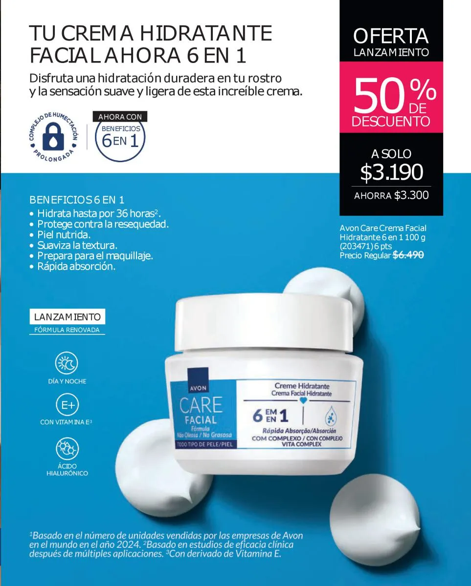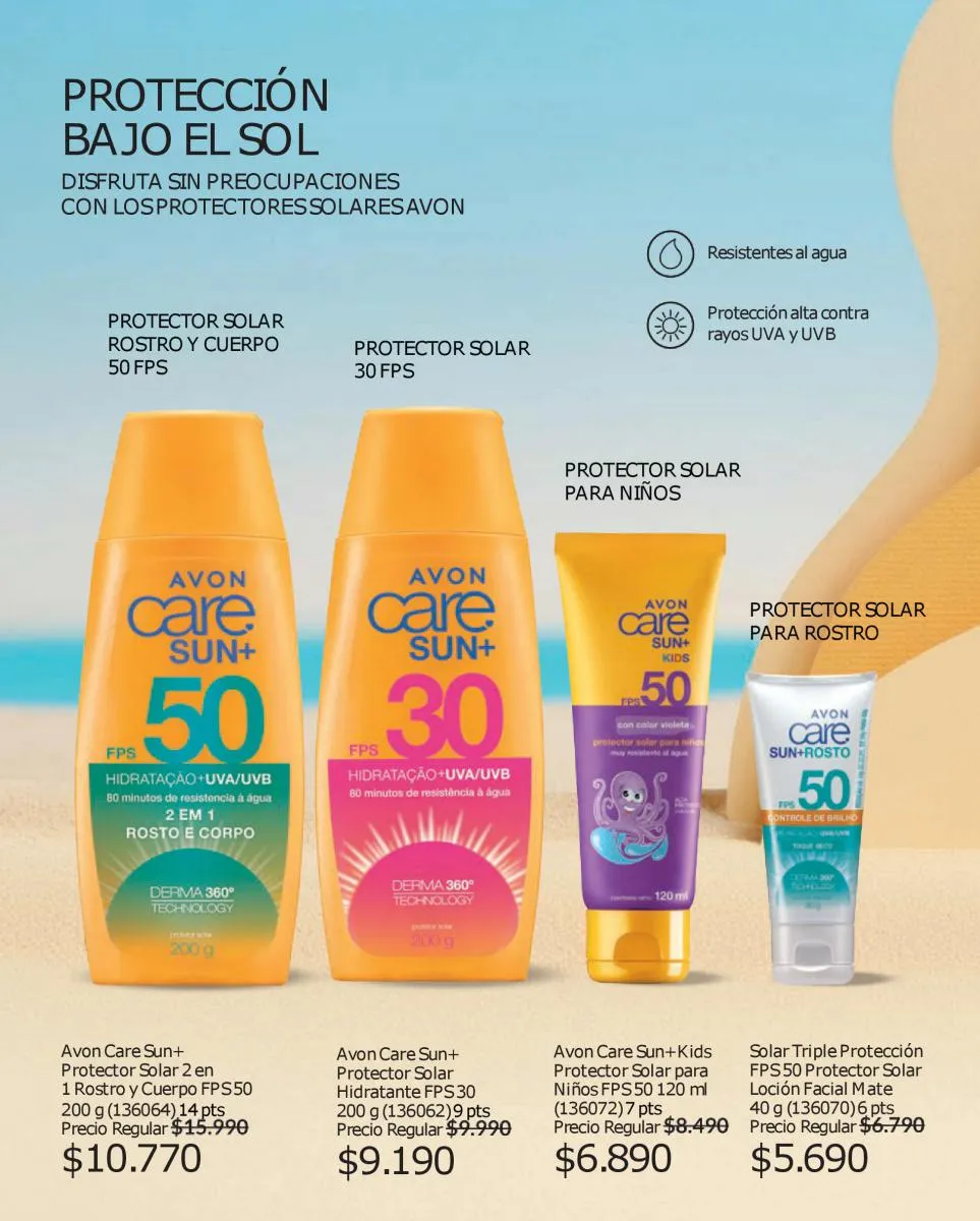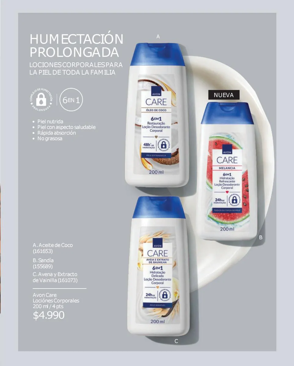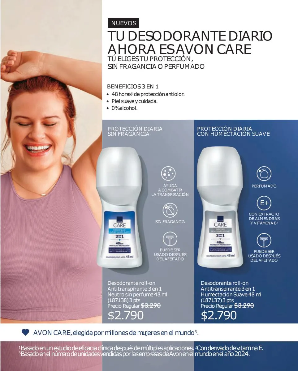 Y para todo tu cuerpo, las cremas Avon campaña 17 2025 Care formuladas con proteínas de leche y vitamina E que hidrata tu piel durante todo el día. Asimismo, tienes la línea Care Sun que te cuida antes y después del sol.