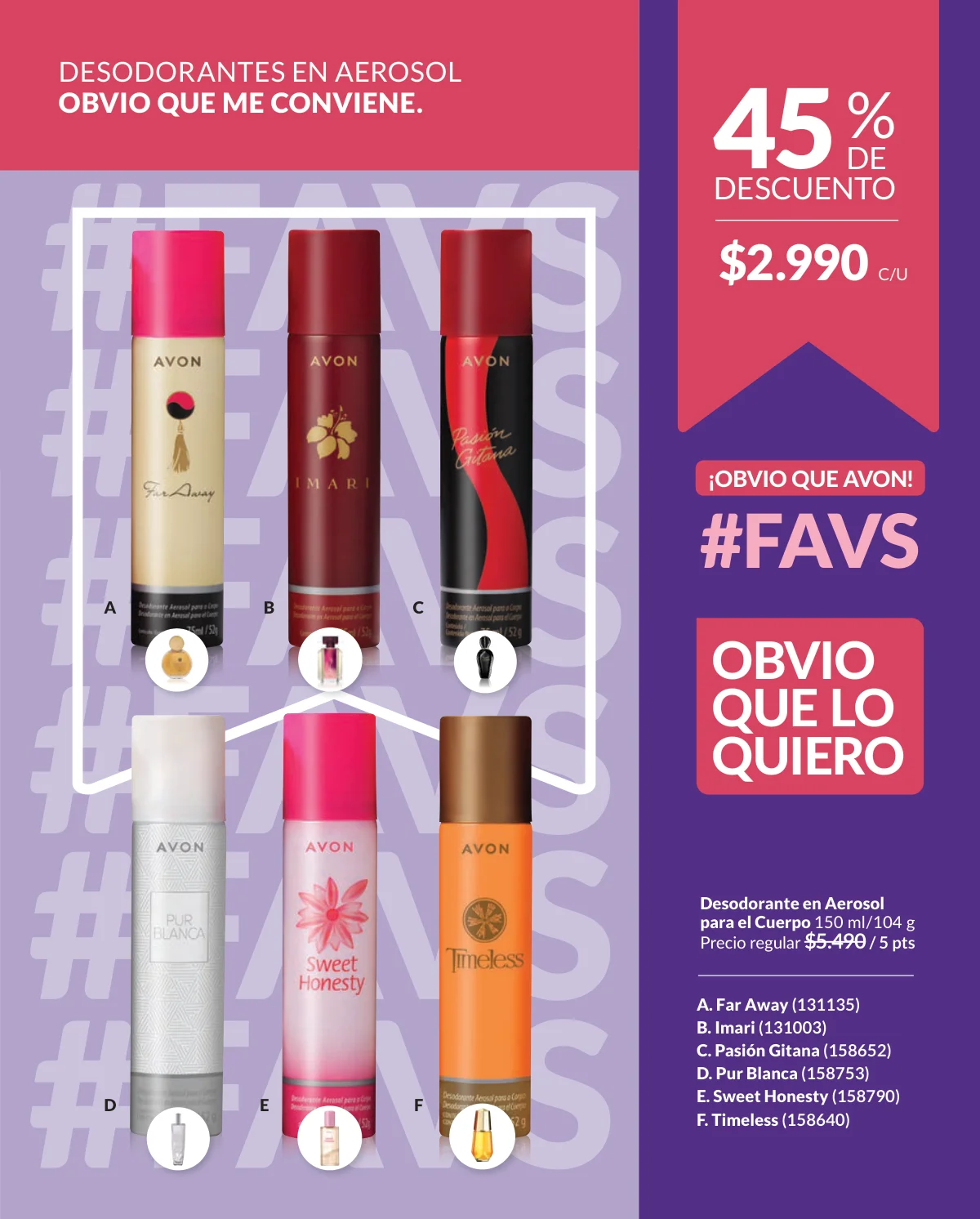- Desodorantes en aerosol de tus líneas favoritas a 50% off.