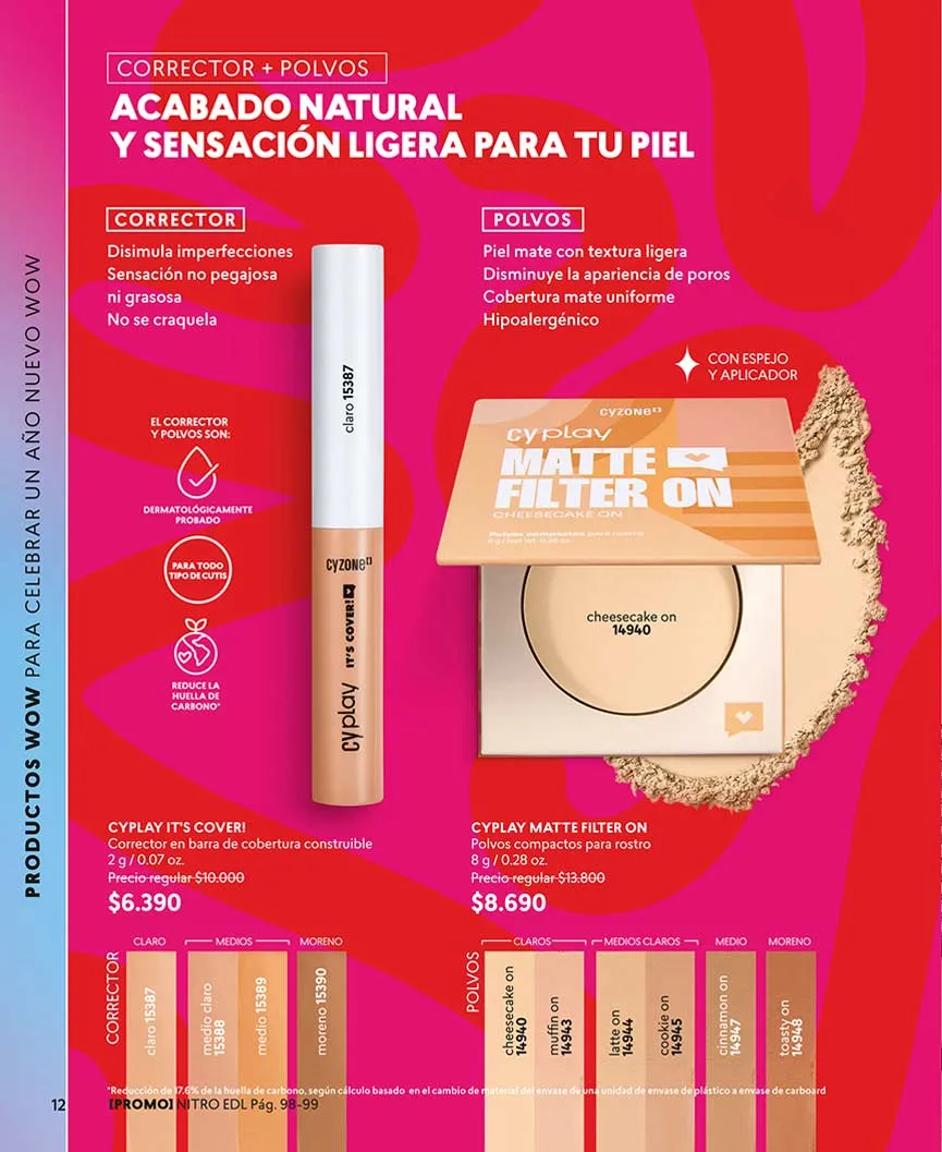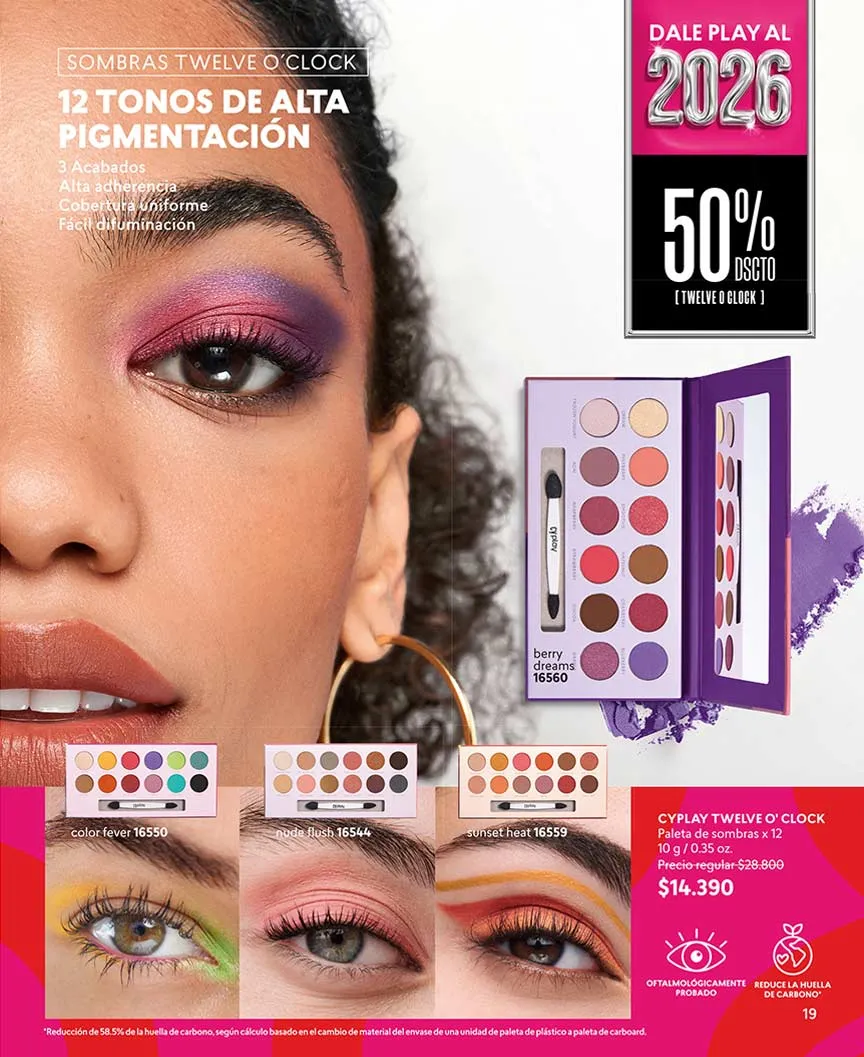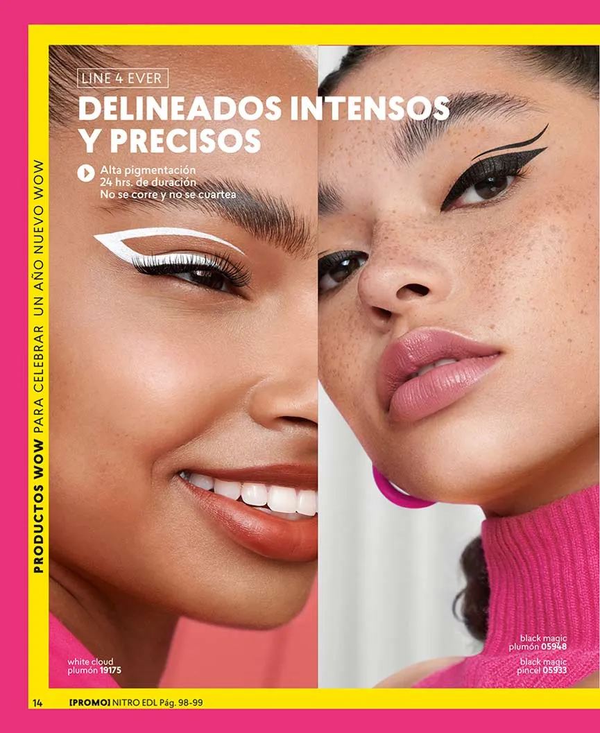 Con las sombras para ojos contarás con paletas de colores de hasta 12 tonalidades; y con los delineadores de punta retráctil y textura cremosa, disfrutarás de los colores más intensos y duraderos.