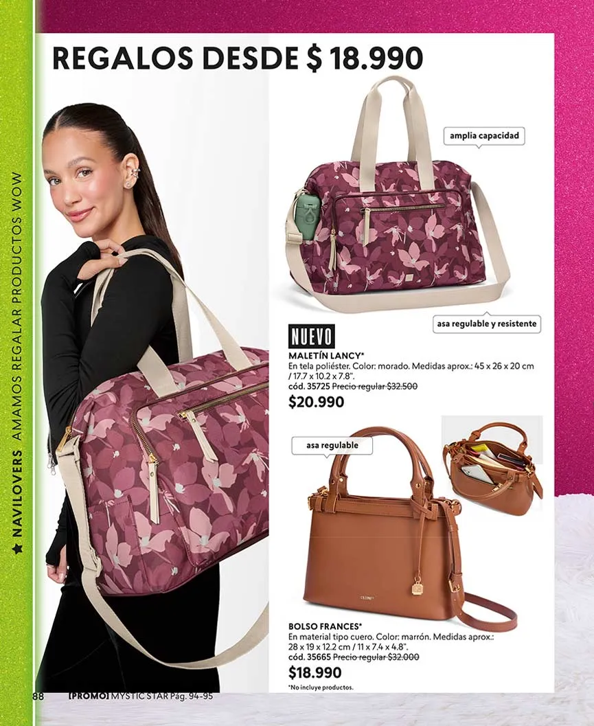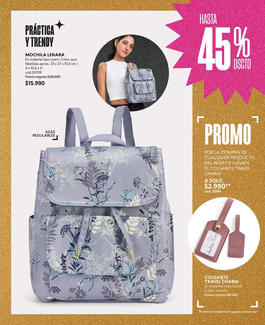 También en el Cyzone campaña 18 2025 Chile, puedes encontrar una gran variedad de calzado para damas en diferentes modelos y diseños, carteras bandoleros, porta cosméticos, accesorios para esos días de playa, medias largas cortas, especiales para zapatillas, productos para el cuidado del cuero y pieles sintéticas, organizadores y muchos artículos más.