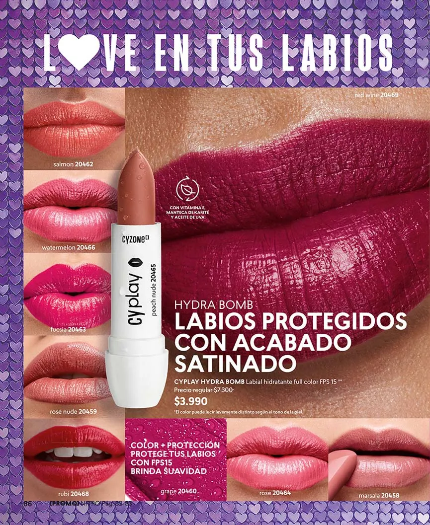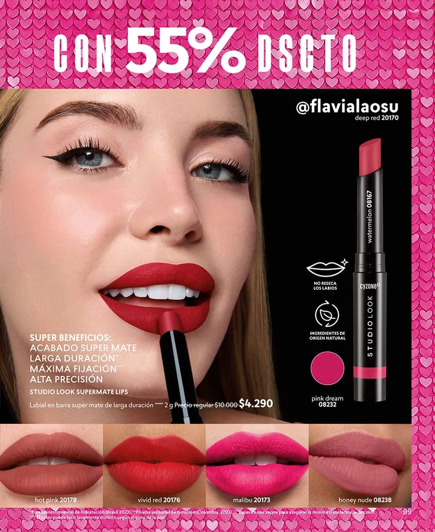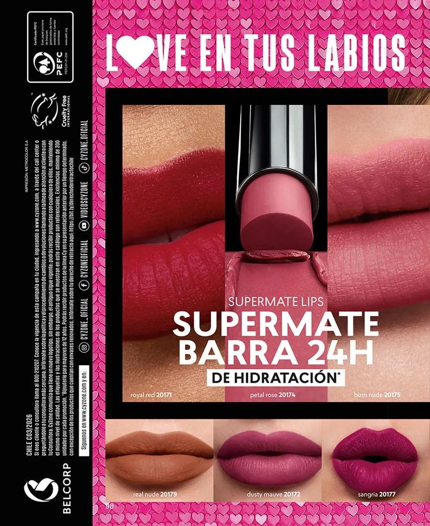 Esta Cyzone campaña 3 2026 Chile tendrás las pestañas más largas y con mayor volumen y tus labios sentirán lo intenso del acabado mate en gran variedad de colores.