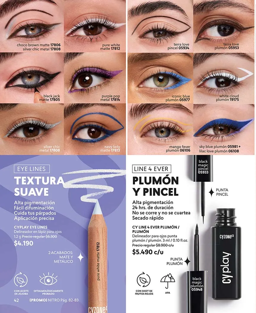 Con CY tendrás tantos colores que te darán diversidad de looks. Asimismo, para tus pestañas tendrás las máscaras y difuminadores con la intensidad y el volumen que tu rostro necesita.