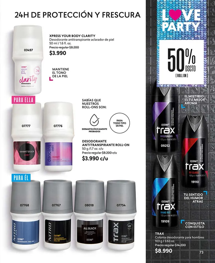 Cyzone Chile trae variedad de perfumes para él o para ella. Además, te sorprenderá con los combos más irresistibles y diversidad de elementos como desodorantes, maquillajes, delineadores y más.