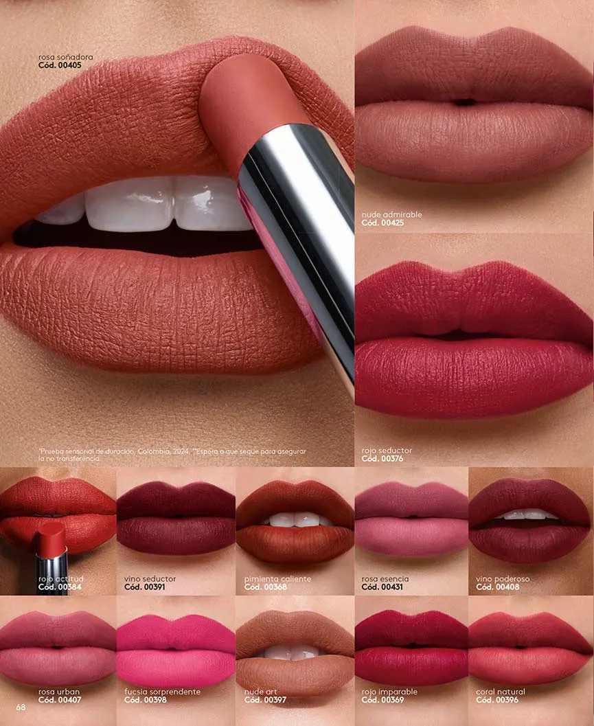 El maquillaje de Ésika para esta nueva Ésika campaña 1 2026 Chile, cuenta con diferentes tecnologías para un color uniforme, elegante y de mayor duración.