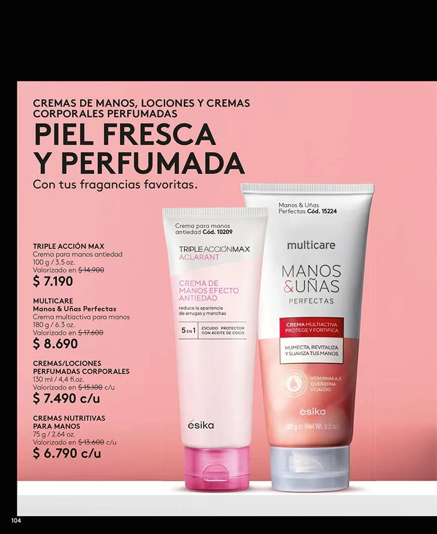 No podían quedar por fuera todos los productos de cuidado para el cuerpo, el cabello o las manos de catálogo Ésika 4 2026 Chile, con las esencias que más te gustan.