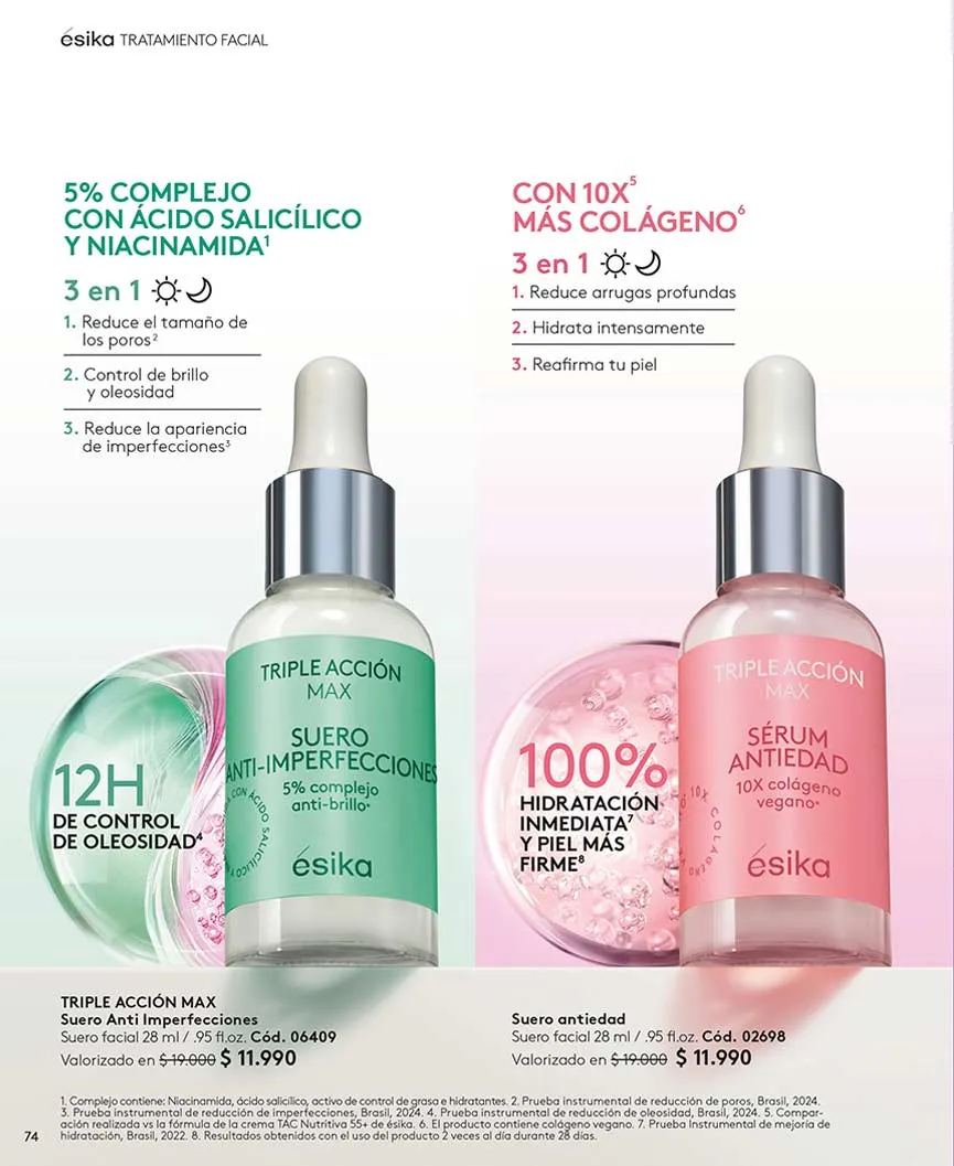 Y qué te parece si todo lo mejor de Ésika en tratamiento facial lo reunimos en la línea “triple acción”. Una línea de múltiples beneficios a la mitad del precio, que se convertirán en tus aliados perfectos.