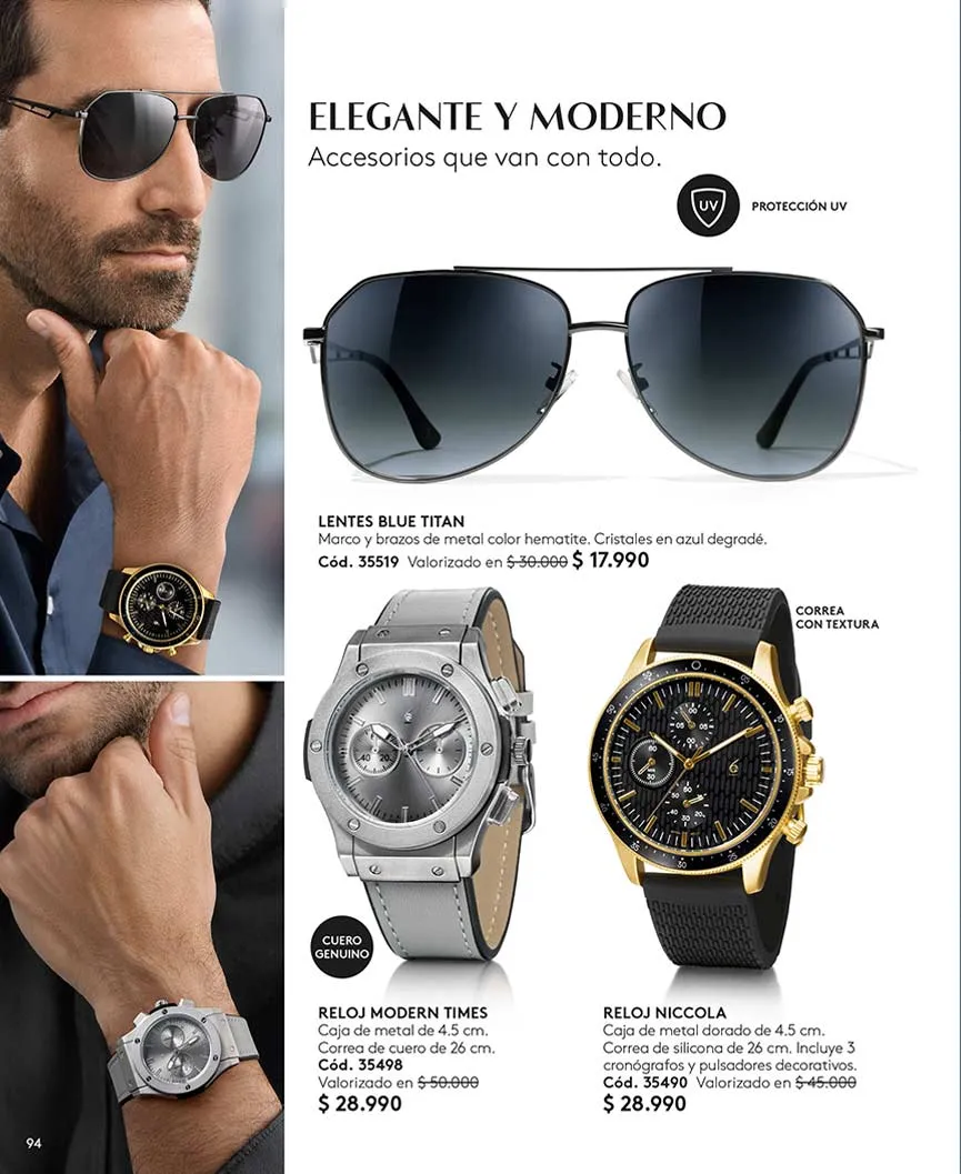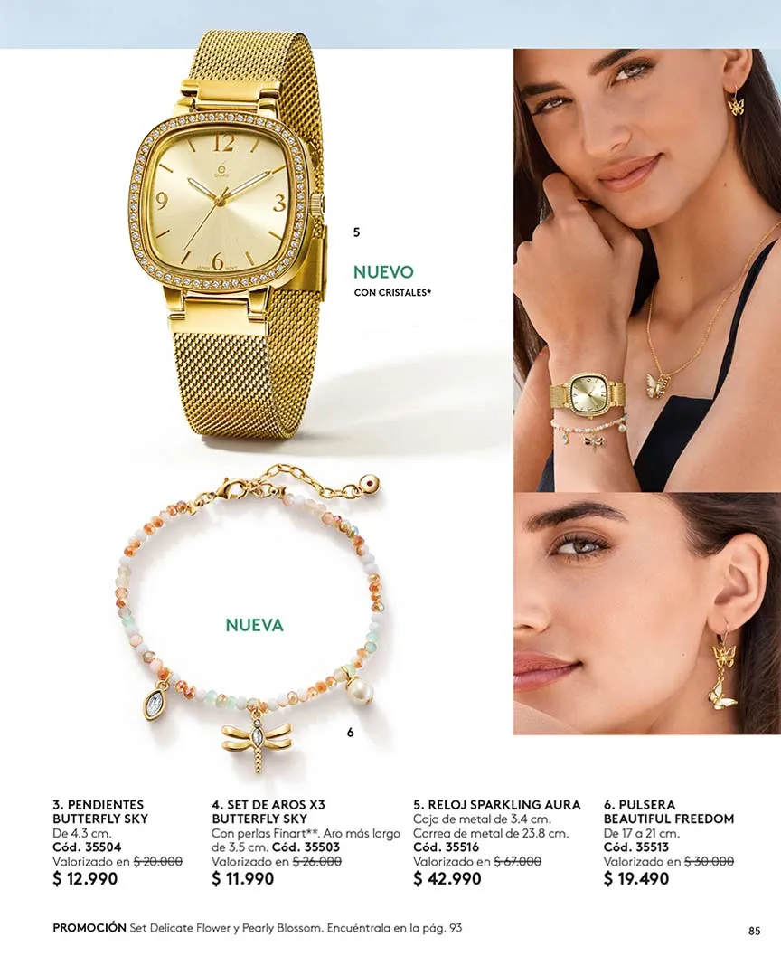 Colecciones interesantes de cadenas, pulseras, argollas, pendientes, aretes, los más elegantes relojes y más, implementando la tendencia layering.