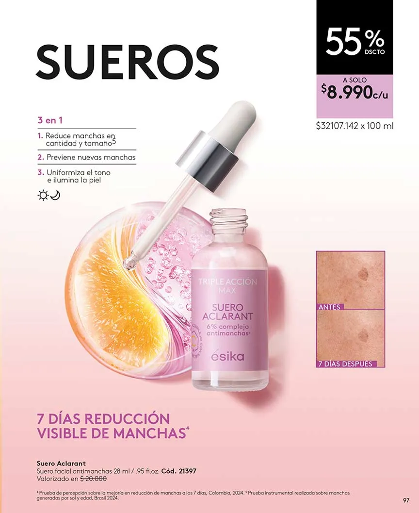 Además de ofrecer color y belleza a tu rostro, de nada le sirve a catálogo Ésika 7 2026 Chile hacerlo si no cuida tu piel.