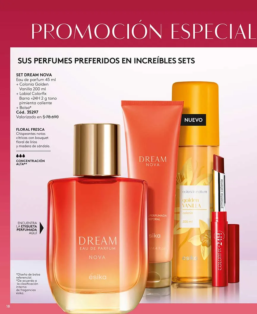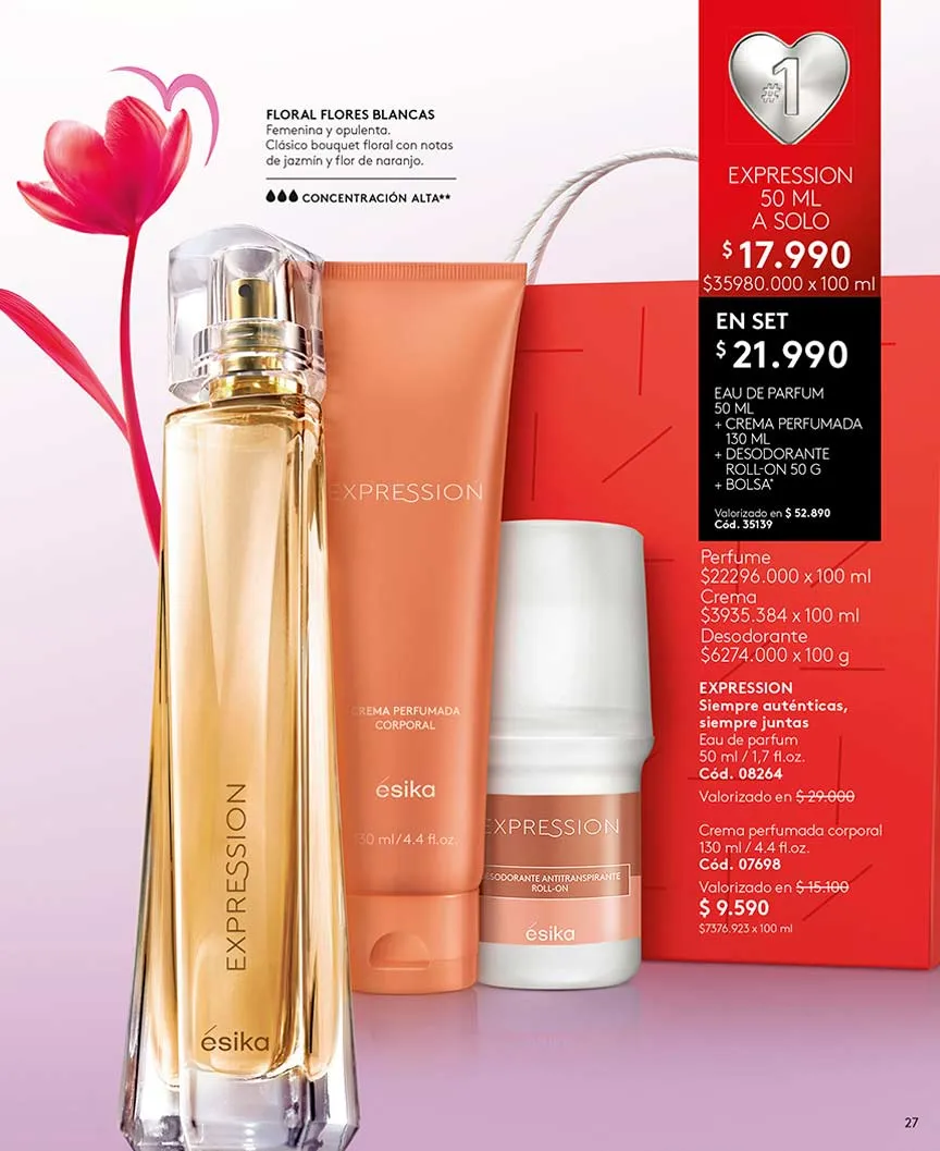 También te sorprenderá este catálogo con las mejores fragancias de alta perfumería francesa que solo Ésika te puede ofrecer, como Vibranza Blanc, Red Power, Vivir, Bela, Femme Magnat, Iluminas y más, algunos con los sets de regalo más delicados y elegantes.