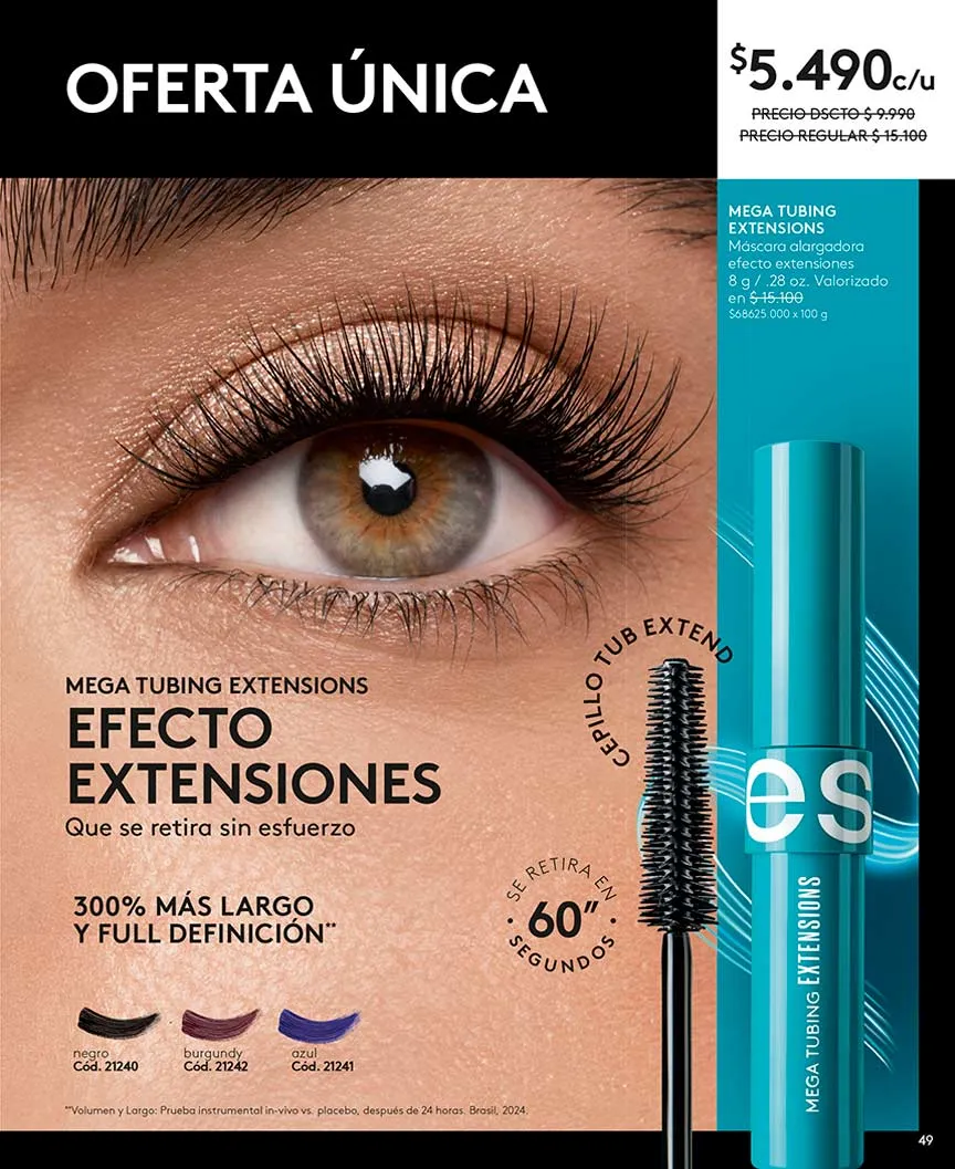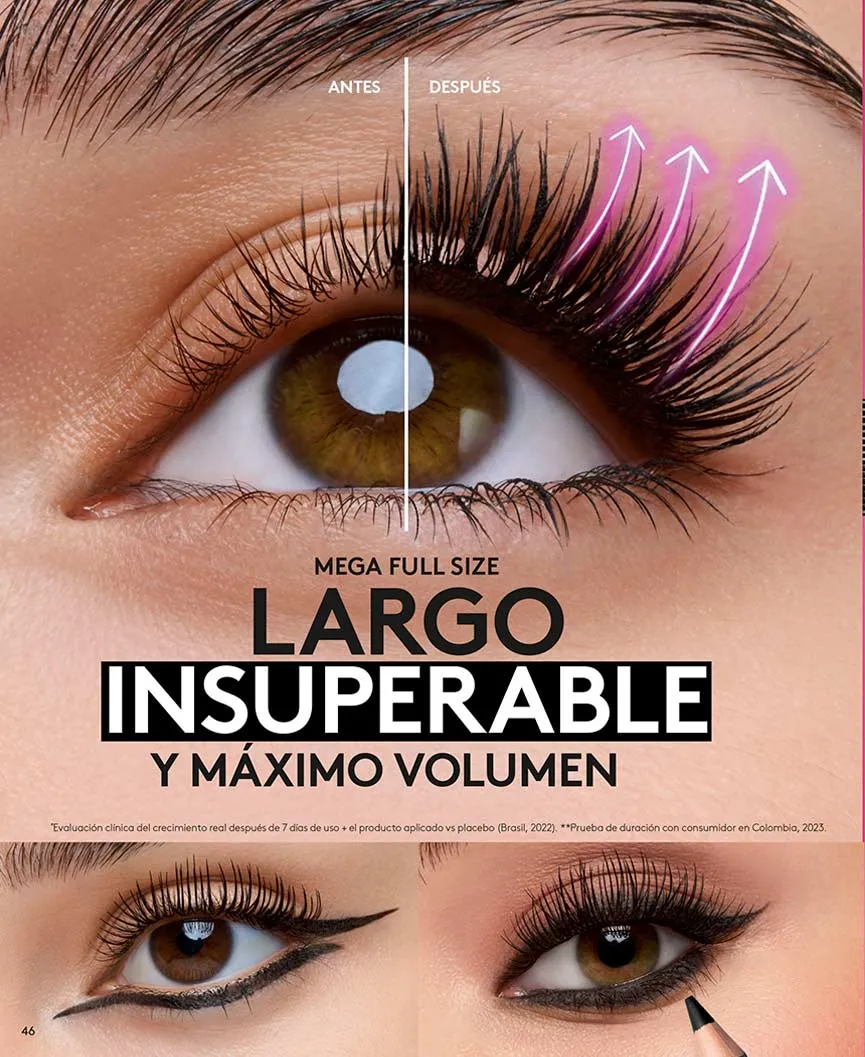 Además, compleméntalos con máscaras para pestañas que ofrecen mayor tamaño o un color negro más intenso (ultra black volumen).