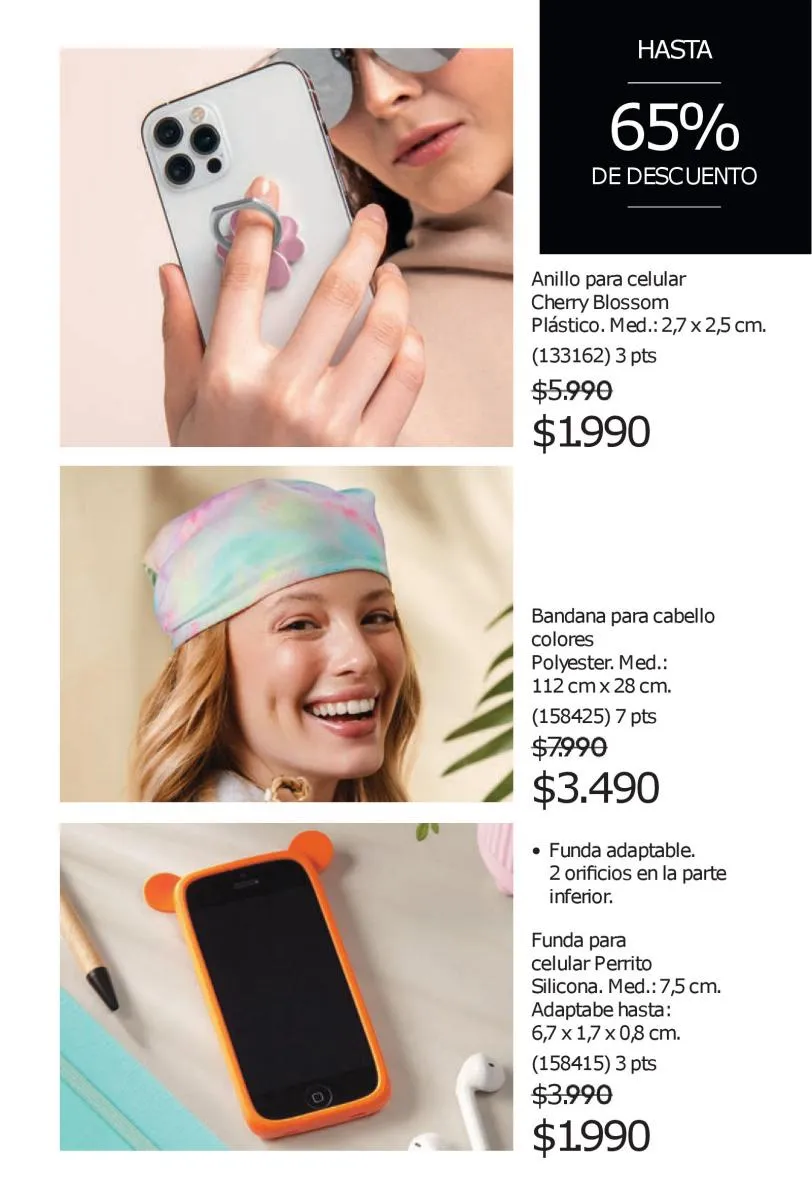 Por otra parte, disfruta de la línea fashion con propuestas de accesorios de moda que te acompañan en todo lo que te hace sentir plena y la línea kids que no puede faltar en estas páginas.