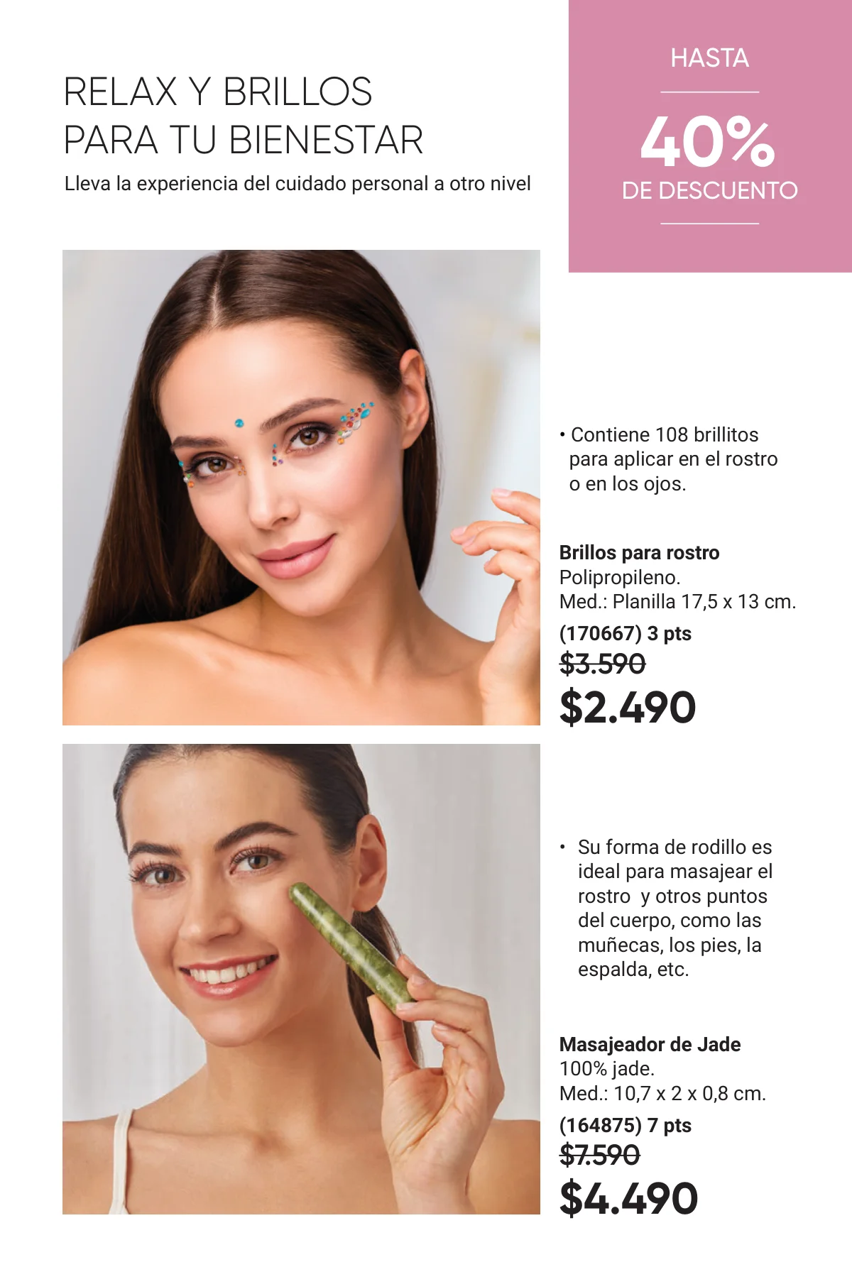 Y no te pierdas el combo de masajeador y crema facial con control de brillo y efecto refrescante, porque este catálogo quiere enfocar tus energías en lo que te hace bien.