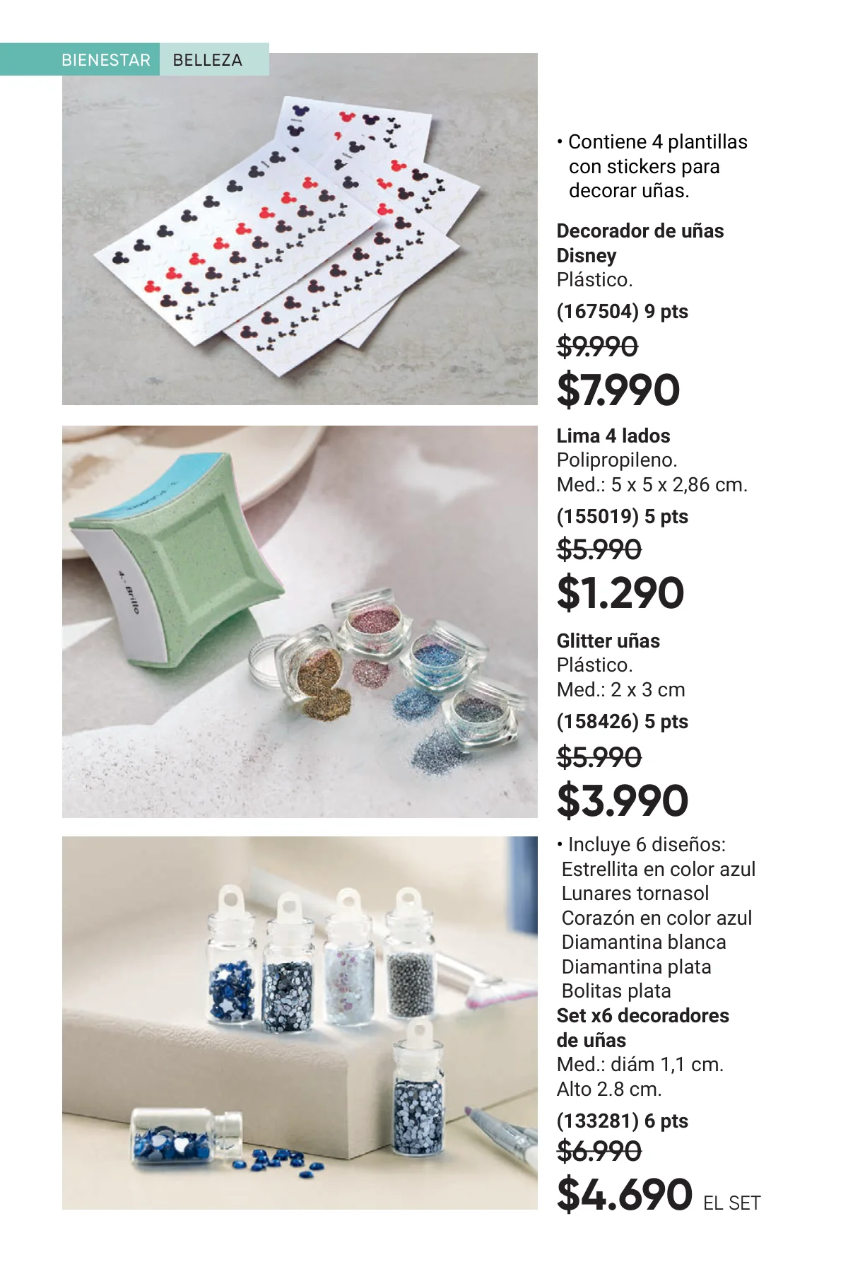 Comenzarás con la sección de belleza y bienestar, inspirada en tu relajación y en armonizar tus más bellos atributos con el ambiente, y tendrás una amplia variedad de elementos, como espejos, sets de manicure, cepillos para pies, guantes exfoliantes y más.