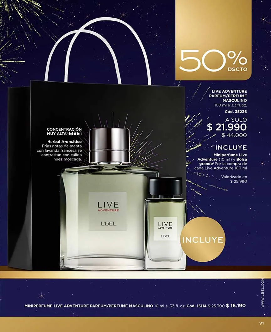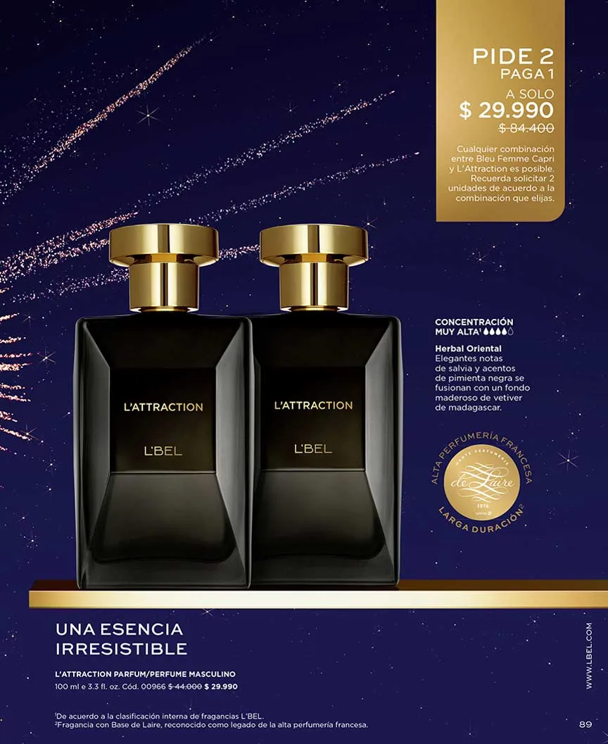 Y para los hombres, encontrarás en este L’Bel campaña 1 2026 Chile las esencias más intensas con mayor poder de atracción.