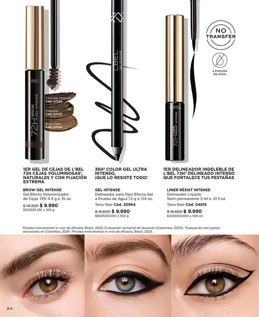 Pero no solo son labiales, también tendrás toda la intensidad y definición en ojos, cejas, pestañas y todo tu rostro: máscaras, delineadores, bases, compactos y mucho más.