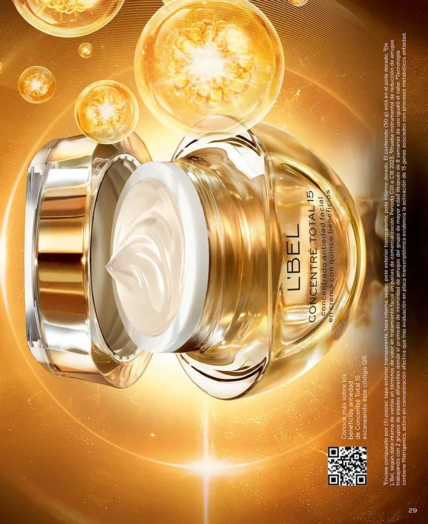 No dejes pasar todo lo que catálogo L’Bel campaña 8 2026 Chile te trae, gracias a su avanzada línea de productos Concentré Total, con tecnología de reducción de arrugas al 100% en tan solo una semana.
