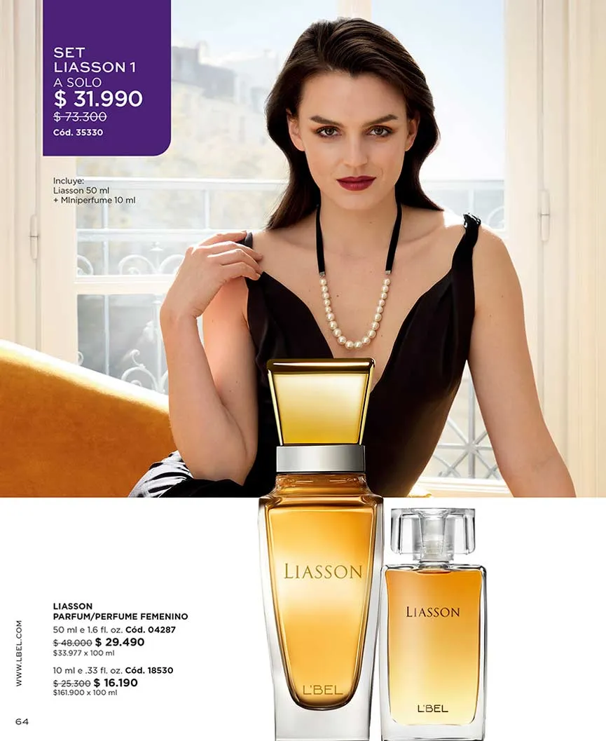 Además, las fragancias de siempre las veras con los precios más sorprendentes y con combos de productos, como el que trae Liasson, con labial líquido.
