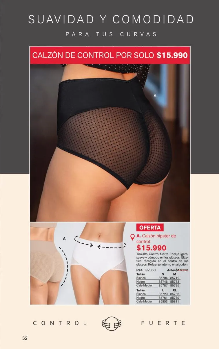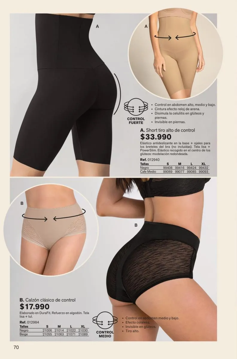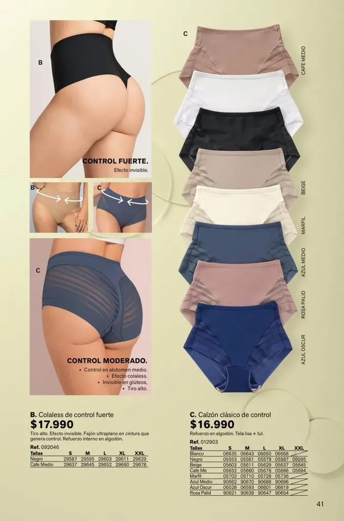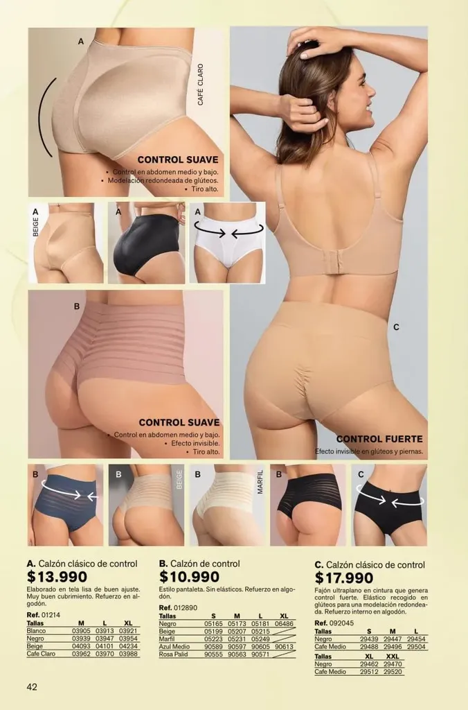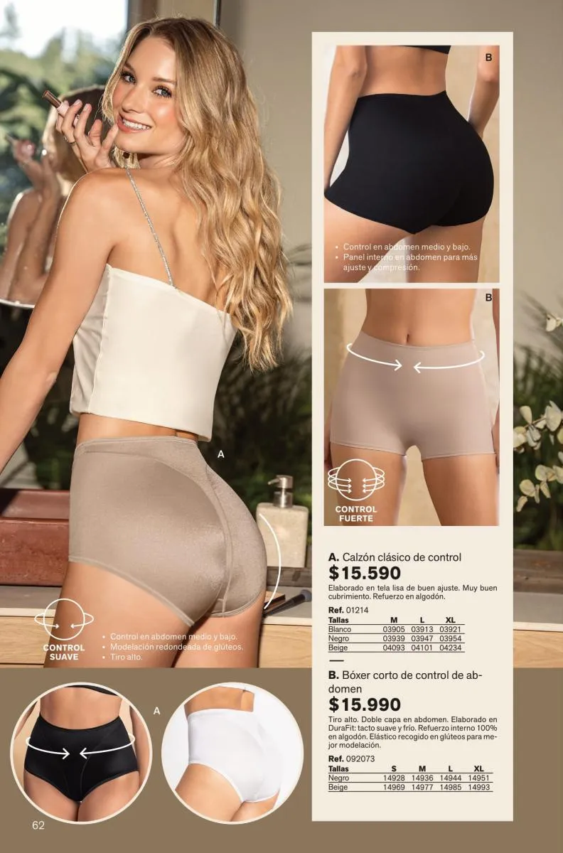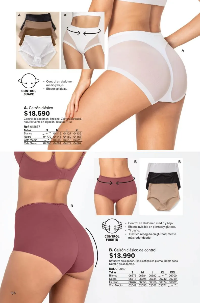 Todas estas prendas traen refuerzos de 100 % algodón en colores de moda. Y no te olvides de llevar una faja con control de abdomen, glúteos y piernas para esos momentos donde tú quieres verte perfecta y natural con tu vestimenta favorita.