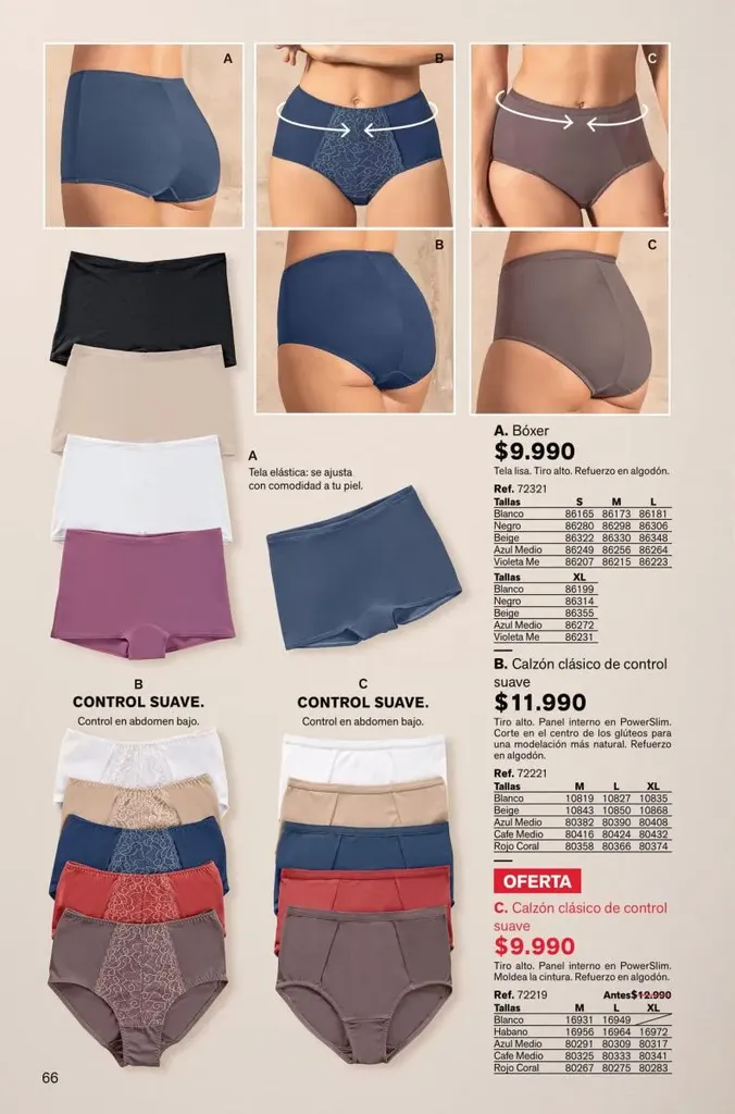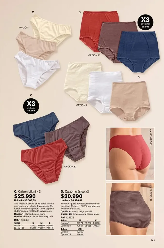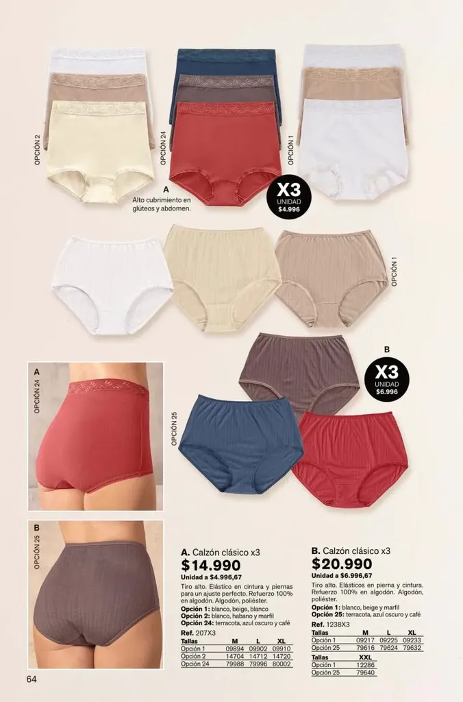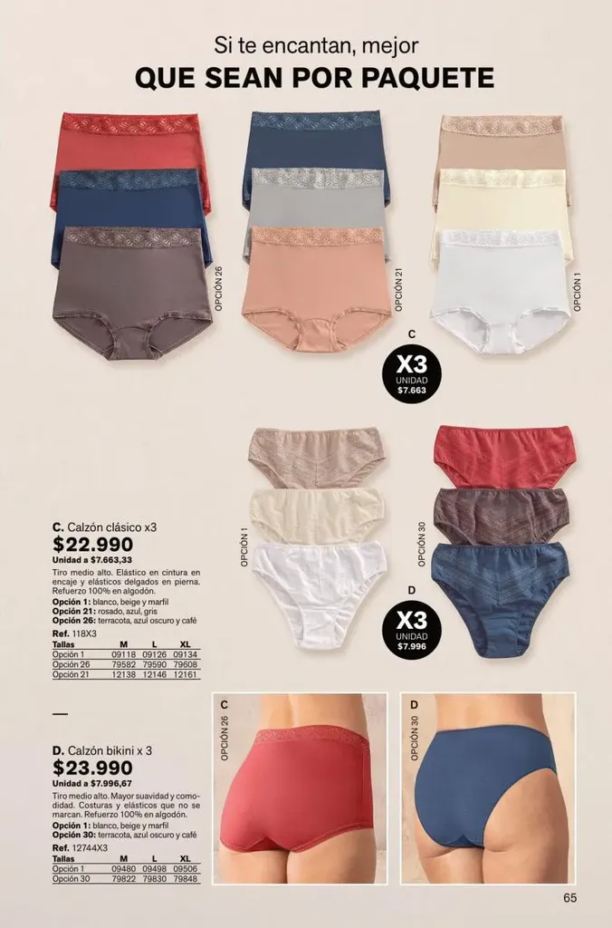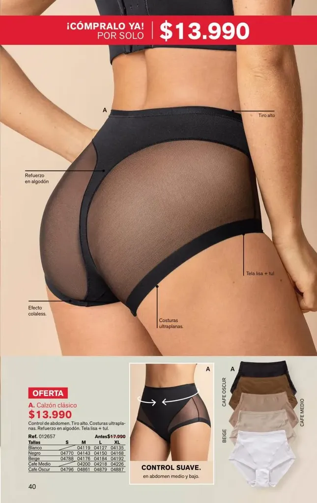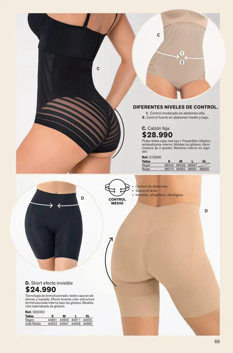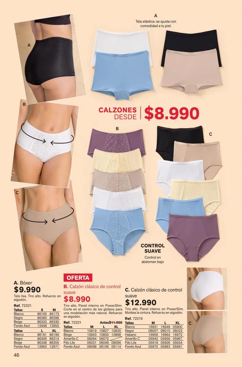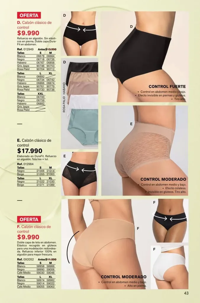 Todas estas prendas traen refuerzos de 100 % algodón en colores de moda. Y no te olvides de llevar una faja con control de abdomen, glúteos y piernas para esos momentos donde tú quieres verte perfecta y natural con tu vestimenta favorita.