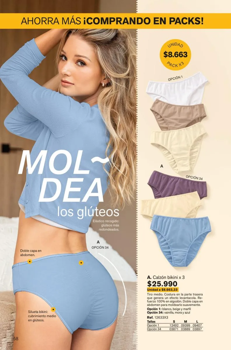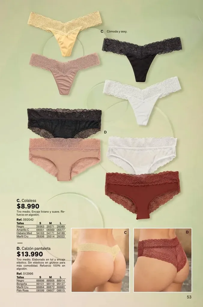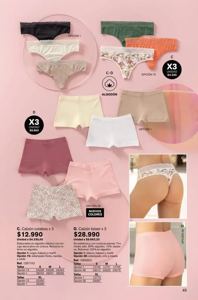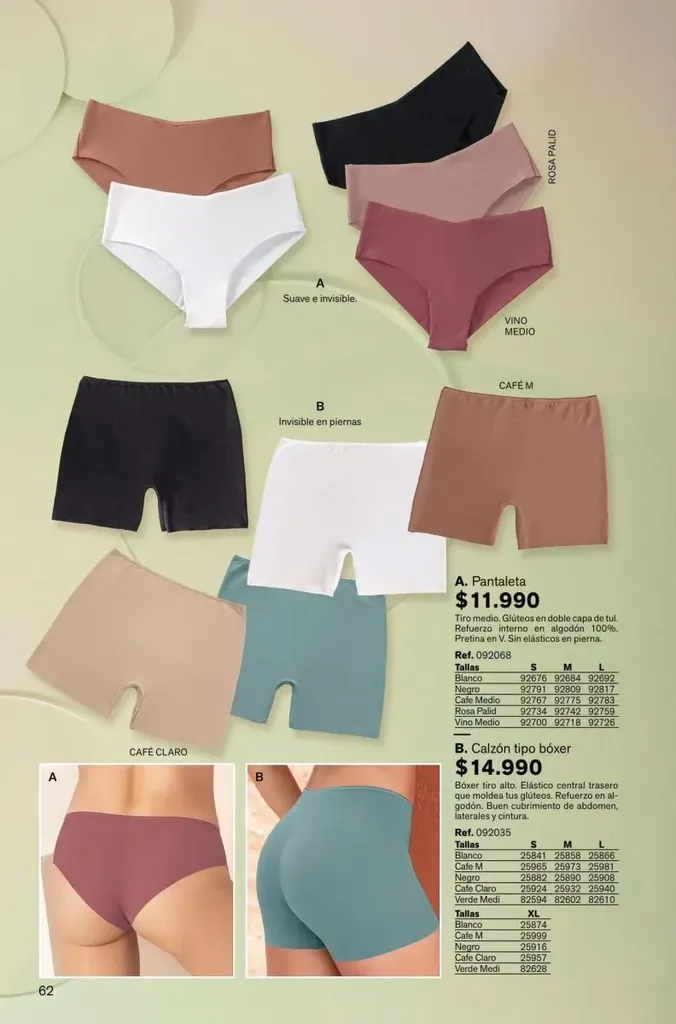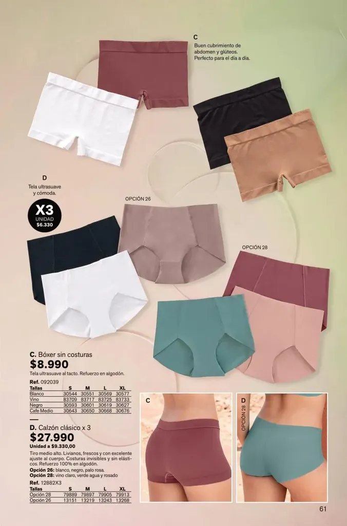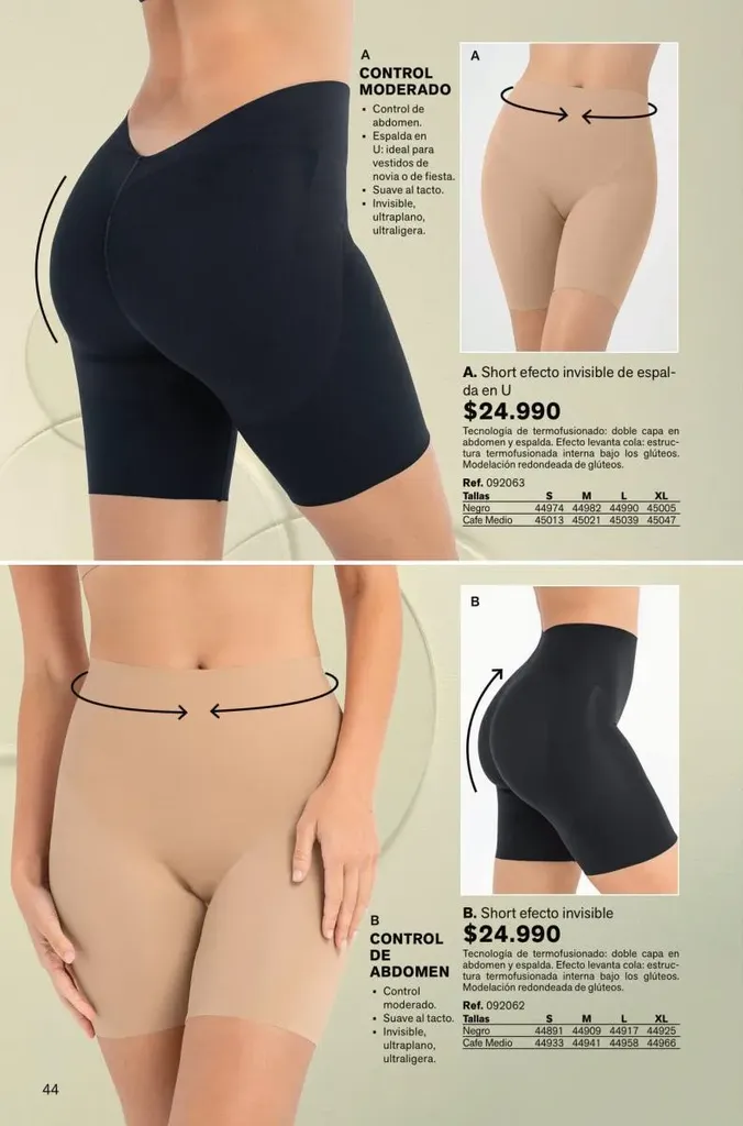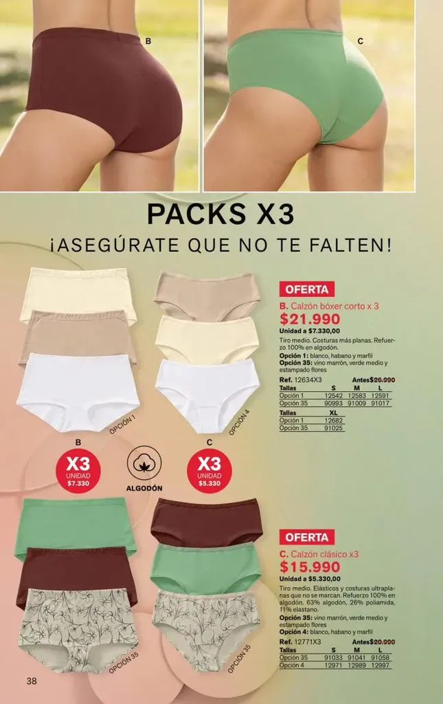 Todas estas prendas traen refuerzos de 100 % algodón en colores de moda. Y no te olvides de llevar una faja con control de abdomen, glúteos y piernas para esos momentos donde tú quieres verte perfecta y natural con tu vestimenta favorita.