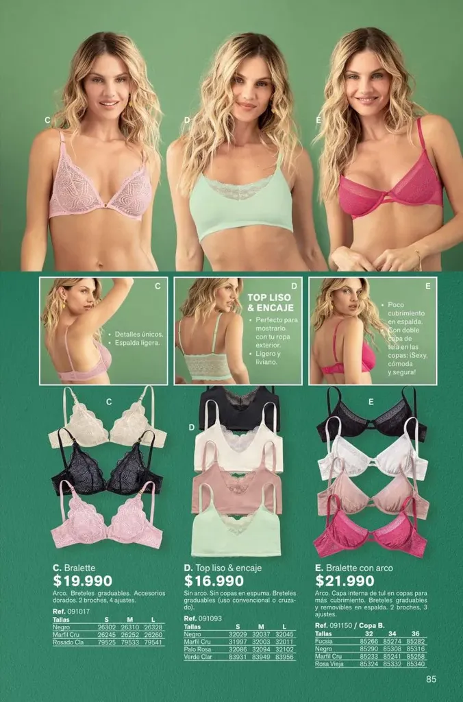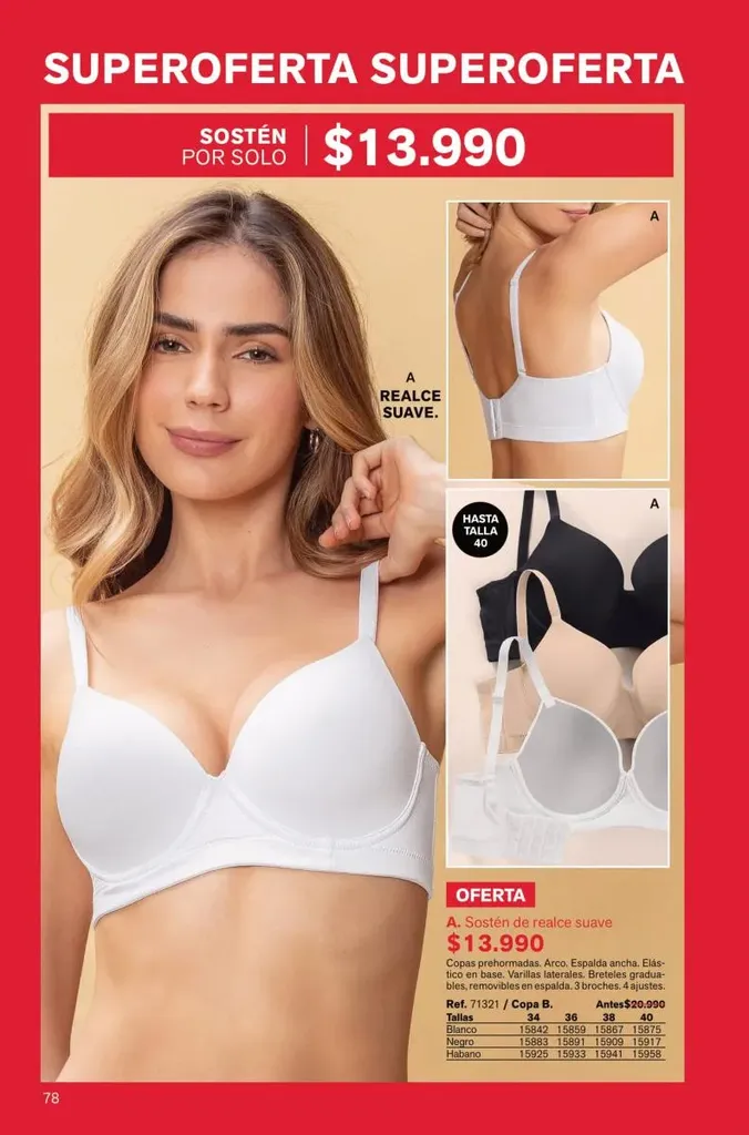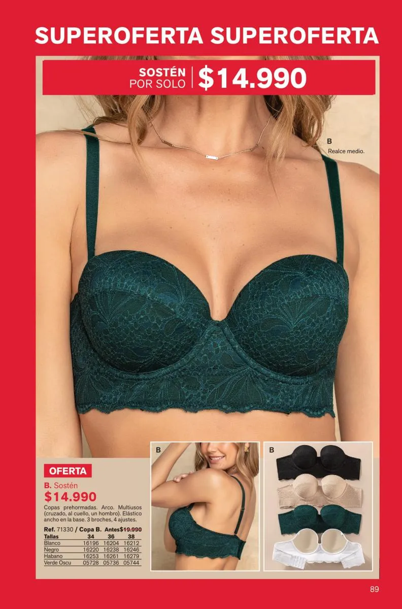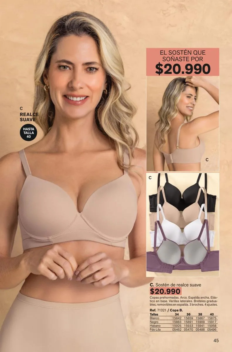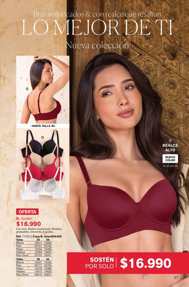 Atrévete a usar algo que resalte tu interior como el “special fit” con realce alto y espalda ancha con los nuevos colores de la temporada. También debes probar los nuevos bra wow tipo strapless con mega realce.