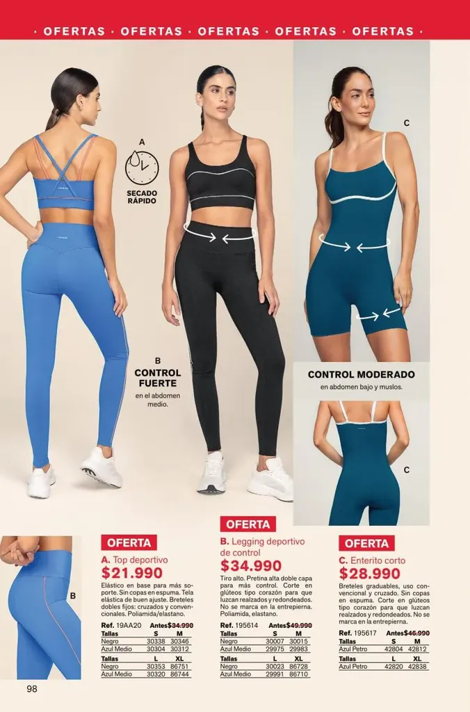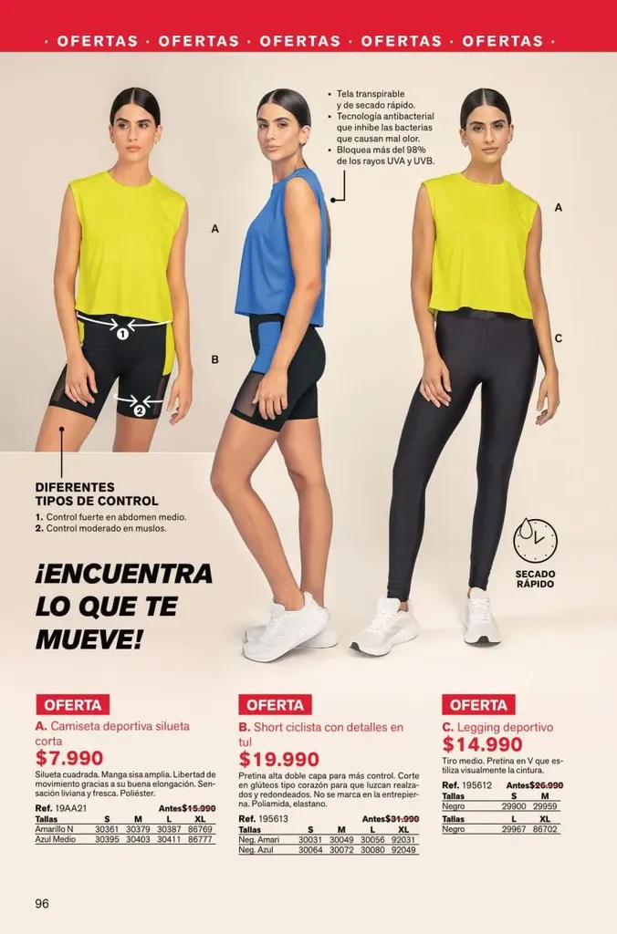 Estos y otros diseños darán un confort estilizado para esa figura perfecta que deseas, como el legging materno con soporte de abdomen, faja body con tallas hasta la dos XL, short de compresión y más tanto femeninas como masculinas.