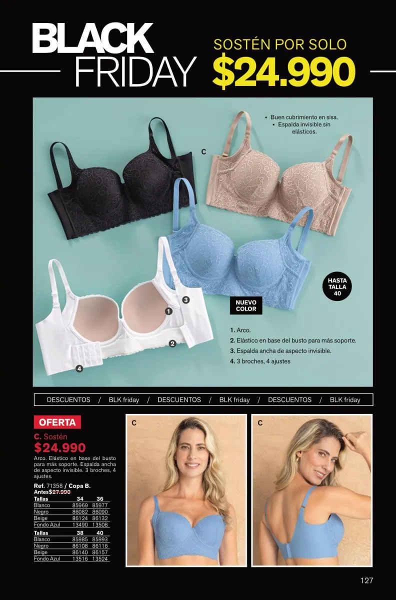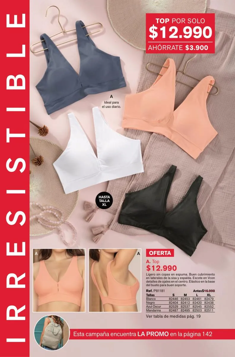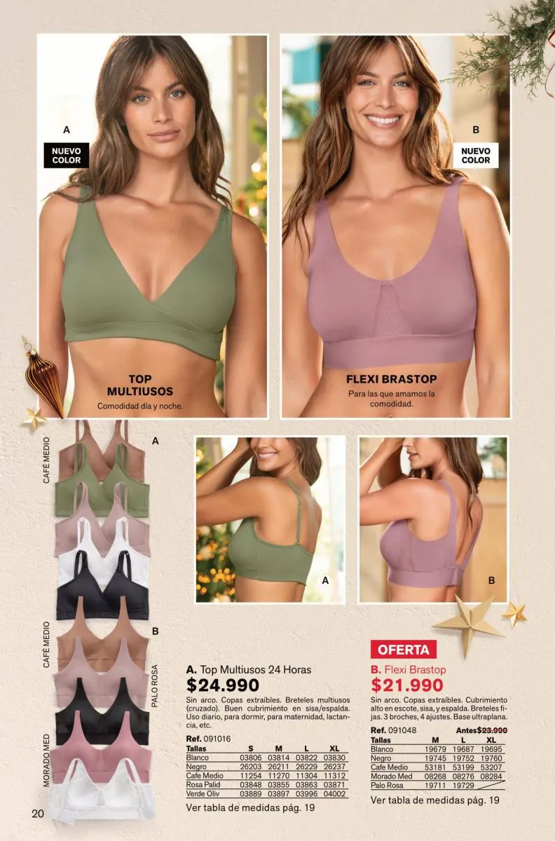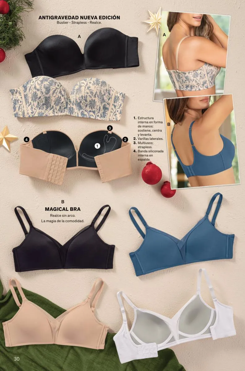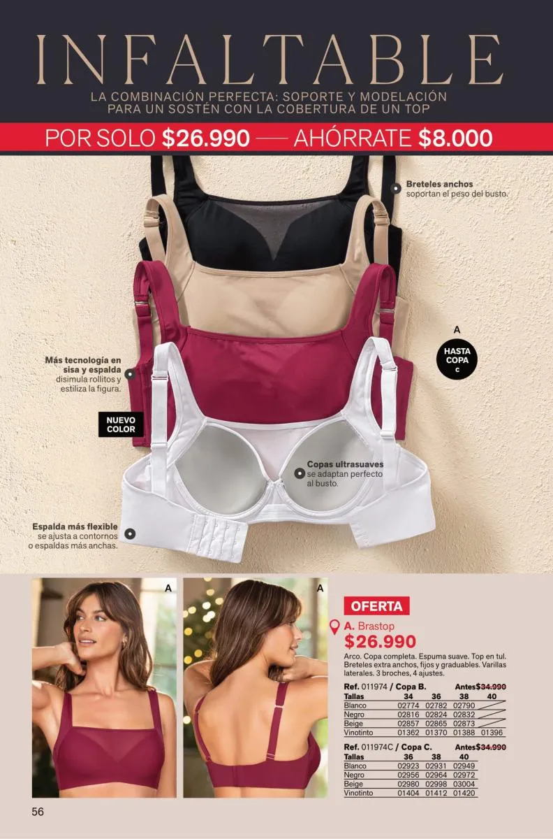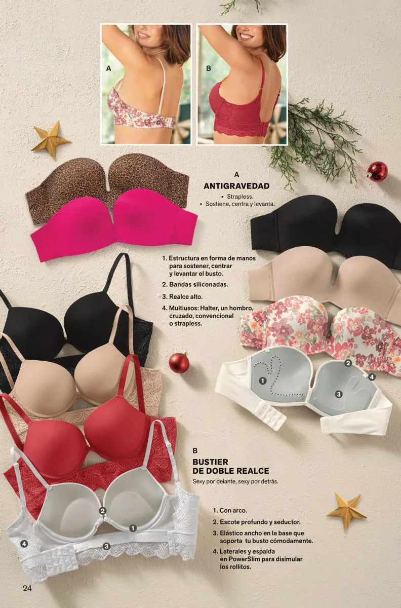 Y para las amantes del realce y textura lisa tienes el Bustier Sexy Back con doble relleno sexy por todos lados. Pero si deseas comodidad día y noche tienes el top multiusos 24 horas.