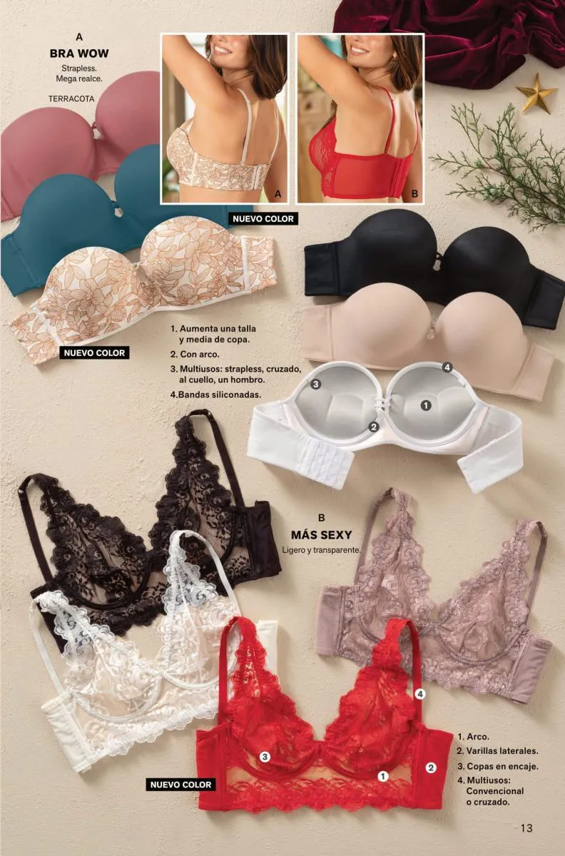 O lo quieres sin realce en encaje para verte más sexy con el sostén tipo Bralette en encaje con transparencia. También puede optar por el Bustier con realce suave, encaje sofisticado y multiuso que puedes usar cruzado, halter, un hombro o strapless, simplemente es perfecto para verte ¡sexy!