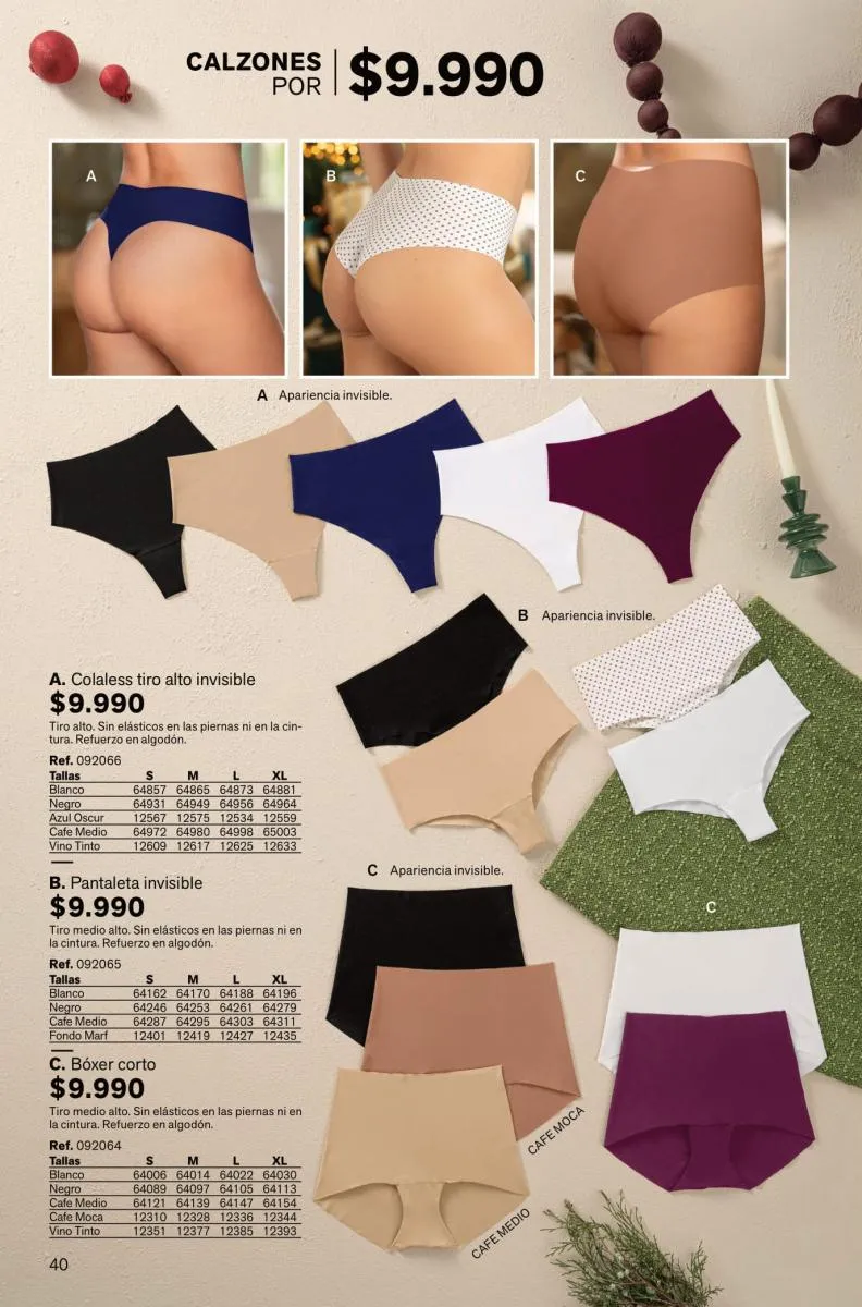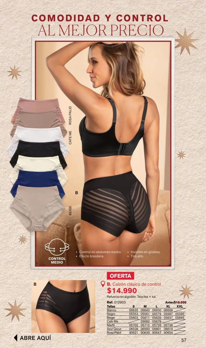 Disfruta de todos los modelos de calzones como los clásicos con control suave de abdomen y cadera que viene hasta la talla XXL y las pantaletas invisibles que se ajusta a la piel y no se marcan ni enrollan. ¿Qué espera? Descubre más prendas ideales y conviértelas en tus favoritas.