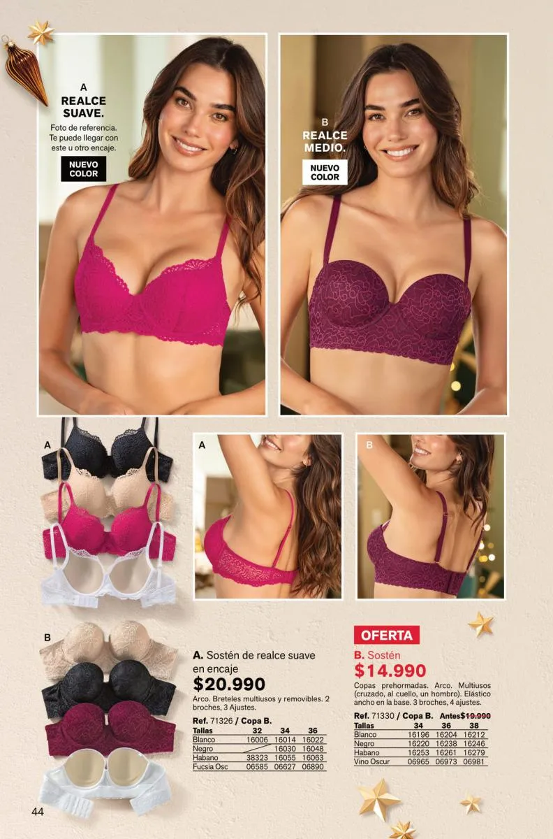 Siéntete cautivadora con una colección llena de detalles y romanticismo en esta Leonisa campaña 17 y 18 2025 Chile hecha a tu medida. ¿Cómo quieres tus prendas interiores? Acaso ¿Lo quieres con realce y liso? Como el Power Bra con doble realce sin arco y confort avanzado, ligero y suave.