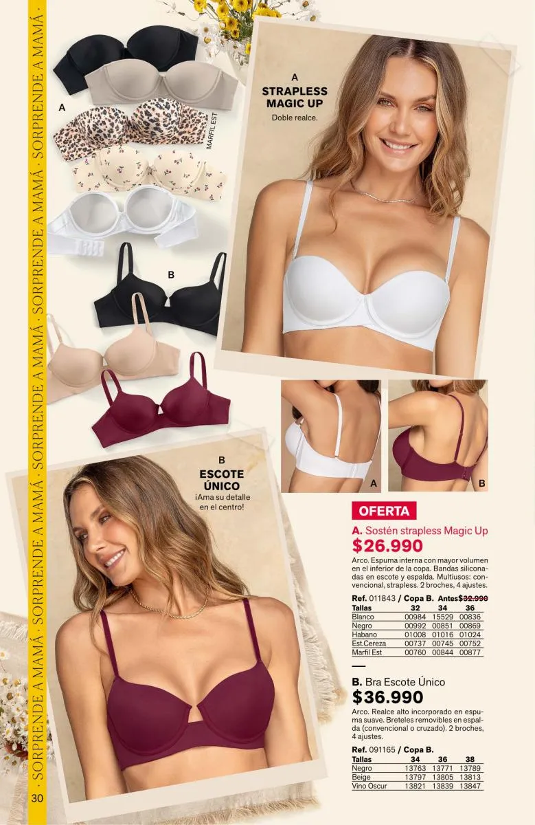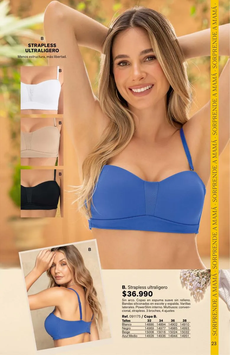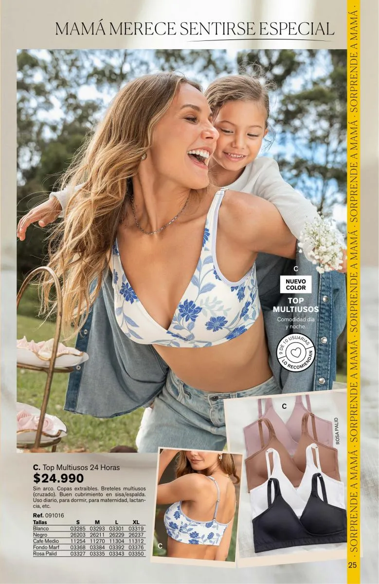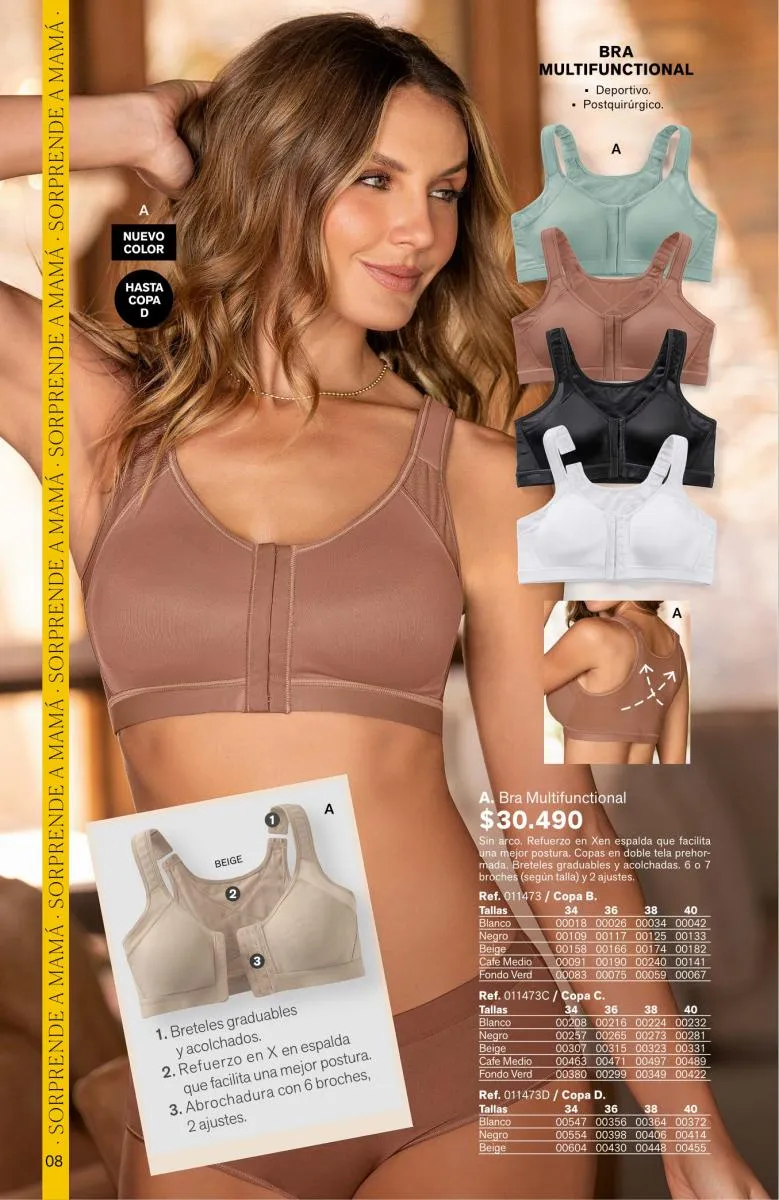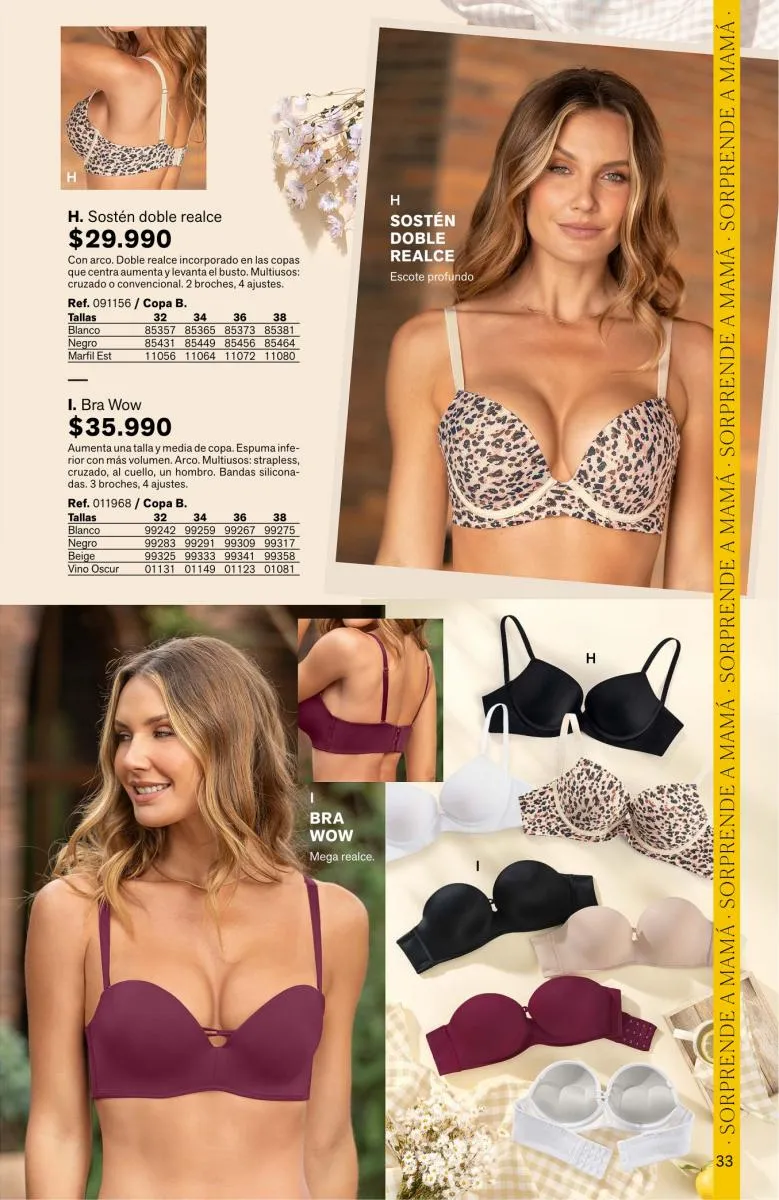 Para las mamis más sensuales el Bra Wow será su favorito por sus breteles multiusos, triple realce para verte sexy. Pero si mama es vanidosa, el Power Bra provee seguridad y comodidad sin rollitos. Tiene copas de alto cubrimiento y espalda ancha para una apariencia más estilizada.