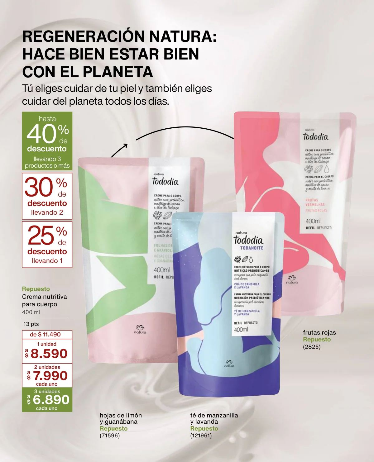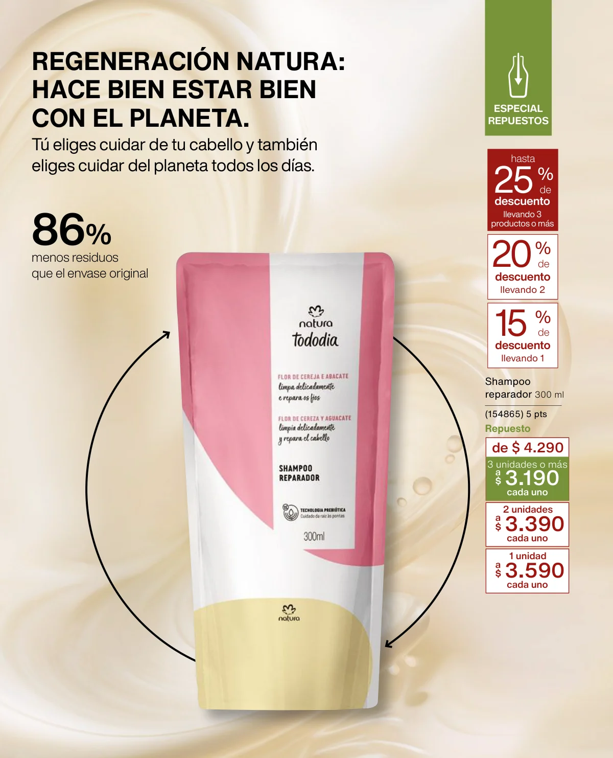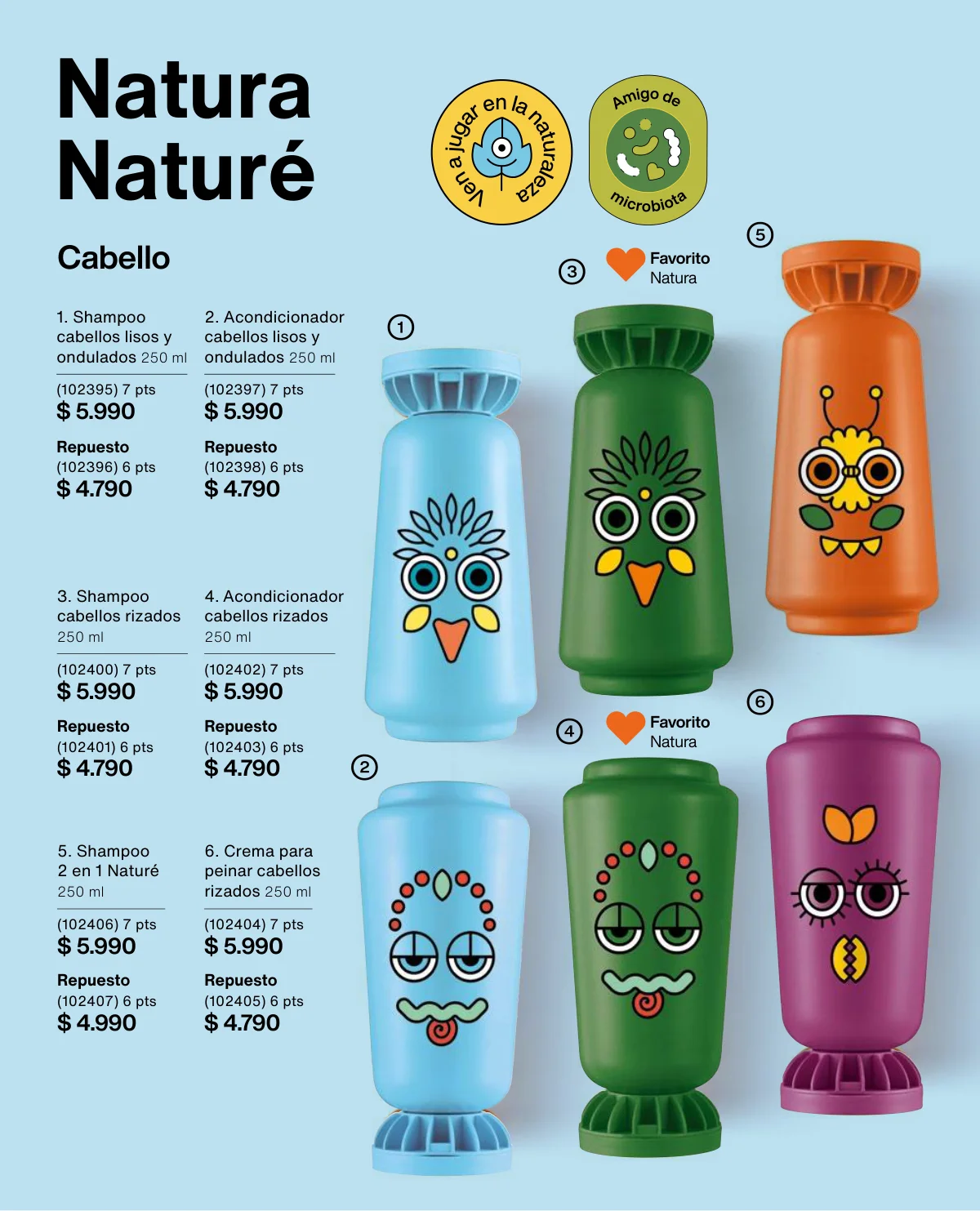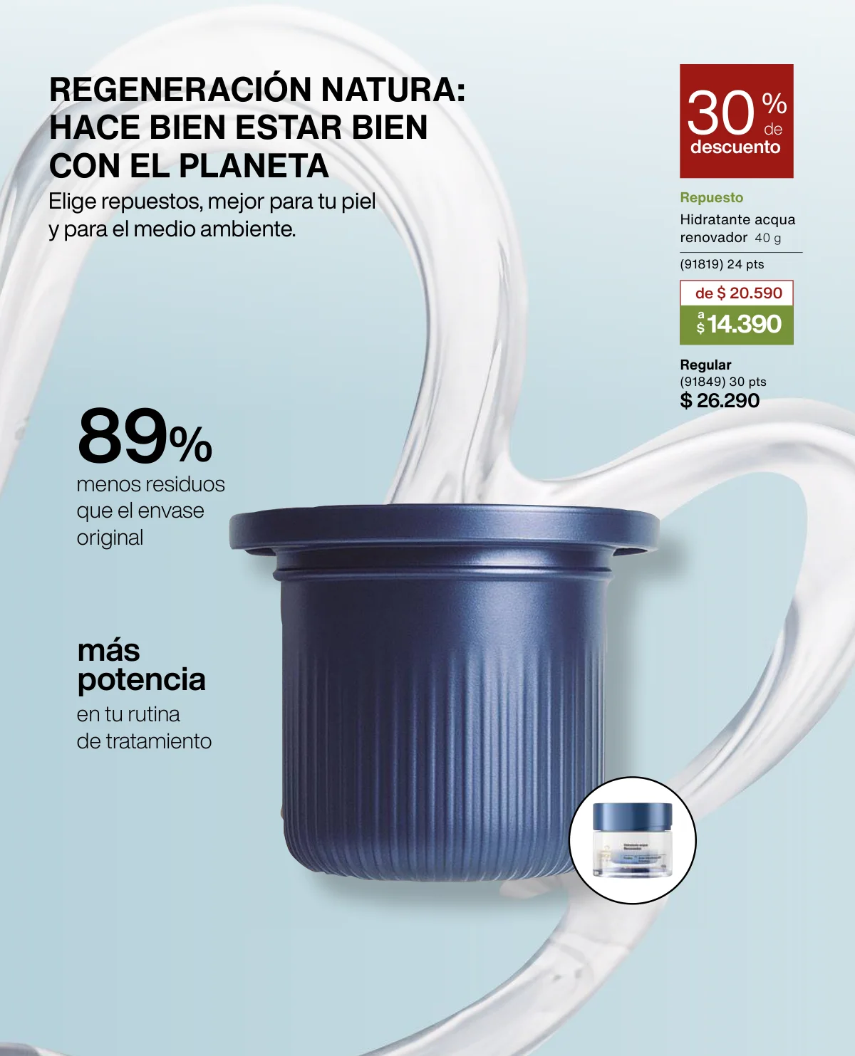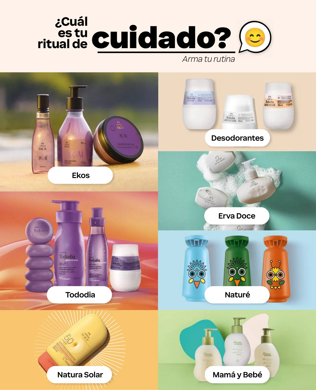 Natura tiene años usando hasta un 87% menos plástico que el envase original. Esto es porque catálogo Natura 1 2026 Chile quiere formar parte de un movimiento que disminuya el exceso de basura, protegiendo la planta y todo lo que lo rodea.