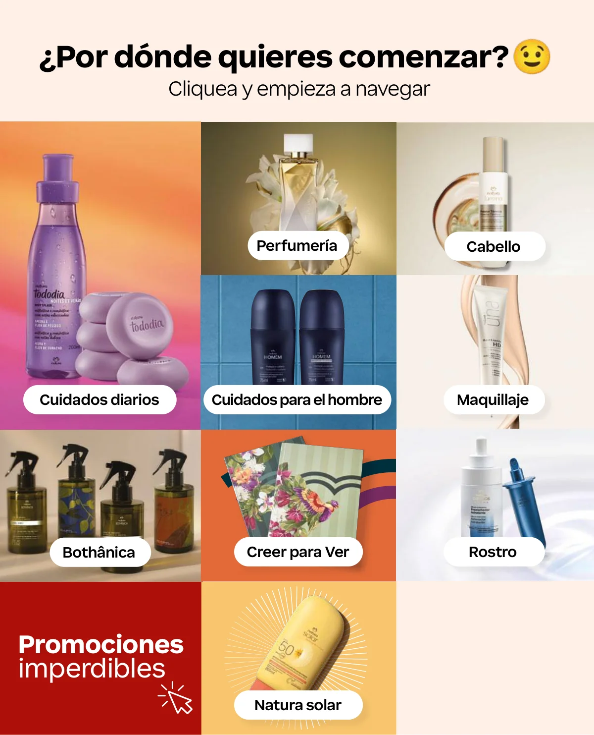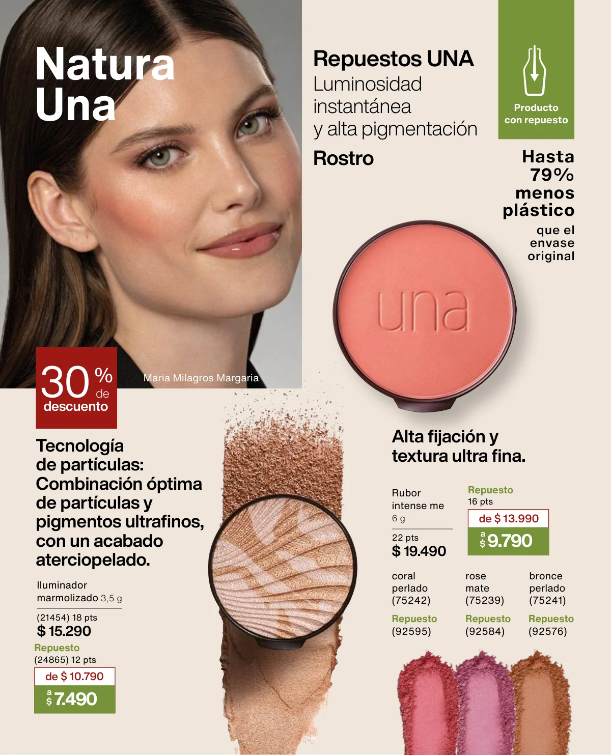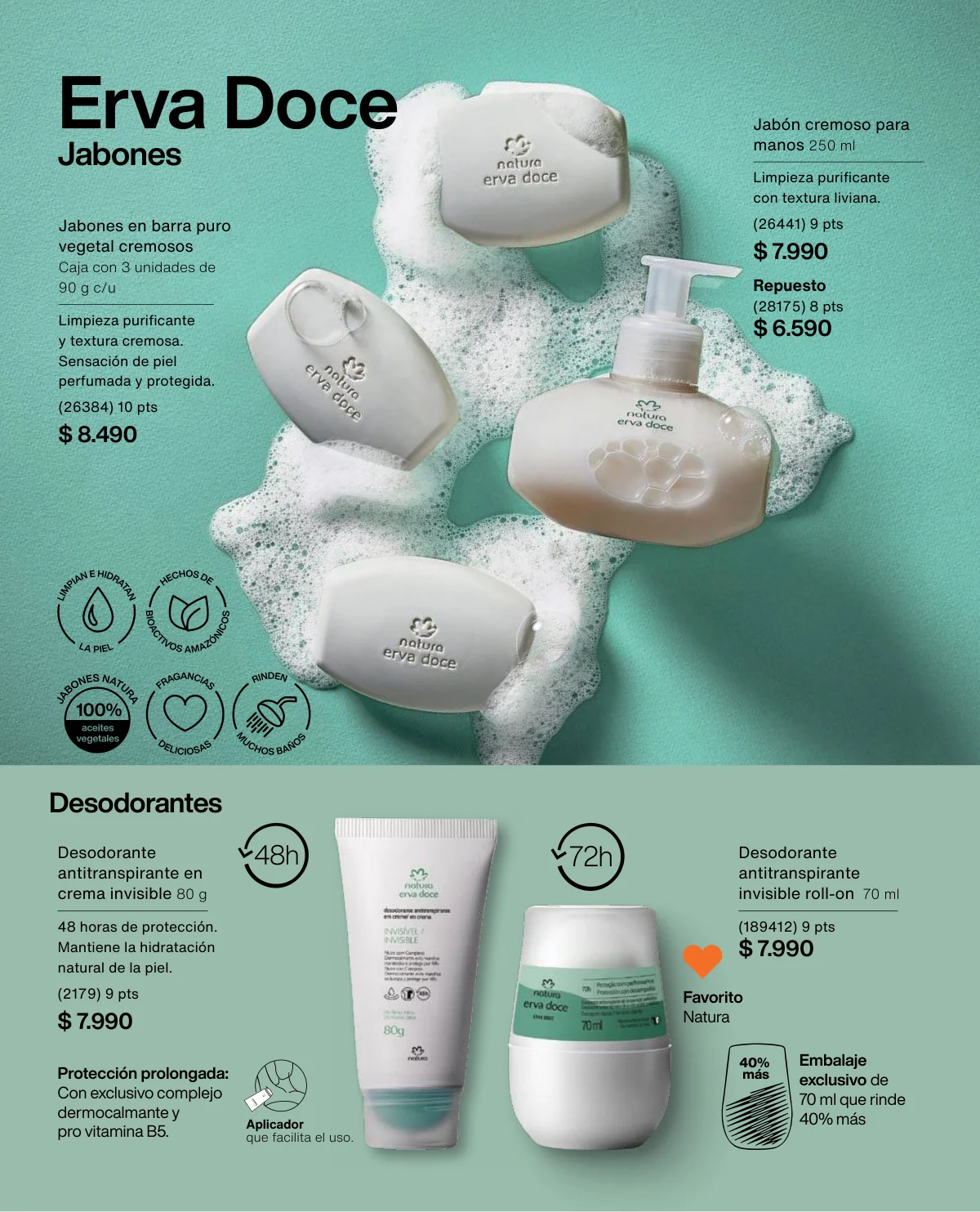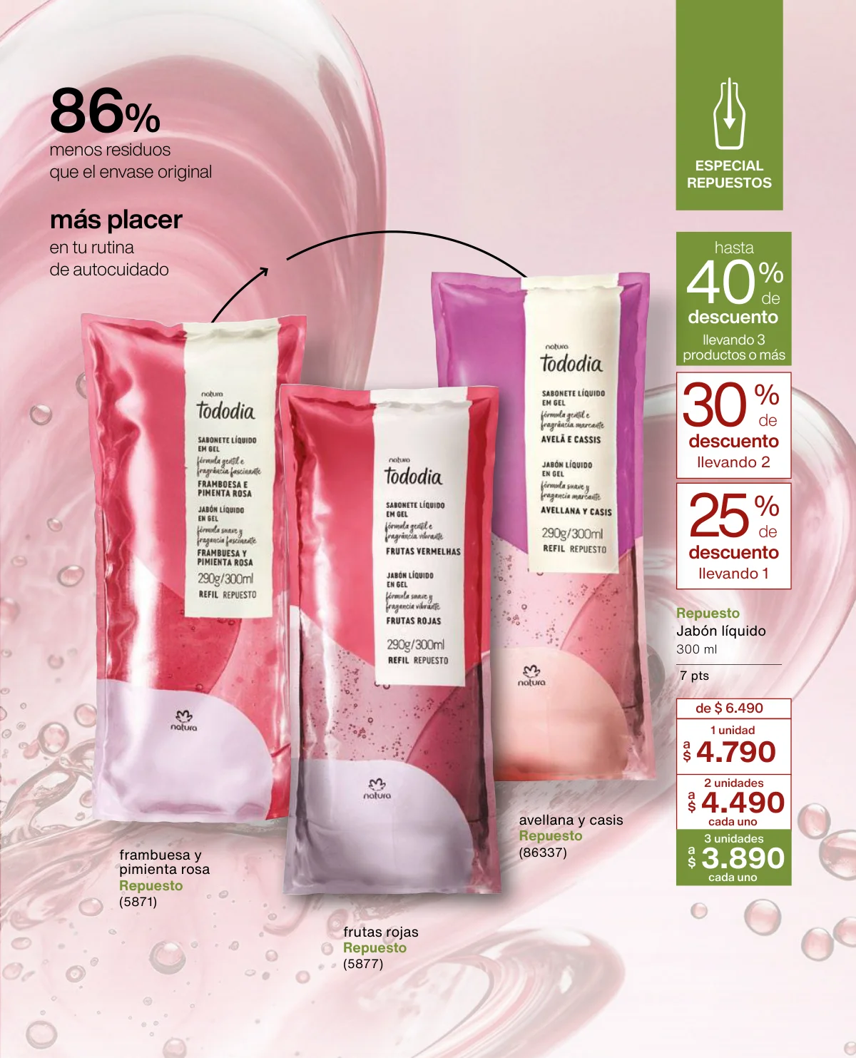 Natura tiene años usando hasta un 87% menos plástico que el envase original. Esto es porque catálogo Natura 1 2026 Chile quiere formar parte de un movimiento que disminuya el exceso de basura, protegiendo la planta y todo lo que lo rodea.