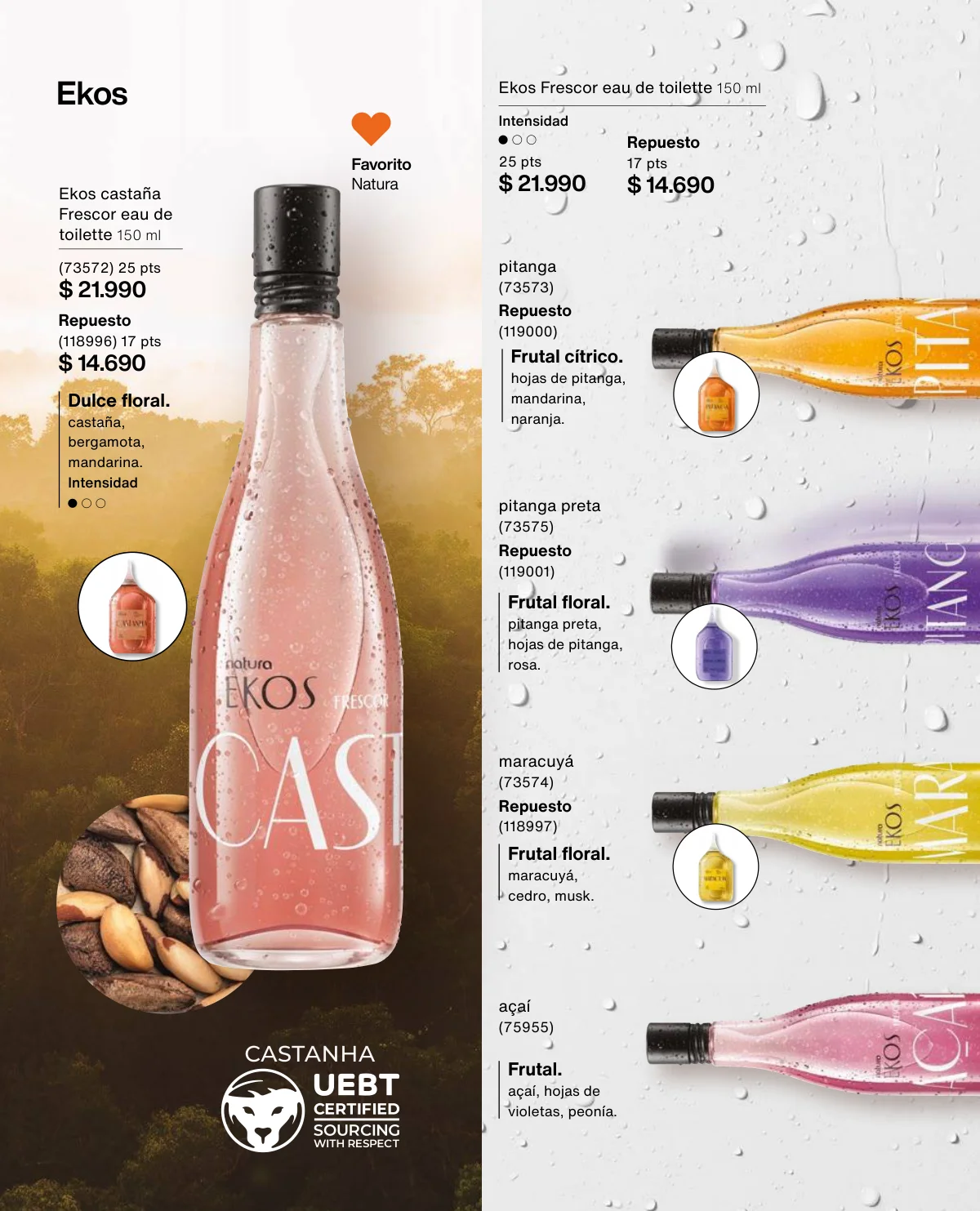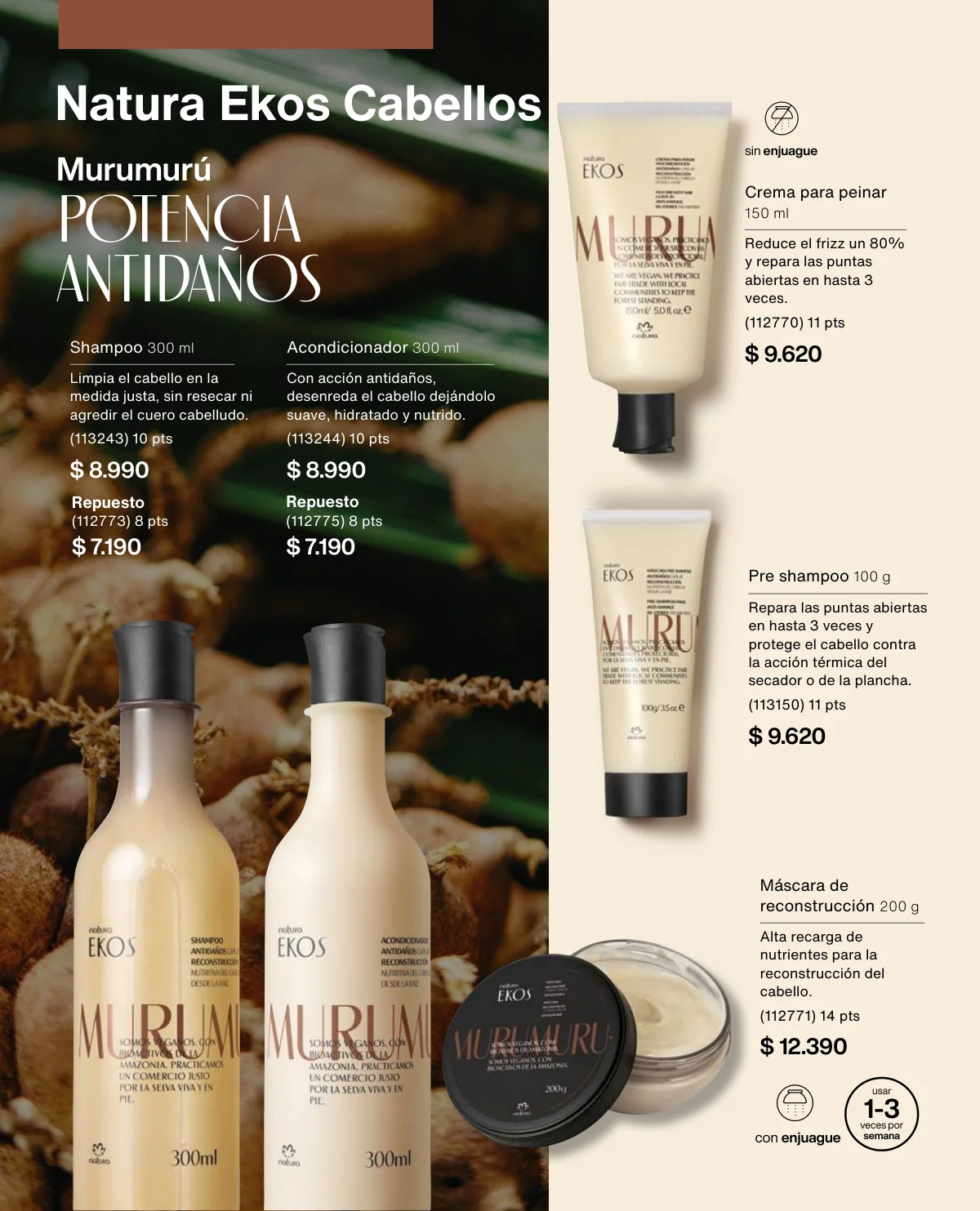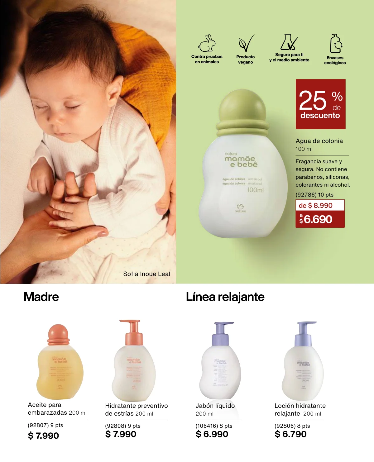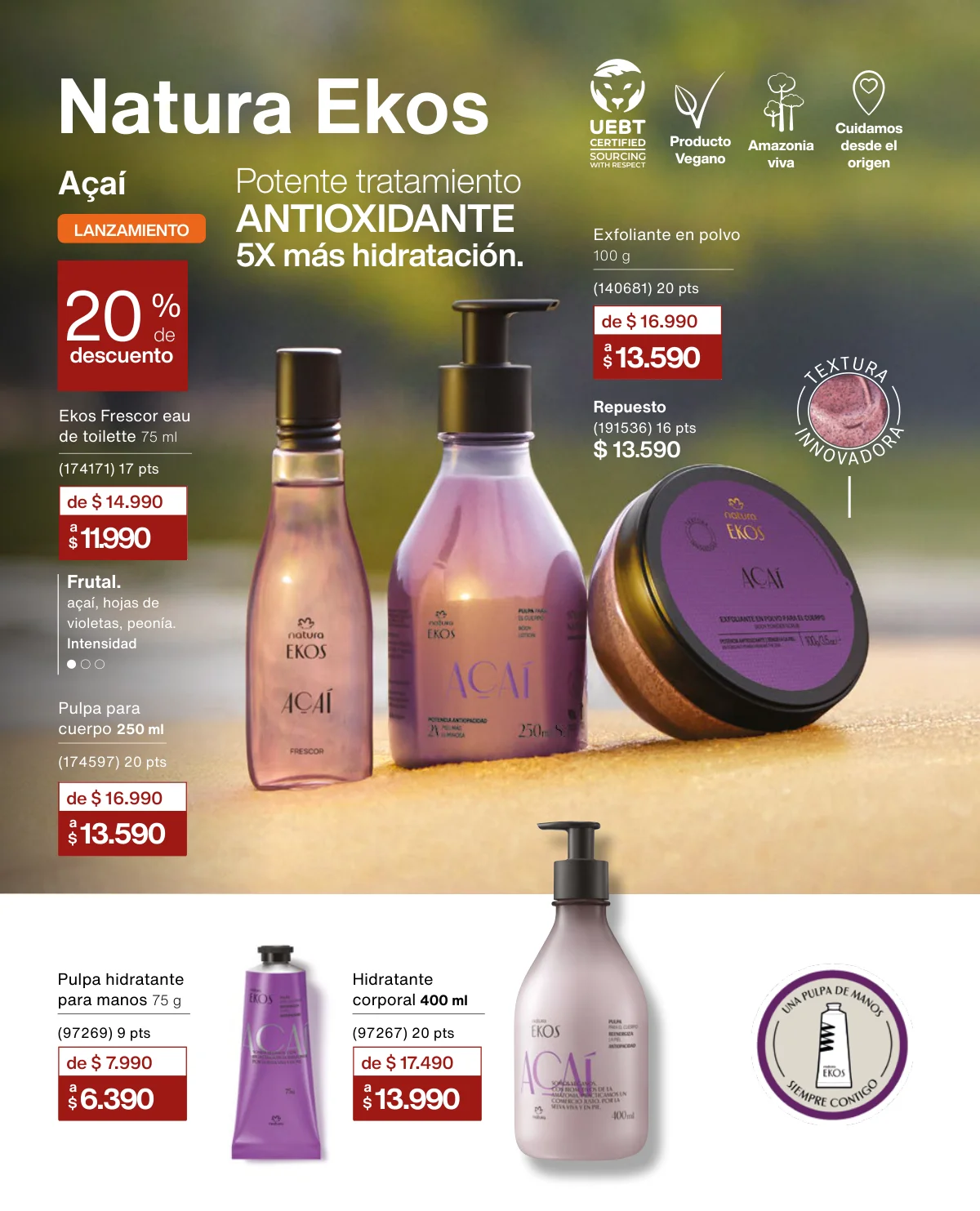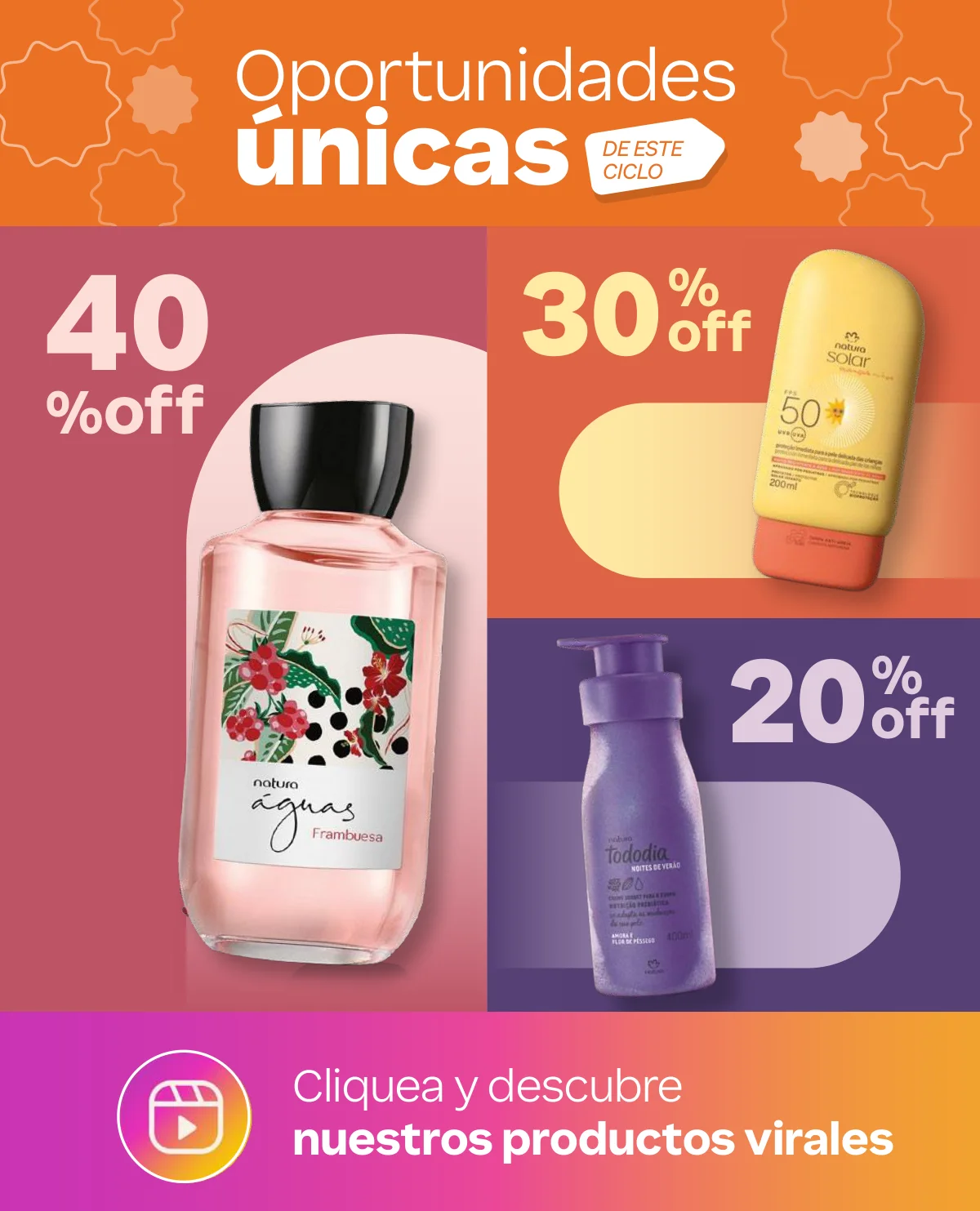Natura tiene años usando hasta un 87% menos plástico que el envase original. Esto es porque catálogo Natura 1 2026 Chile quiere formar parte de un movimiento que disminuya el exceso de basura, protegiendo la planta y todo lo que lo rodea.