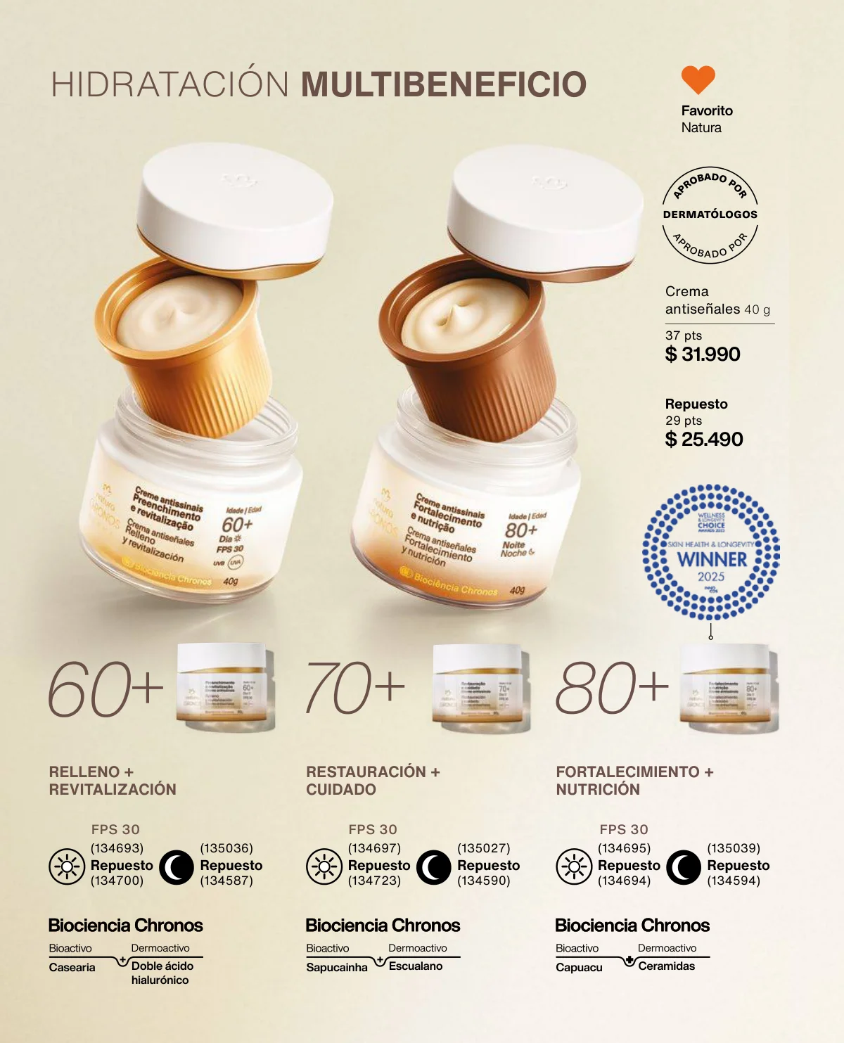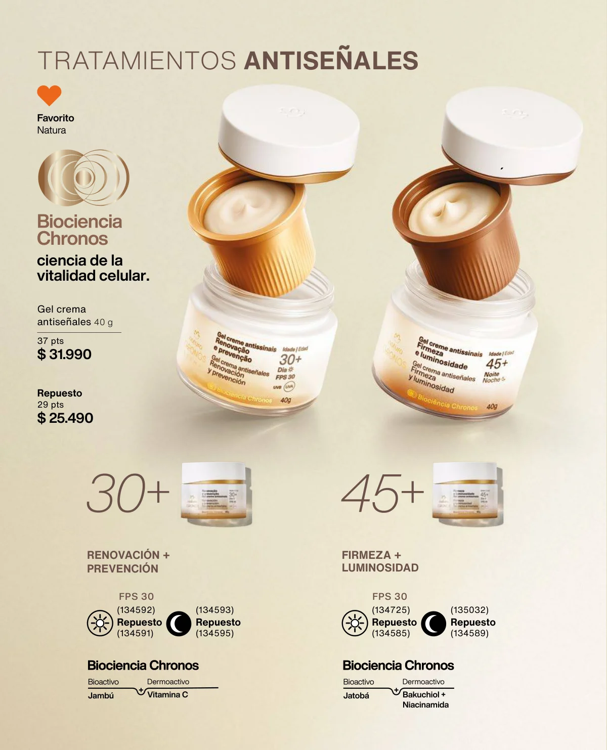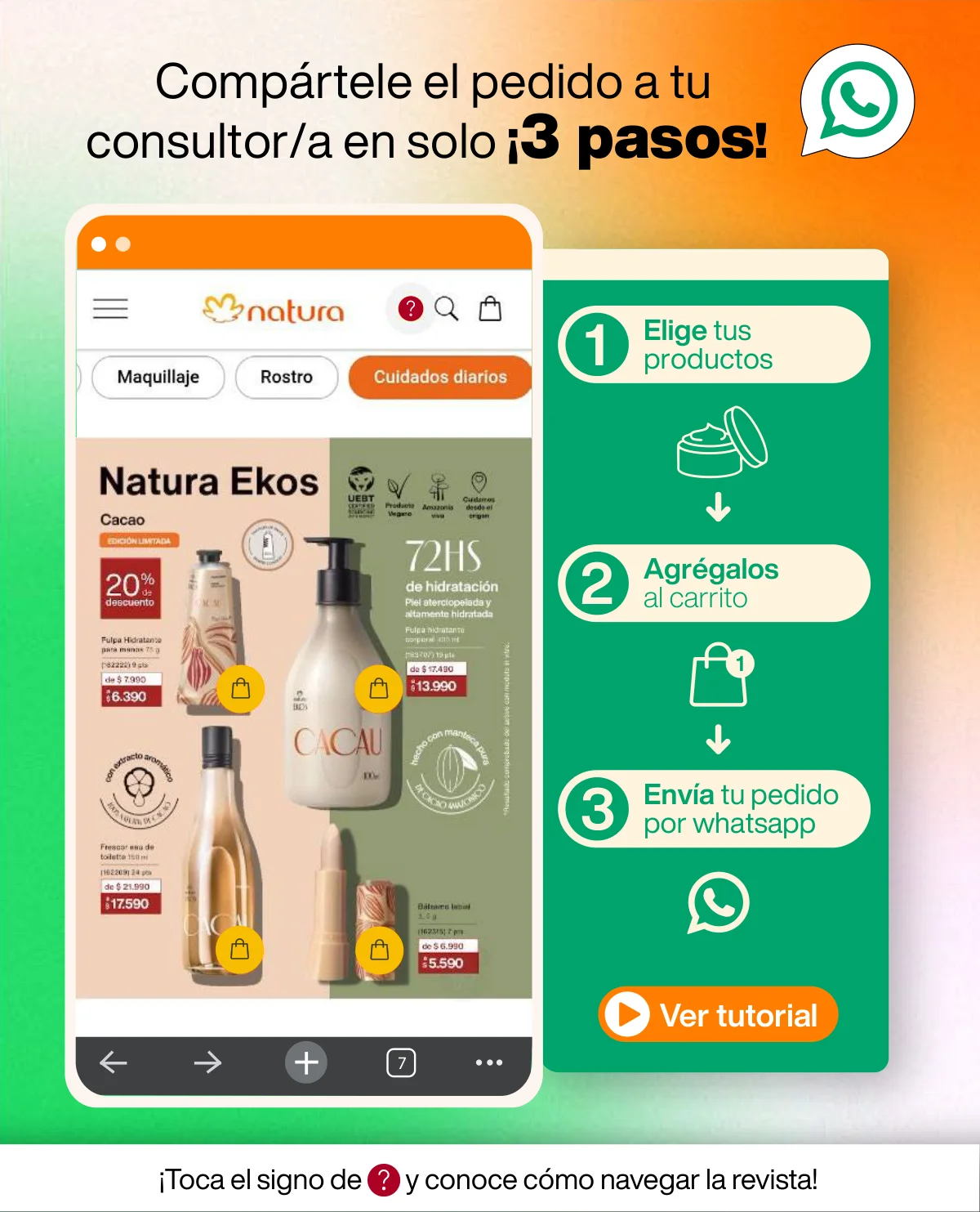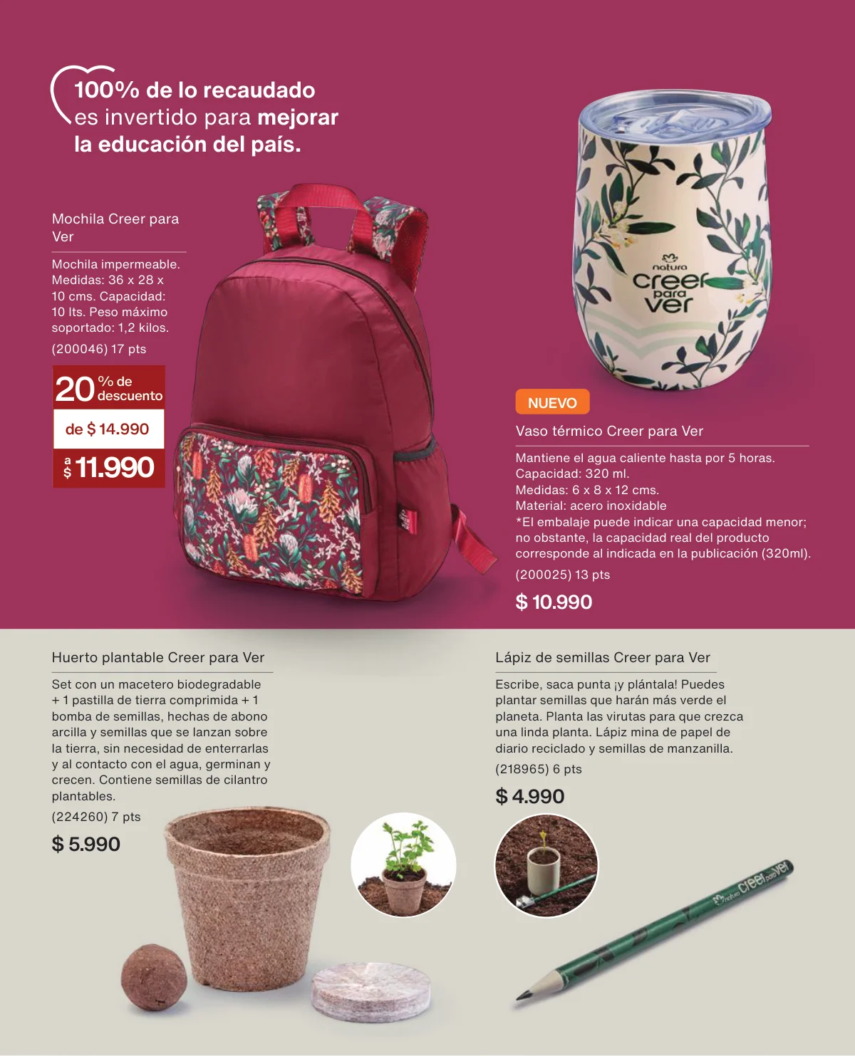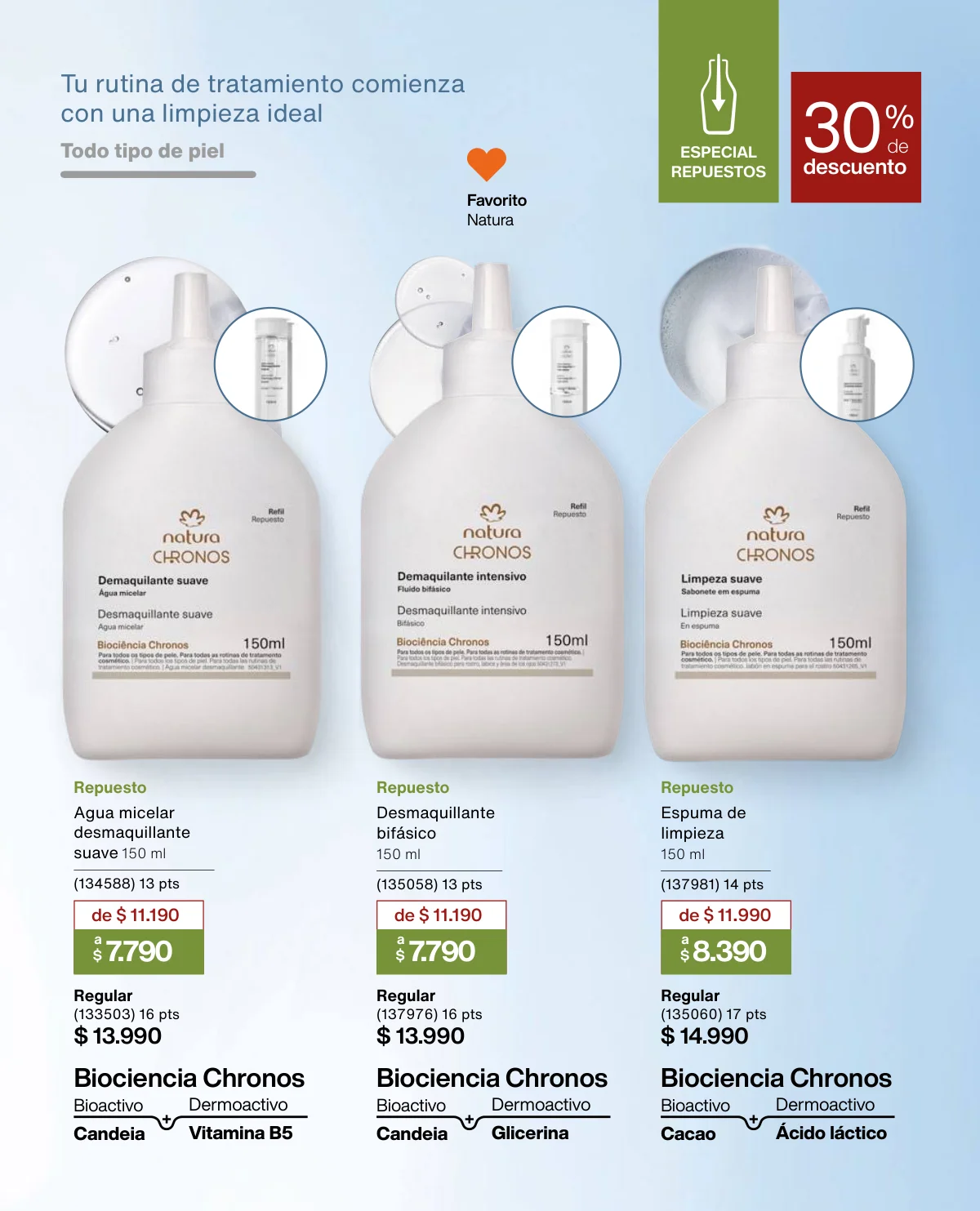 Natura tiene años usando hasta un 87% menos plástico que el envase original. Esto es porque catálogo Natura 1 2026 Chile quiere formar parte de un movimiento que disminuya el exceso de basura, protegiendo la planta y todo lo que lo rodea.