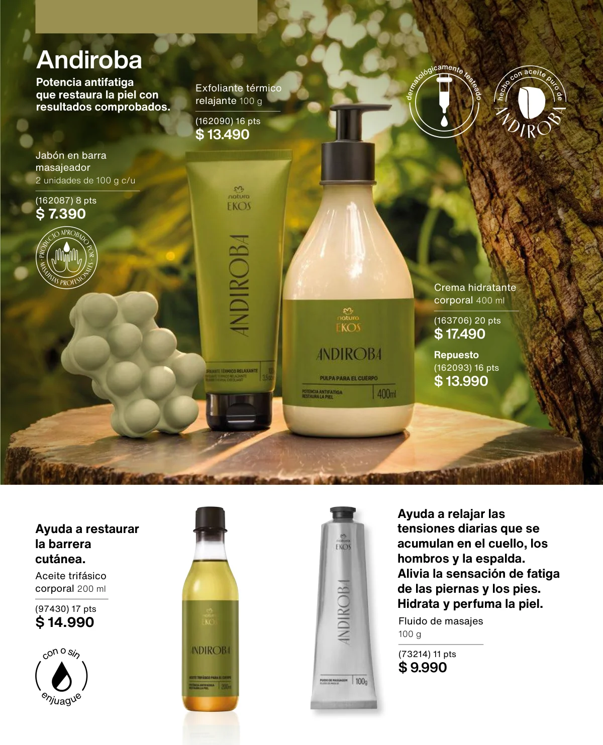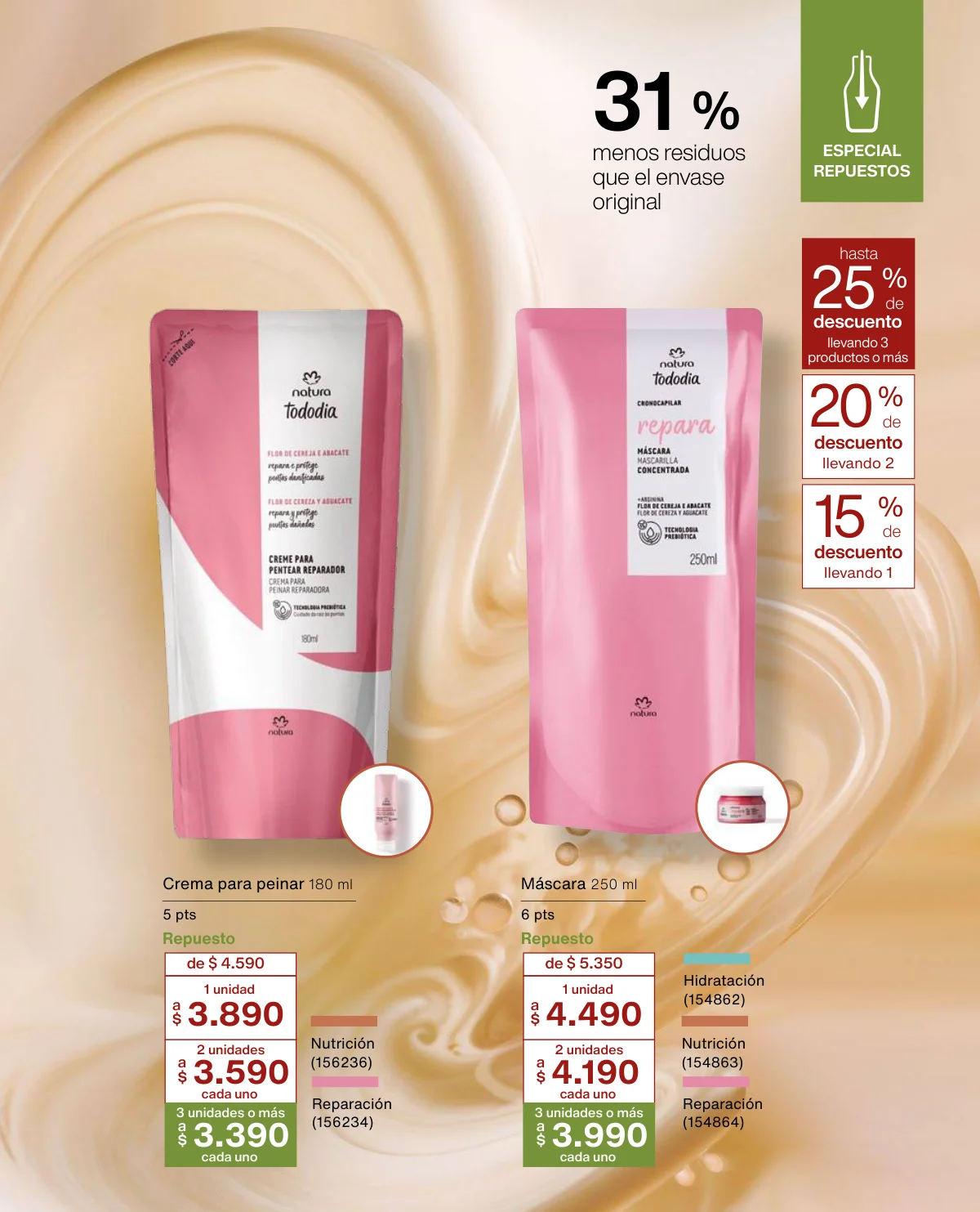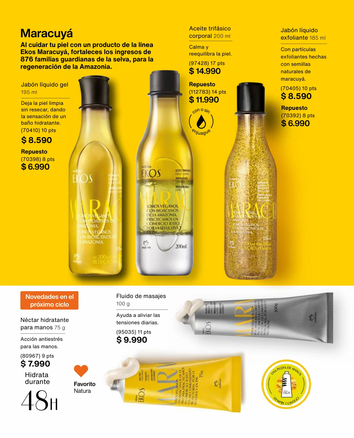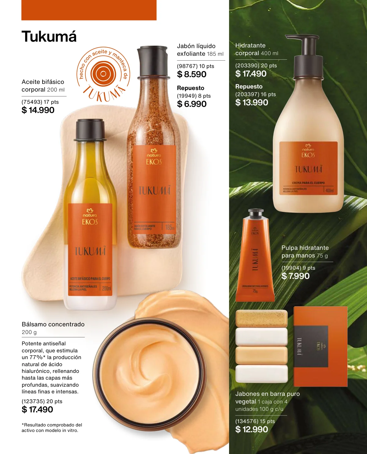 Natura tiene años usando hasta un 87% menos plástico que el envase original. Esto es porque catálogo Natura 1 2026 Chile quiere formar parte de un movimiento que disminuya el exceso de basura, protegiendo la planta y todo lo que lo rodea.