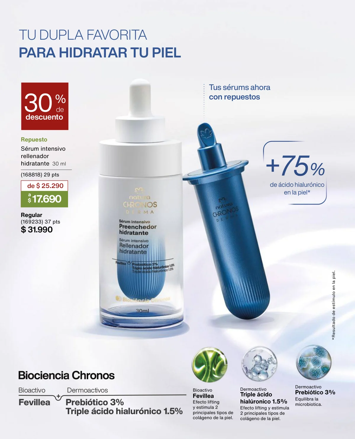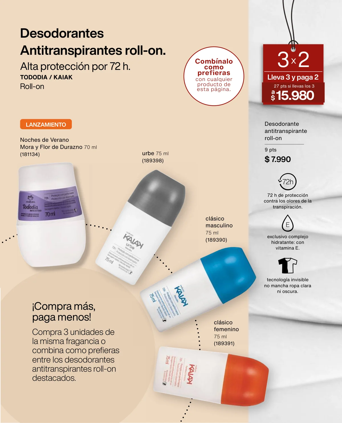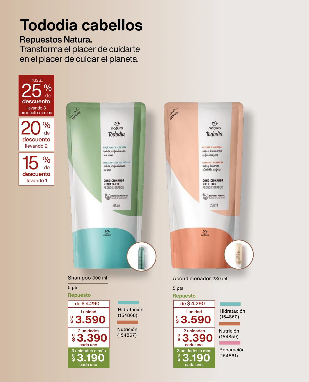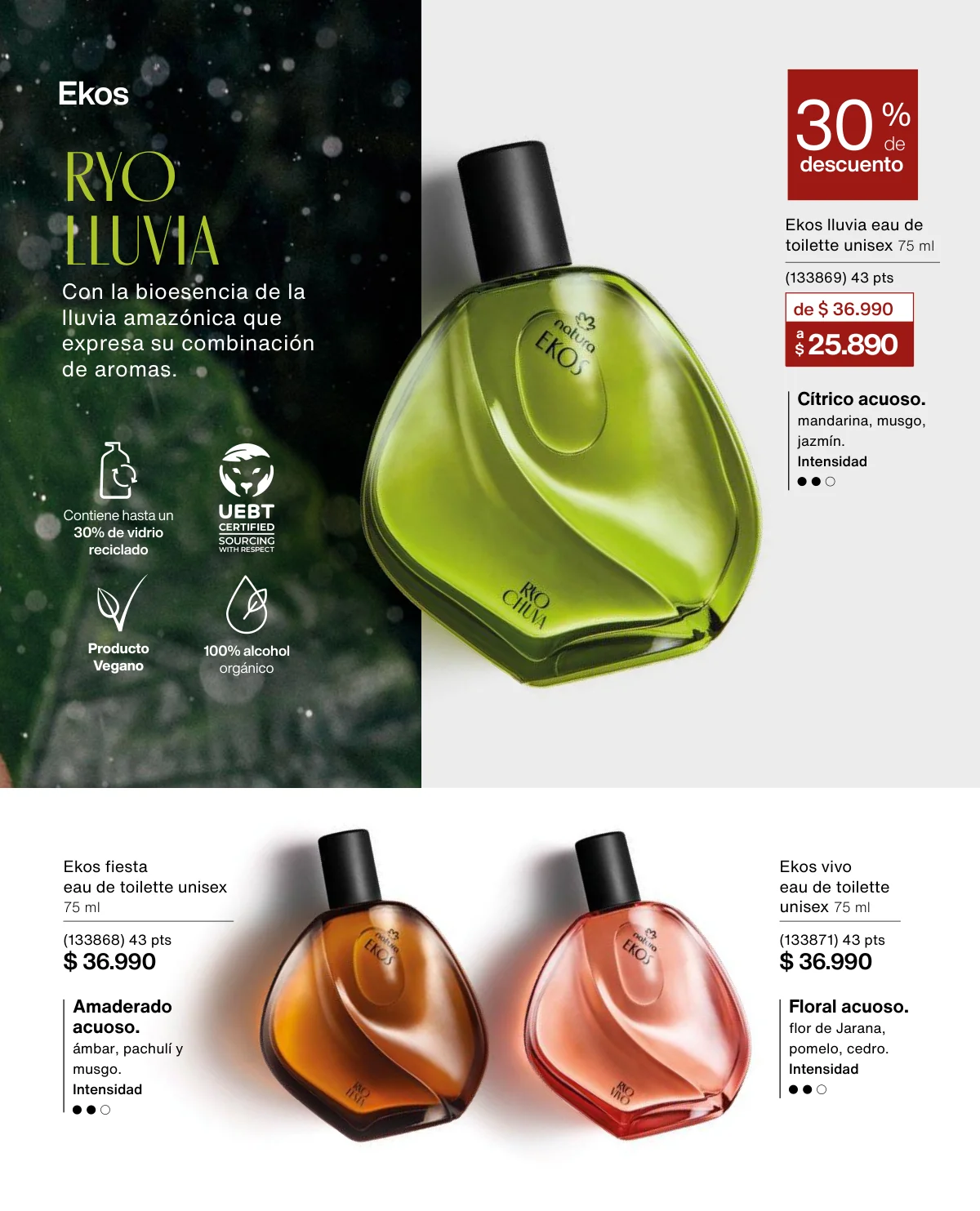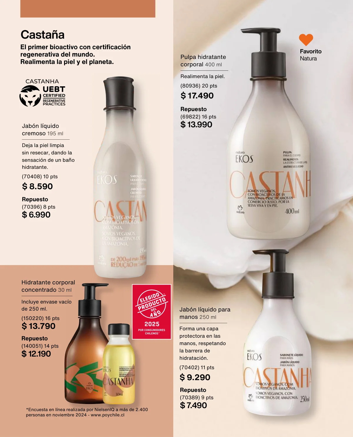 Natura tiene años usando hasta un 87% menos plástico que el envase original. Esto es porque catálogo Natura 1 2026 Chile quiere formar parte de un movimiento que disminuya el exceso de basura, protegiendo la planta y todo lo que lo rodea.