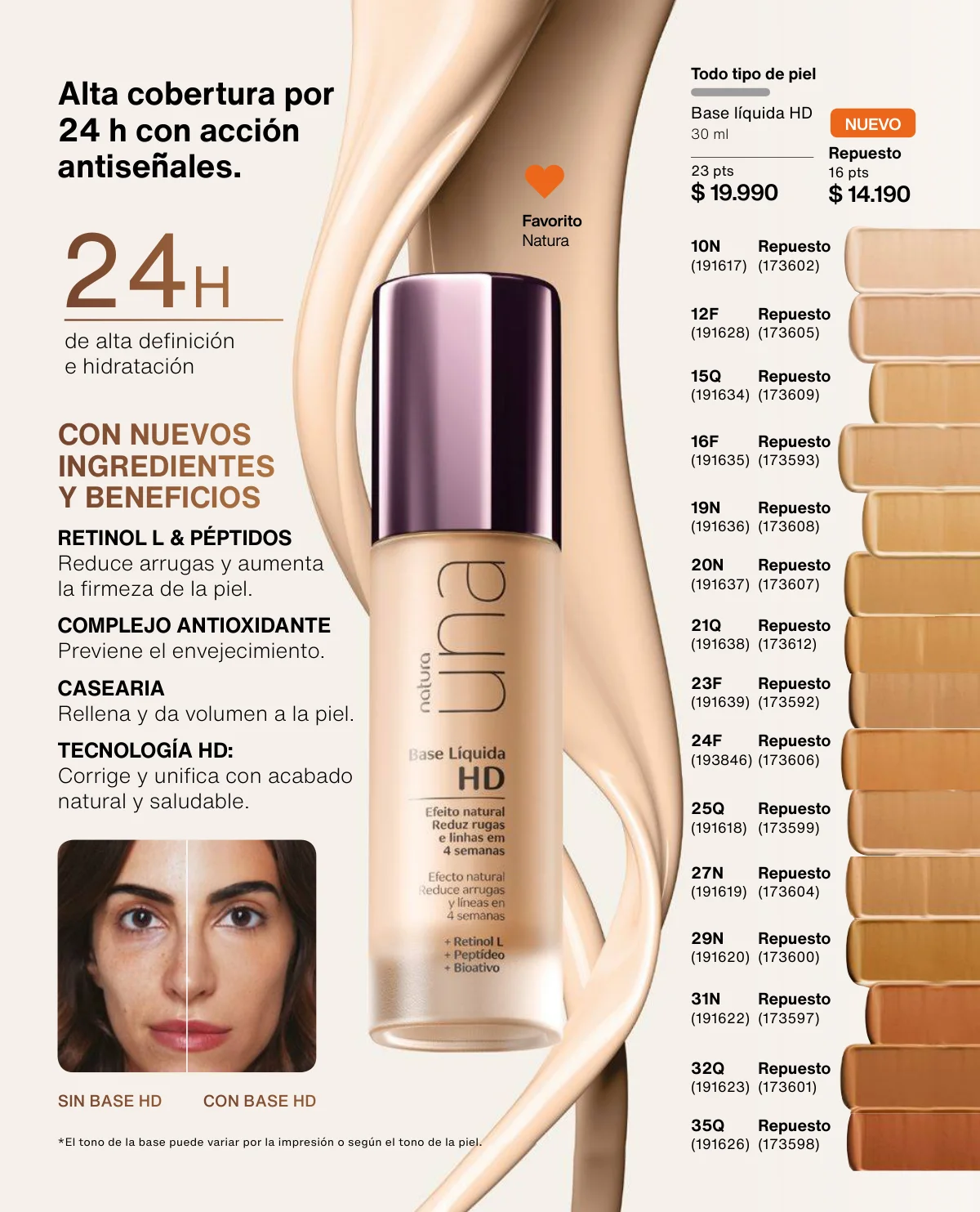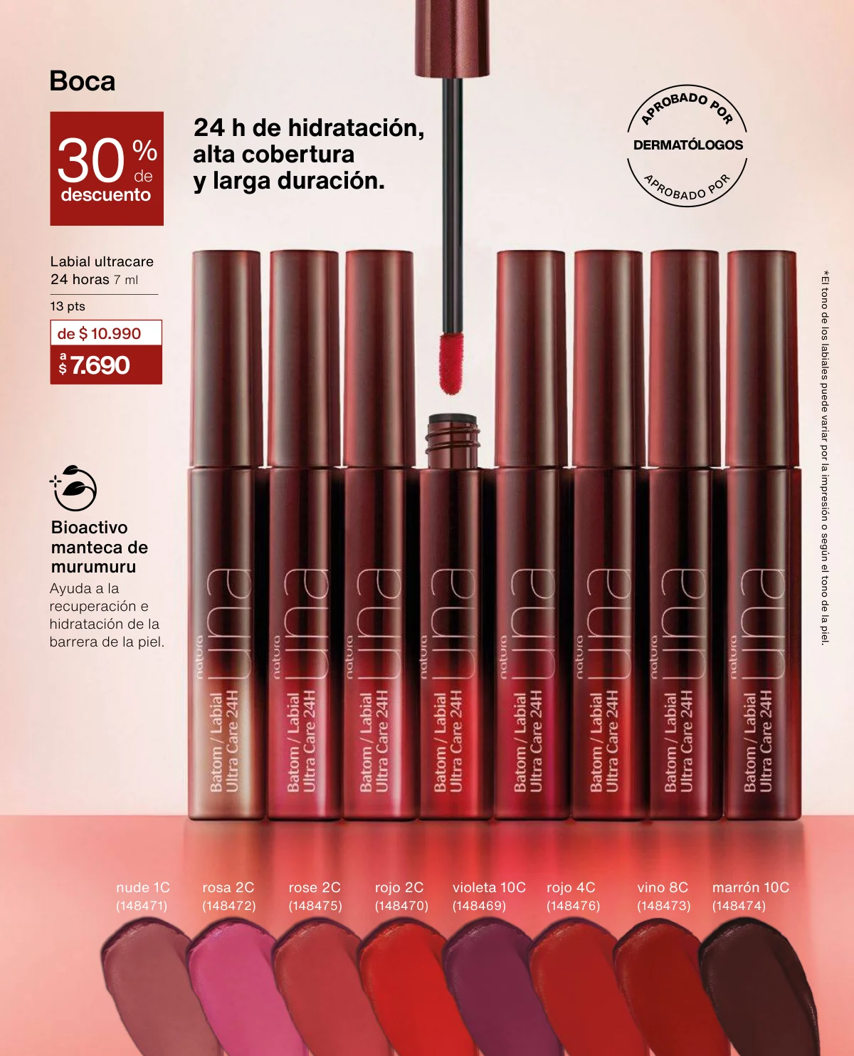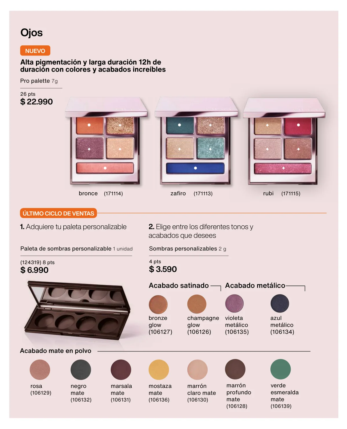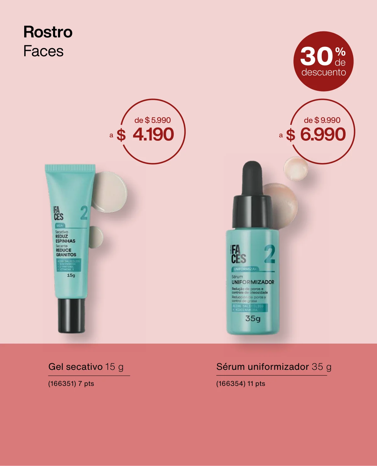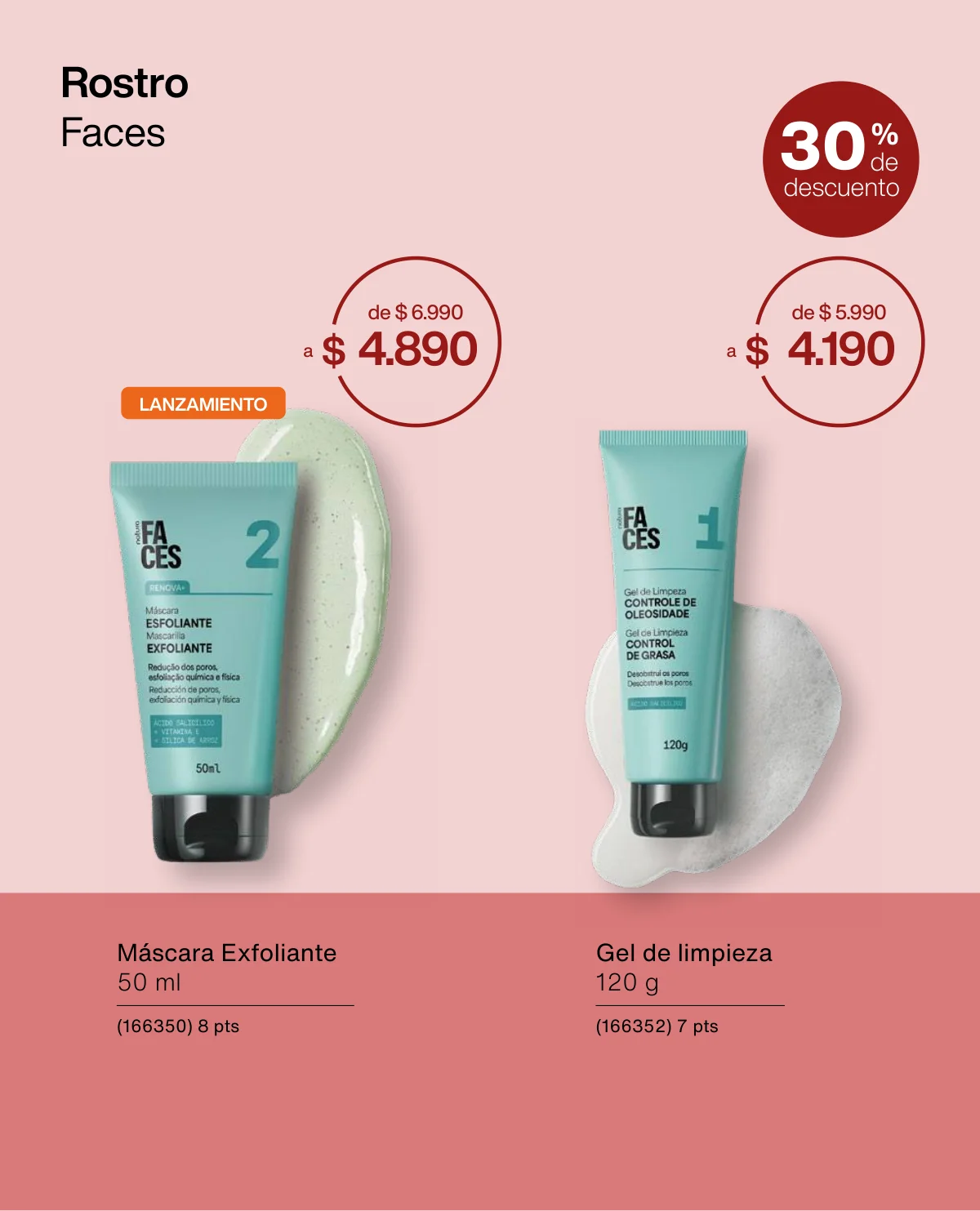 Y para un maquillaje de impacto, las líneas UNA y Faces (página 65 en adelante) tiene las muestras más variadas de Primers UNA (productos para hacer durar el maquillaje), bases y rubores, sérum labial UNA o las llamativas paletas de sombras Faces o los labiales de hidratación 24 horas.
