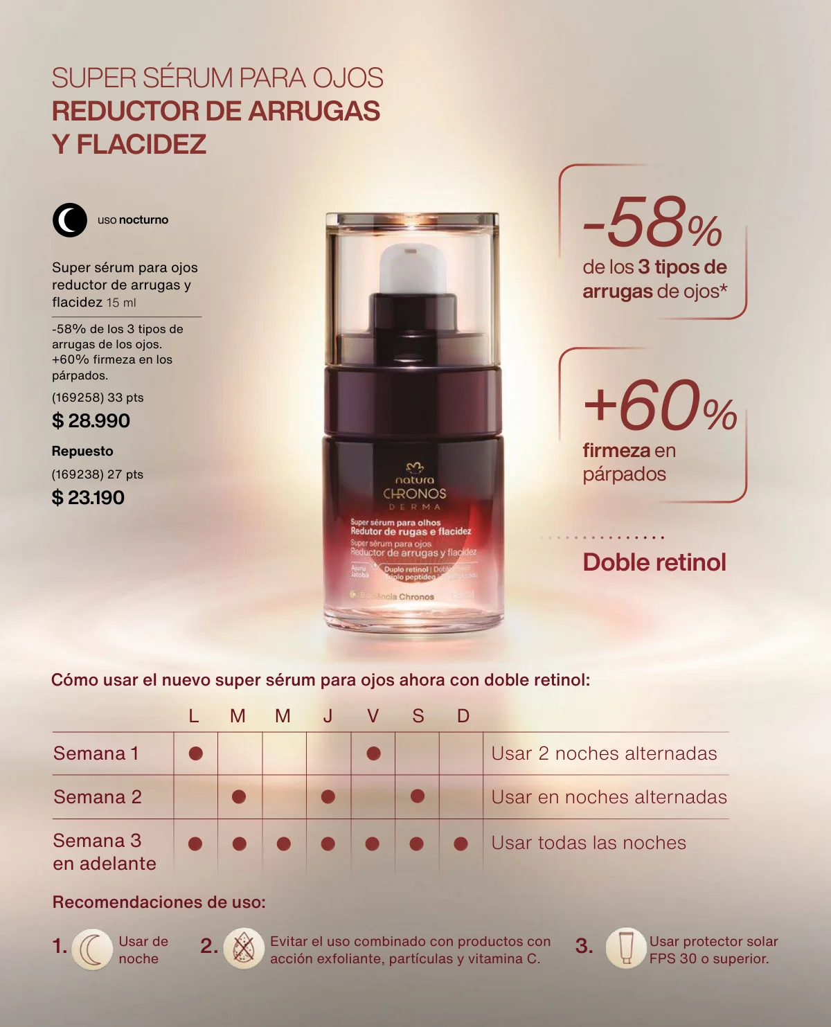 Finalizamos este recuento destacando a Chronos como tu línea para el cuidado y limpieza facial. Este mes consigues muchos descuentos en superconcentrados, el acqua biohidratante y su variedad de cremas y sérums (pág. 96).