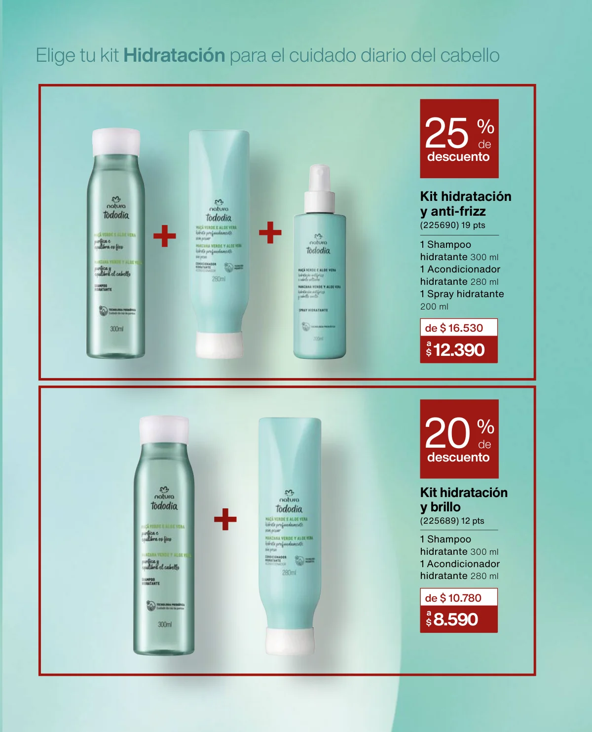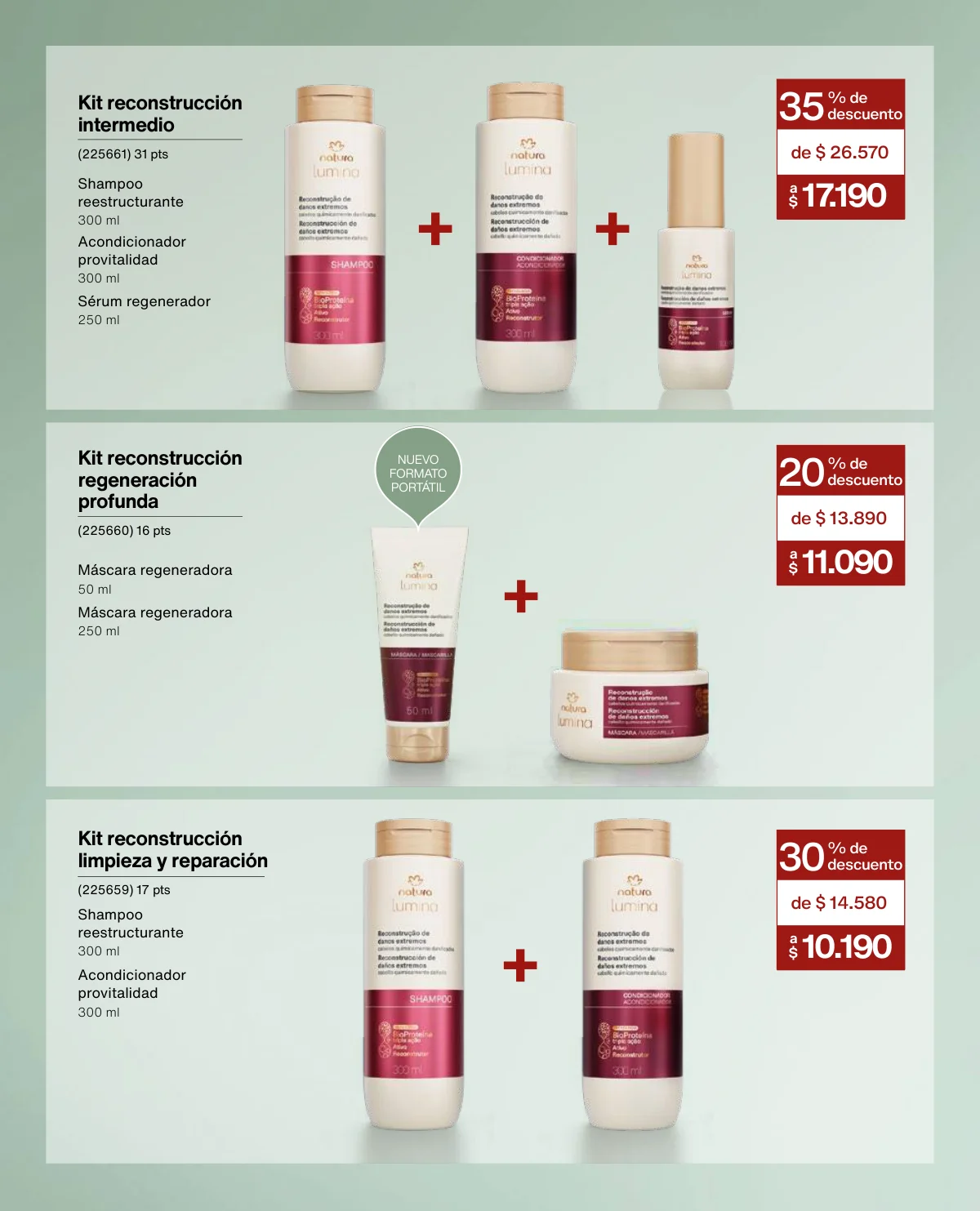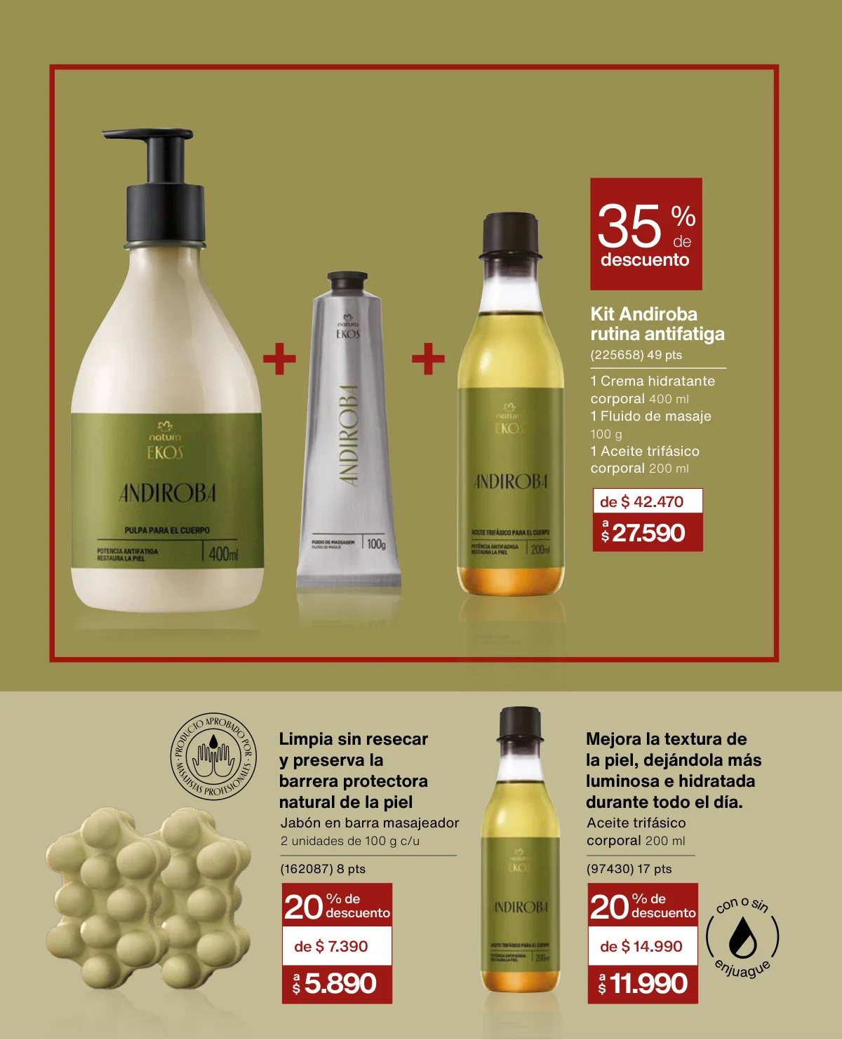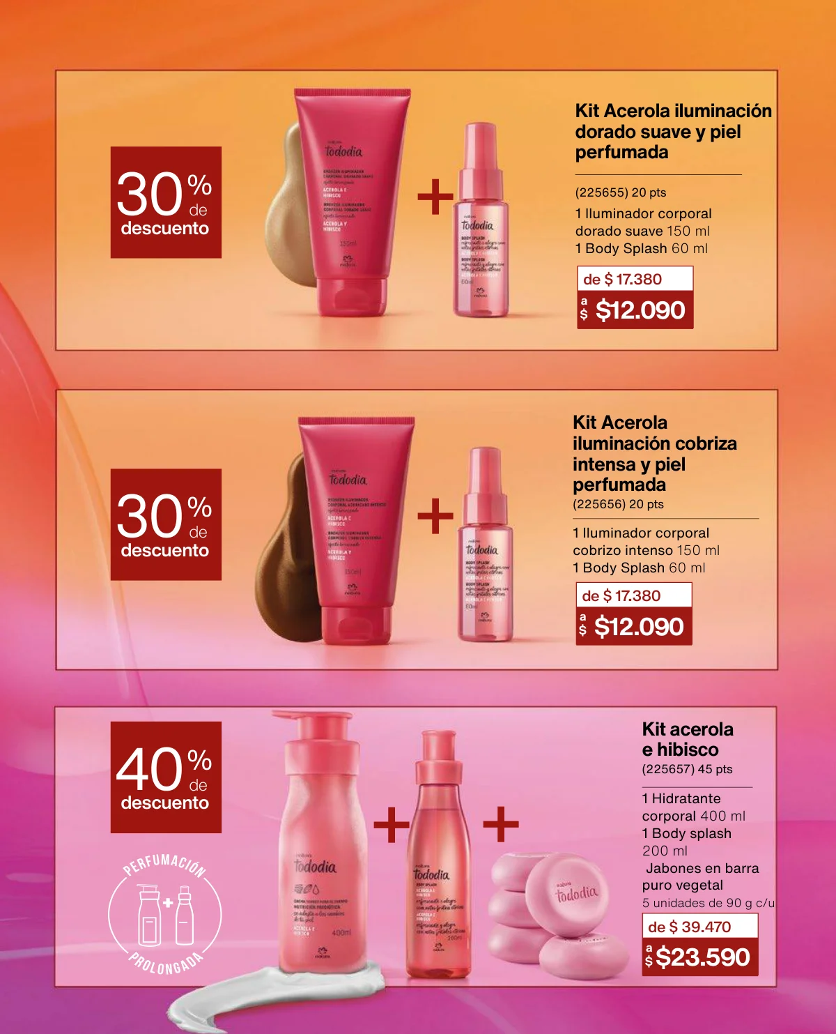 - El Kit Buriti (óleo trifásico, el hidratante y el frescor) a un 35% de descuento en la página 125.