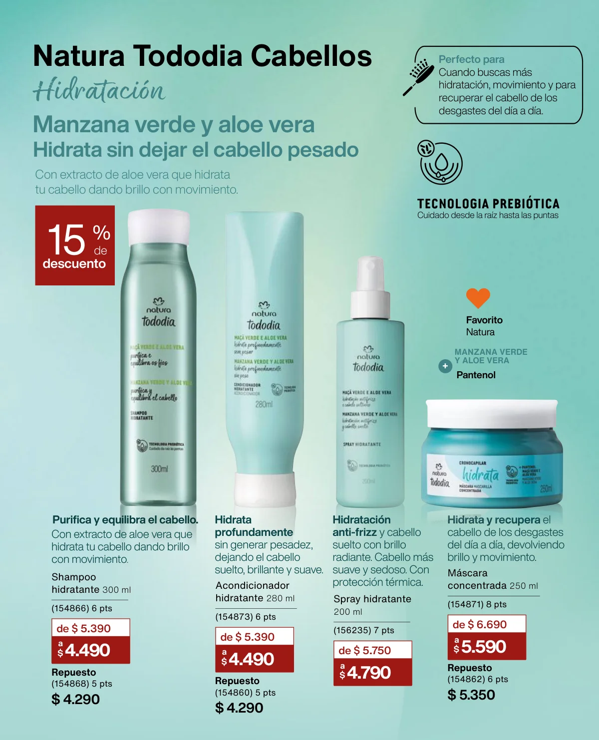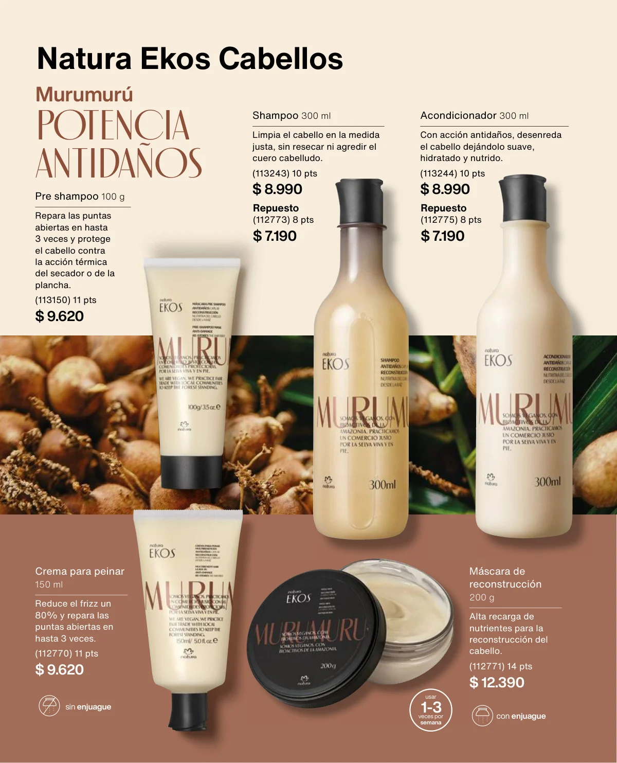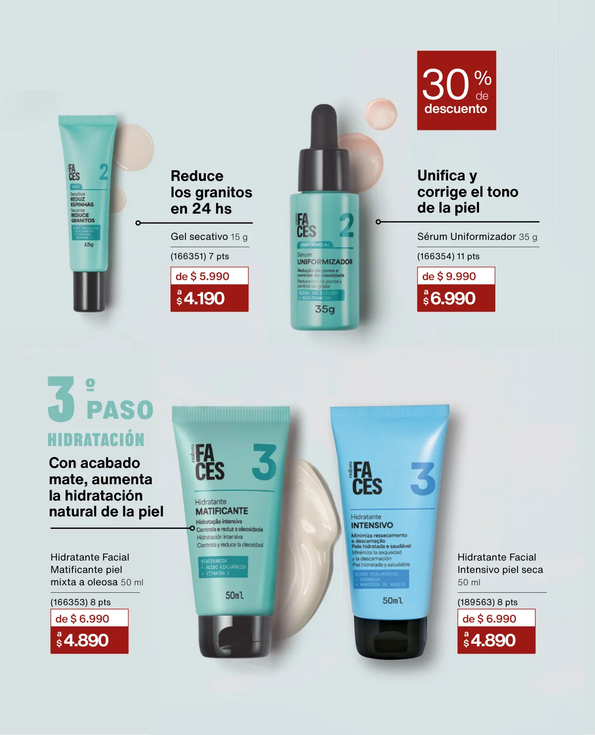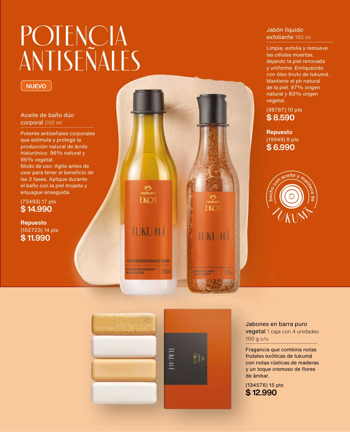 - El Kit Buriti (óleo trifásico, el hidratante y el frescor) a un 35% de descuento en la página 125.