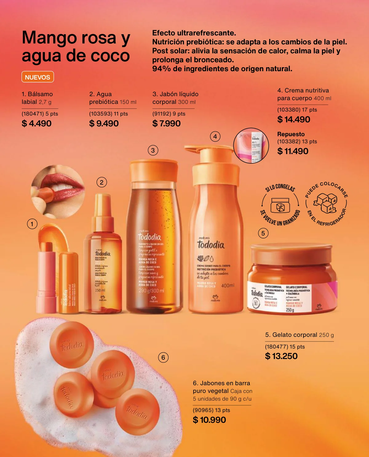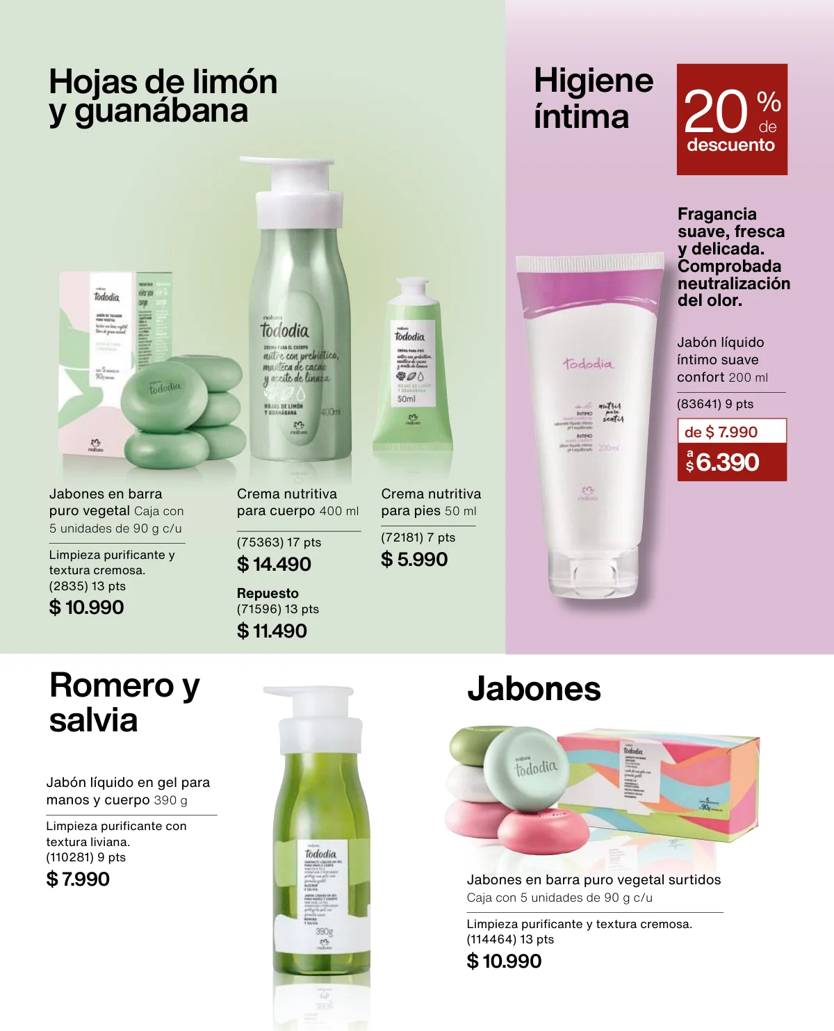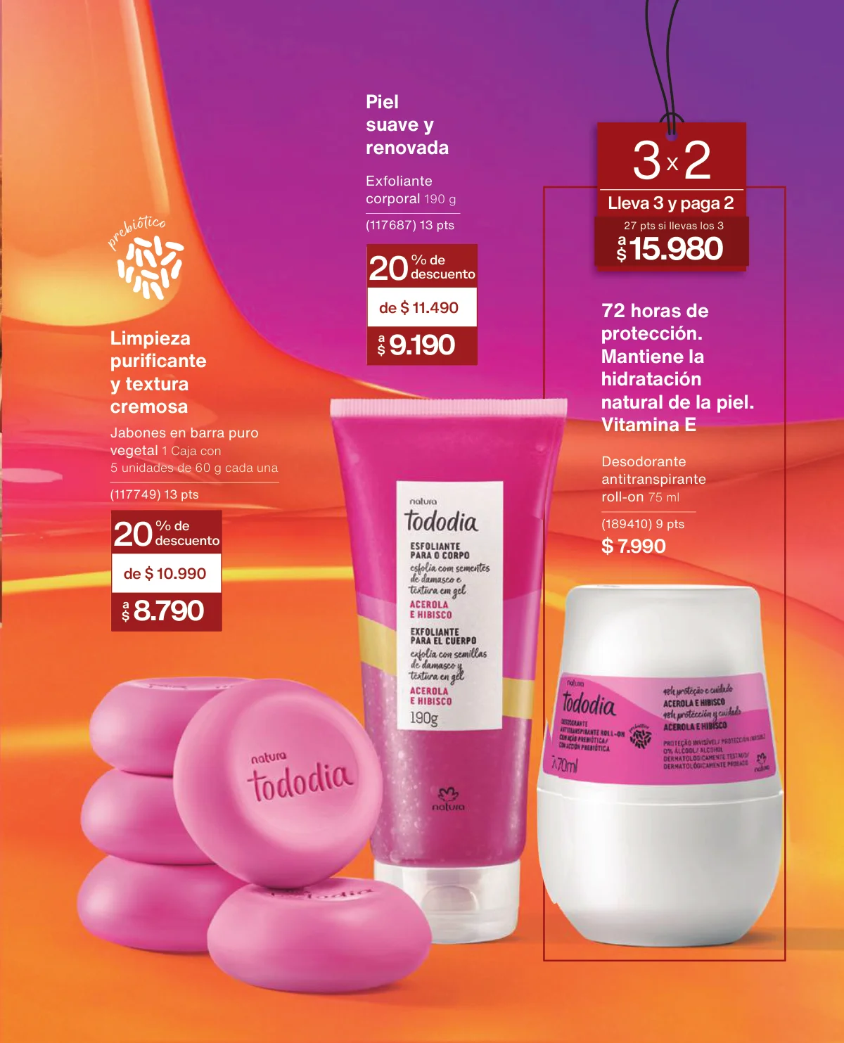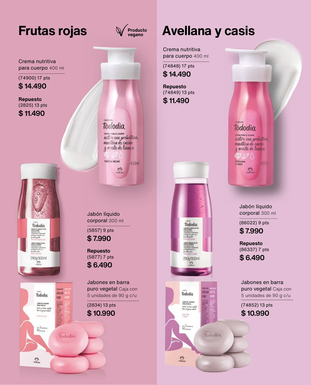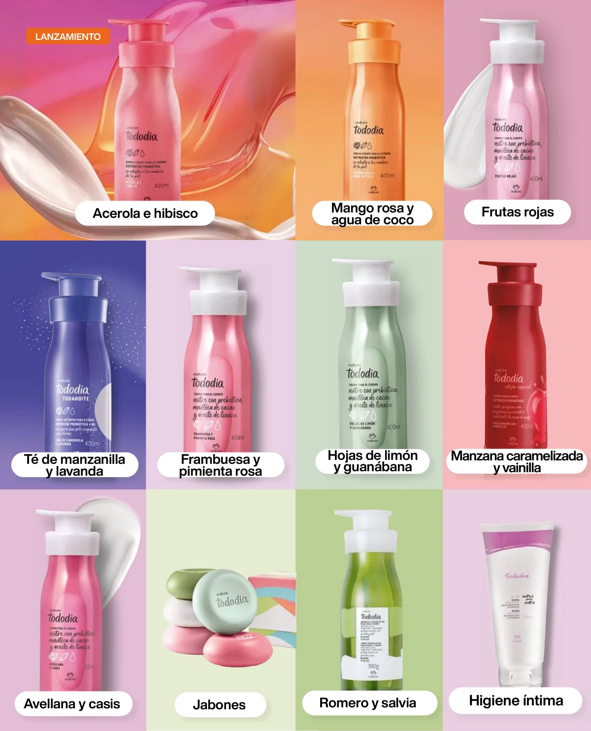 - Y si se trata de Tododia, esta campaña tiene varias propuestas interesantes: el body splash (30% off), la crema nutritiva y el jabón líquido (20 off) o el set de Regalo Ritual Corporal de Avellana y Casis trae un trio fenomenal: crema nutritiva, jabón líquido y aceite balsámico.