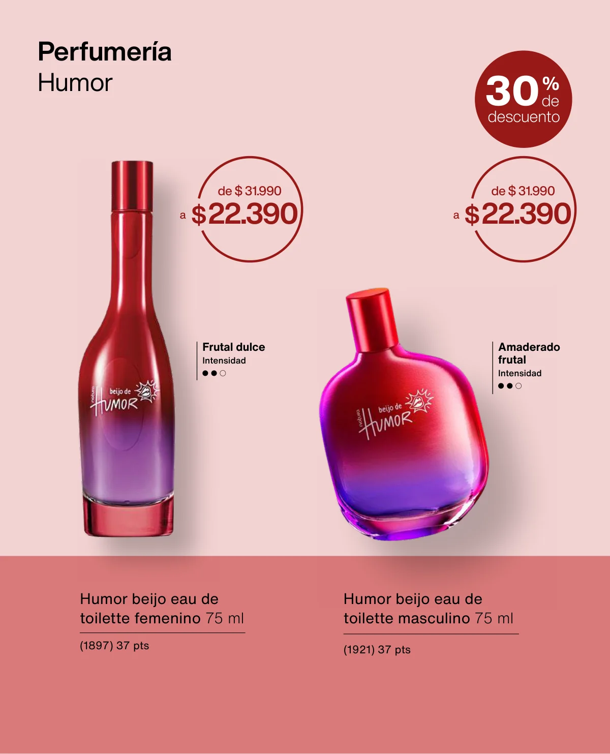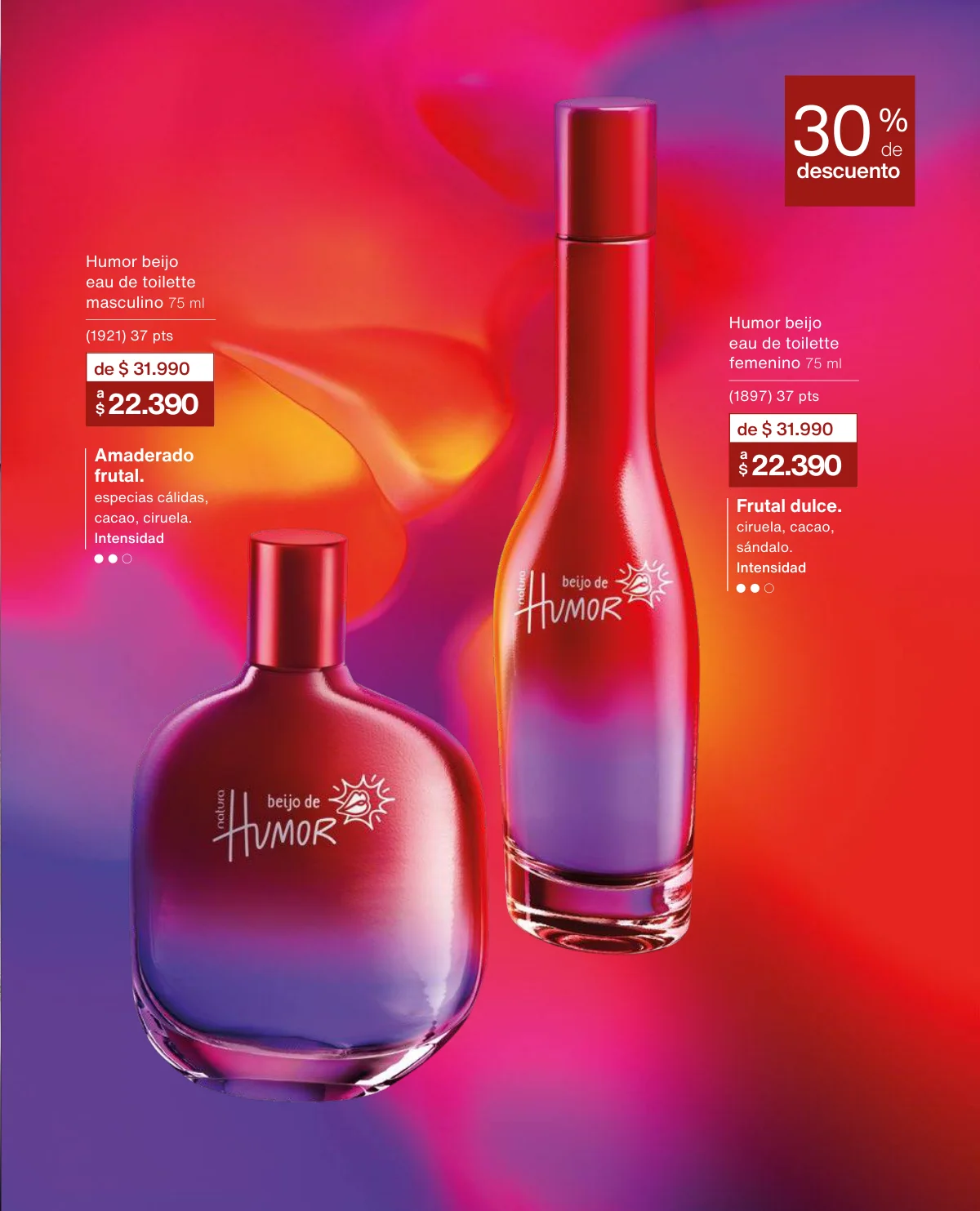 - En la página 16, Humor te espera con su eau de toilette masculino y su shampoo para cabello y barba a 40% de descuento.